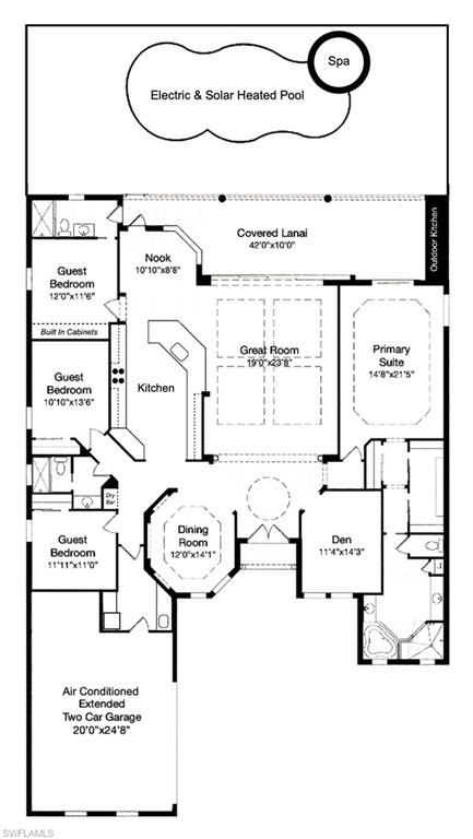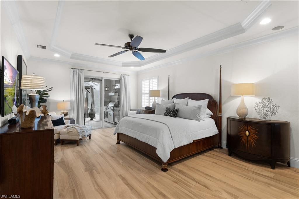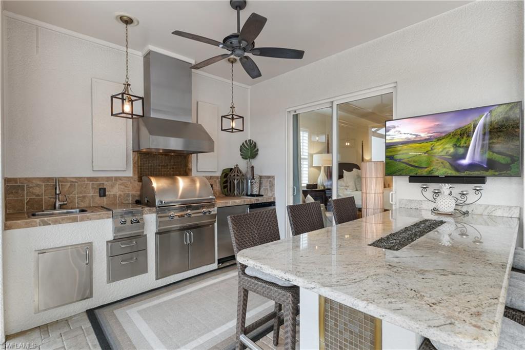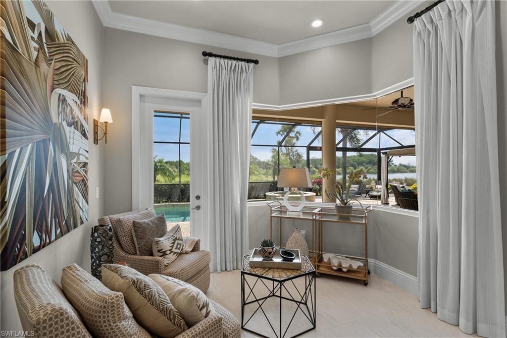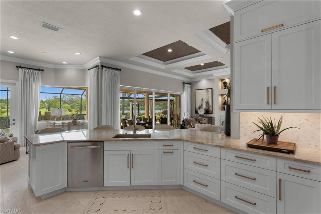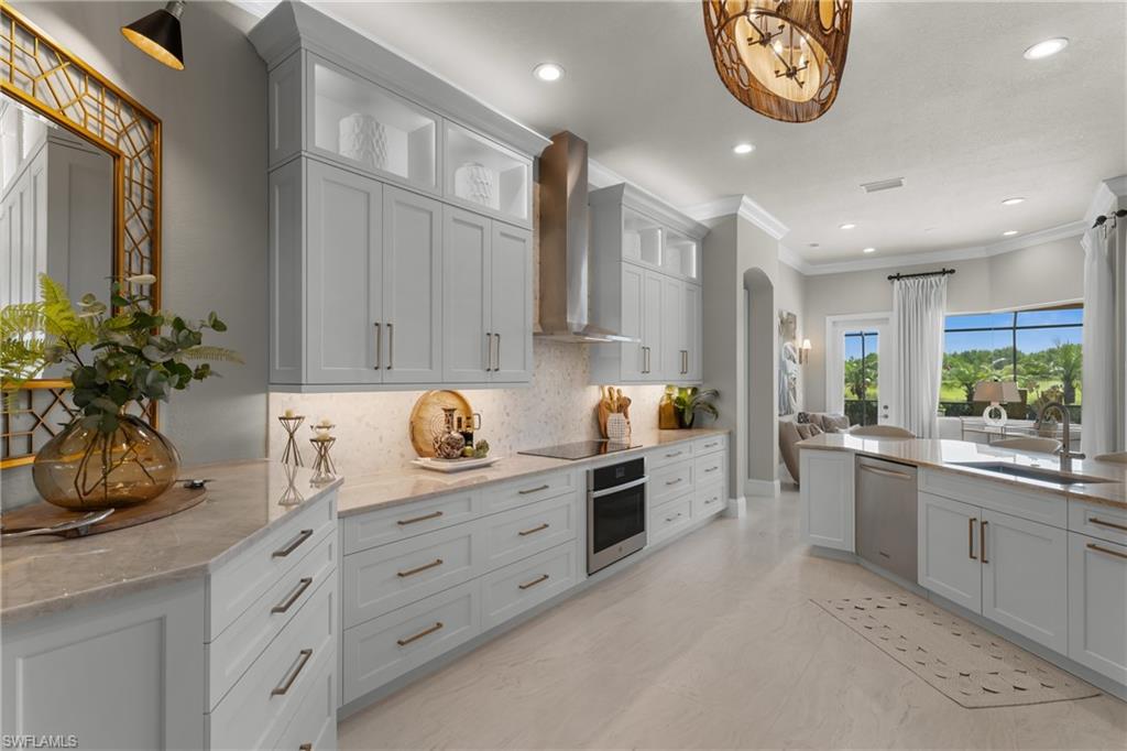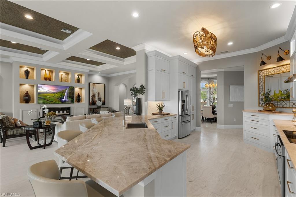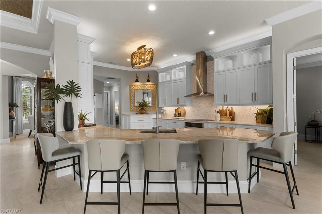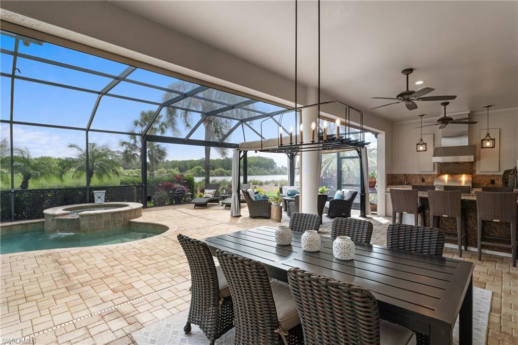 Live the Ultimate Vacation Lifestyle in The Quarry! This totally remodeled 4 Bedroom plus Den, three full bath home is perfectly situated overlooking the 14th green with picturesque lake and preserve views with no roof tops in sight! Lovingly cared for by its original owners, this home underwent an extensive $500k renovation and was totally updated from top to bottom. Custom features and professional design gives this home a model like feel and is a true one of a kind. From the moment you walk in the brand new glass front doors, you are greeted with a wide open Great Room style floorplan with a 16’ pocketing sliding glass door to the lanai and spacious pool area. The custom kitchen is the heat of the home with top of the line custom frameless cabinetry with upper display cabinets, Taj Mahal quartzite countertops, high end tile backsplash, upgraded appliances including vented range hood, and more! The luxurious Primary Suite features a sliding glass door to the lanai, spacious closets with cabinetry, and bath boasting custom cabinets, Taj Mahal quartzite countertops, walk in shower, soaking tub, and custom wall paper detail. Enjoy days around the electric and solar heater pool/spa and al fresco dining on the lanai complete with outdoor kitchen including a kegerator and built-in high top table with fire centerpiece. Other fine appointments of this home include: oversized 24”x48” tile floors throughout the common areas, den, and rear guest bedroom; wood plank tile floors in the primary suite and guest bedrooms; custom dry bar with beverage/wine cooler; plantation shutters on all window; custom draperies & window treatments; spacious Laundry Room with new cabinetry, Taj Mahal quartzite countertops, stacked washer/dryer, and an abundance of storage; Great Room feature wall complete with LED fireplace and display niches; special order lights & fans; crown molding throughout; HURRICANE IMPACT WINDOWS & DOORS; motorized roll down hurricane screens on the lanai; two zone AC; extended two car air conditioned garage with finished floors and ceiling storage racks; NEW FLAT TILE ROOF (2017); freshly painted interior & exterior; whole house water treatment system; and more! The Quarry is an exceptional lakefront community offering unparalleled amenities and a lifestyle like no other. Enjoy boating, golf, tennis, pickleball, bocce ball, a Tiki Bar, poolside food and drink service, a fully equipped gym, and a variety of social activities. The recently renovated and expanded “Lake Lodge & Beach Club” provides the perfect setting for relaxation, while over 500 acres of navigable lakes (with boat slips available for lease) offer endless opportunities for water enthusiasts. The private 18-hole golf club features optional golf and social memberships, providing an elite experience for golf lovers (full golf memberships available/no waitlist). Schedule your private showing today!
