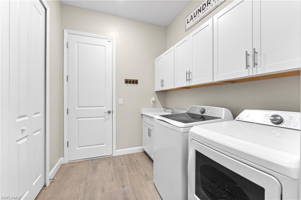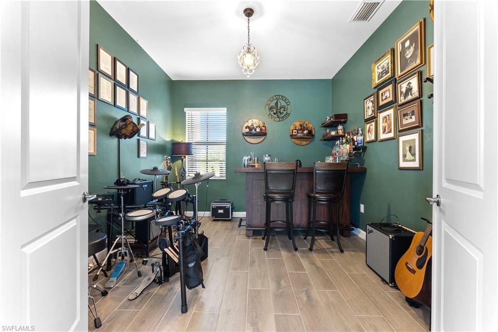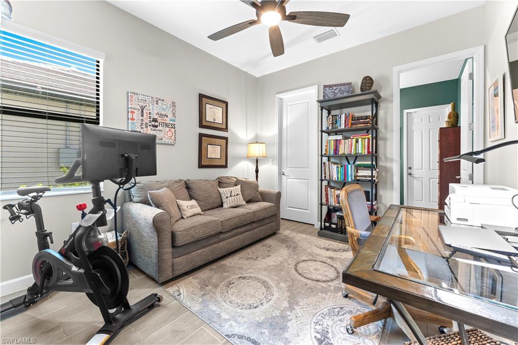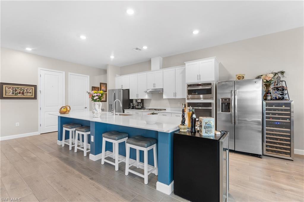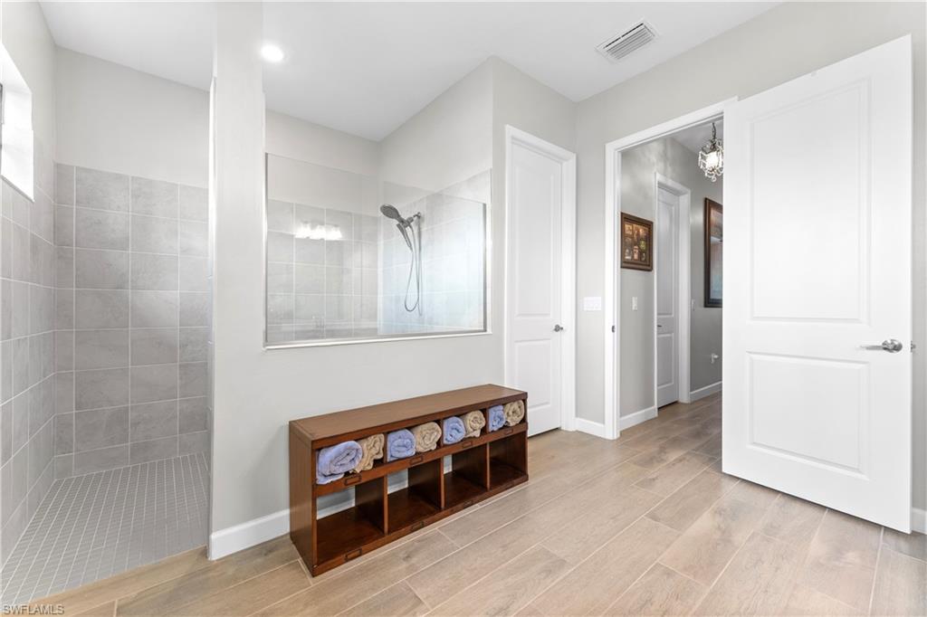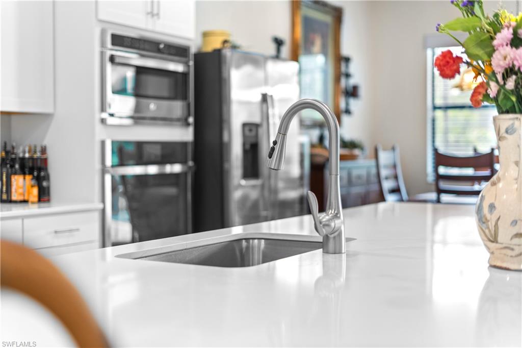 MAJOR PRICE IMPROVEMENT! RARELY AVAILABLE SINGLE STORY ESTATE HOME (76' WIDE HOMESITE) IN VERDANA VILLAGE! COME SEE THIS GORGEOUS "SUNSET" FLOORPLAN WITH CUSTOM POOL/SPA AND PRIVATE PRESERVE/WOODED VIEWS (No homes behind you)! This beautiful property was built in 2023 by Lennar and offers 3 Bedrooms + Den, 3 Full Baths (one bath is en-Suite and also serves as a Pool Bath), 3 Car Garage, 2,650sf. Have peace of mind knowing that this residence is “STORM READY” with IMPACT RESISTANT WINDOWS AND DOORS and a WHOLE HOME NATURAL GAS GENERATOR. Upon arriving at the home, take notice of the large FRONT SCREENED ENTRY accented by the glass double doors allowing tons of natural light to flow into the home. Inside, this property showcases WOOD LOOK PLANK TILE THROUGHOUT (NO CARPET ANYWHERE), painted ACCENT WALLS, 8' interior doors, and TRAY CEILINGS. DESIGNER CEILING FANS and UPGRADED LIGHTING elevate the interior of this home. The living and dining spaces flow seamlessly in this OPEN CONCEPT layout, creating a warm and inviting space for both entertaining and everyday life. The Spacious Greatroom is appointed with (4) 4' PANEL SLIDING GLASS DOORS which open onto the 34' wide, OVERSIZED COVERED LANAI. Sip your morning coffee and watch the sun rise over the pines/palms. Enjoy splashing around in your CUSTOM GAS HEATED POOL AND SPA or relax on a ledge lounger on the SUNSHELF while overlooking the PRIVATE, NATURAL PRESERVE (NO HOMES BEHIND YOU). The pool cage pillar lighting is perfect to enhance the evening ambiance. Inside, you’ll find a CHEF’S KITCHEN where beauty meets function. Anchoring the space is a generous kitchen island, topped with QUARTZ countertops, perfect for prepping gourmet meals, hosting wine-and-cheese nights, or gathering around for casual breakfasts. The Kitchen boasts white cabinetry and is equipped with STAINLESS STEEL appliances, GAS COOKTOP and BUILT IN WALL OVENS. The Primary Bedroom is enhanced by a TRAY CEILING, Private Glass Sliding Door to Lanai and DUAL CLOSETS while the Primary Bath showcases a SPACIOUS WALK-IN SHOWER. Other features include: Electric Rolldown Shades in the living area and Primary Bedroom, Laundry cabinets and sink, Garage MINI-SPLIT AC, insulated garage doors and storage racks, and TANKLESS WATER HEATER. This property is high and dry in Flood Zone X—NO FLOOD INSURANCE REQUIRED! Verdana Village residents enjoy an unbeatable amenity package including indoor/outdoor pickleball & tennis, indoor basketball, bocce ball, clubhouse, green spaces, resort-style pool & spa, fitness, movement studio, playground w/sun shade, a full-service restaurant, craft beer lounge, cafe and indoor/outdoor patio bar. In front of Verdana Village is the new Publix Plaza with Dunkin’ Donuts, Nail salon, Hair Salon, UPS Store, Legno Italian Restaurant and more. Across the street is a new fire station with full EMS services. The highly rated Jack Nicklaus designed OLD CORKSCREW GOLF CLUB is open to the public and located just 1.5 miles away