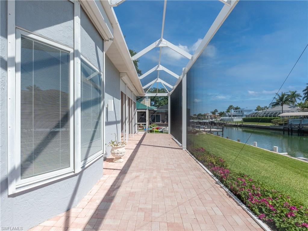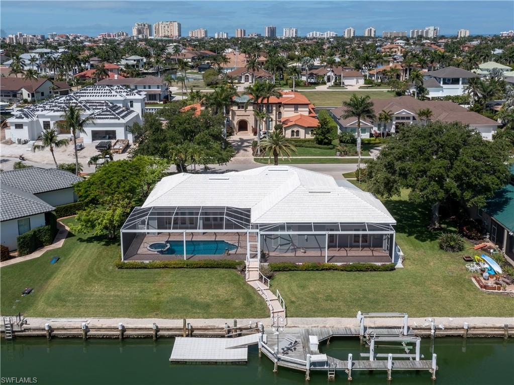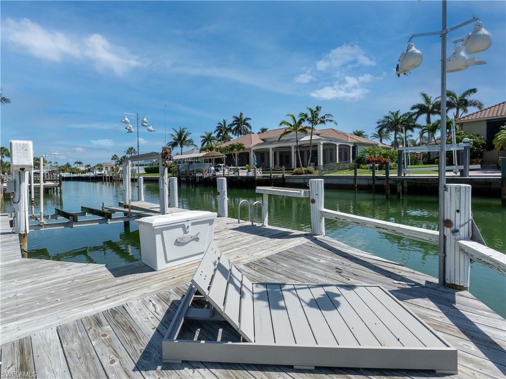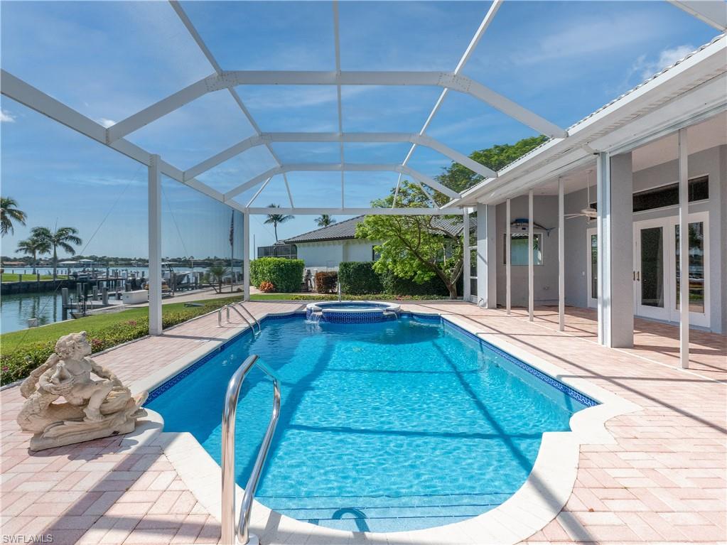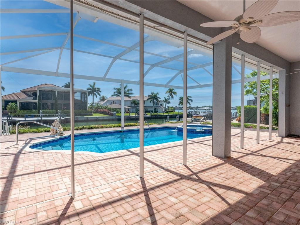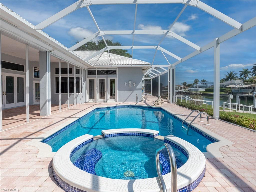 OVERLOOKING MARCO ISLAND'S BEAUTIFUL ROBERTS BAY, 125 FEET OF SEAWALL OVERSIZED LOT. This Beautiful custom freshly painted waterfront home offering 3 bedrooms, 3.5 baths, and a spacious open layout with soaring vaulted ceilings with 1790 square foot pool and lanai. Enjoy water direct access with a wide canal view and partial bay vistas mangrove islands fish breaking the surface, plus your own private dock and boat lift, perfect for boating enthusiasts. The expansive kitchen is ideal for entertaining, complemented by a grand main entry and generous living spaces. Relax in the screened-in pool area overlooking the water, and take advantage of the 2-car garage for ample storage. A true Marco Island gem with comfort, space, and location!