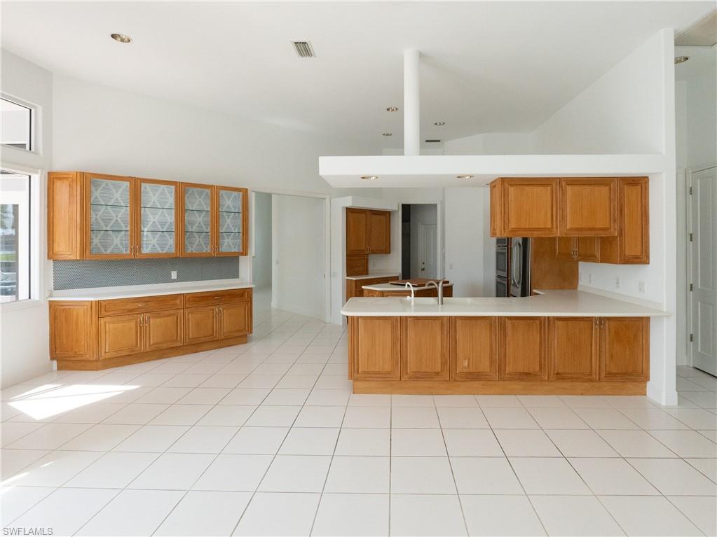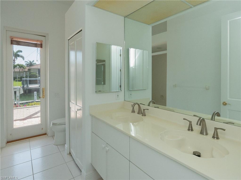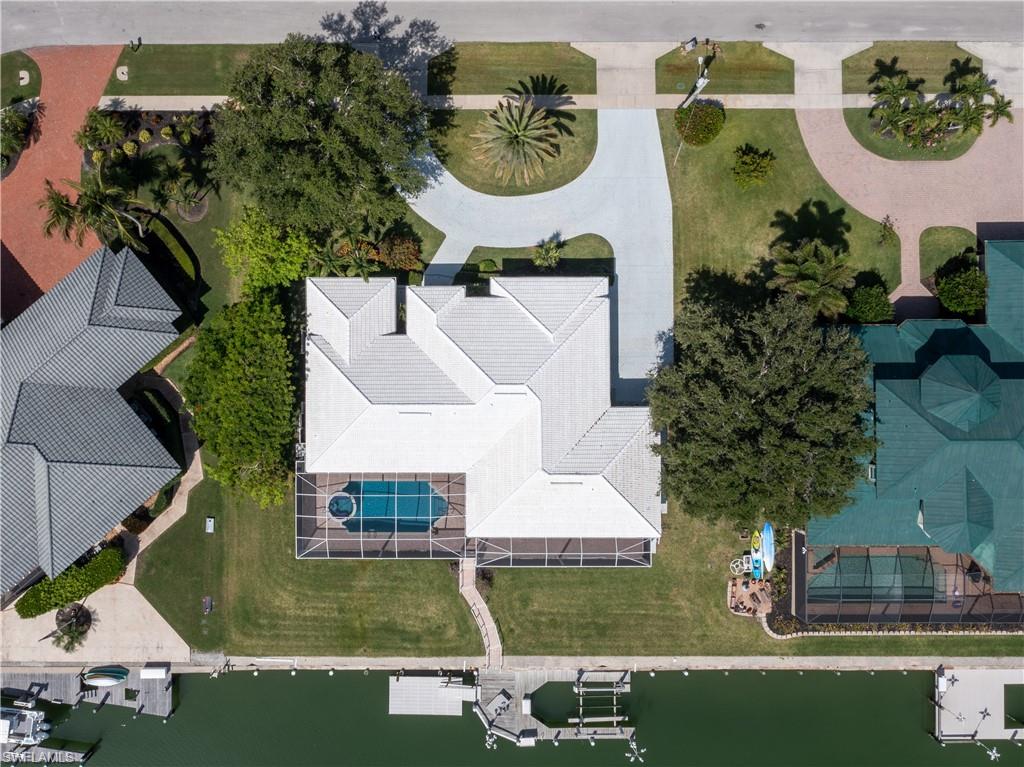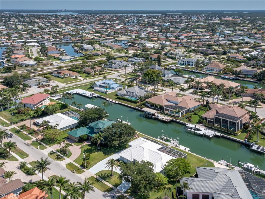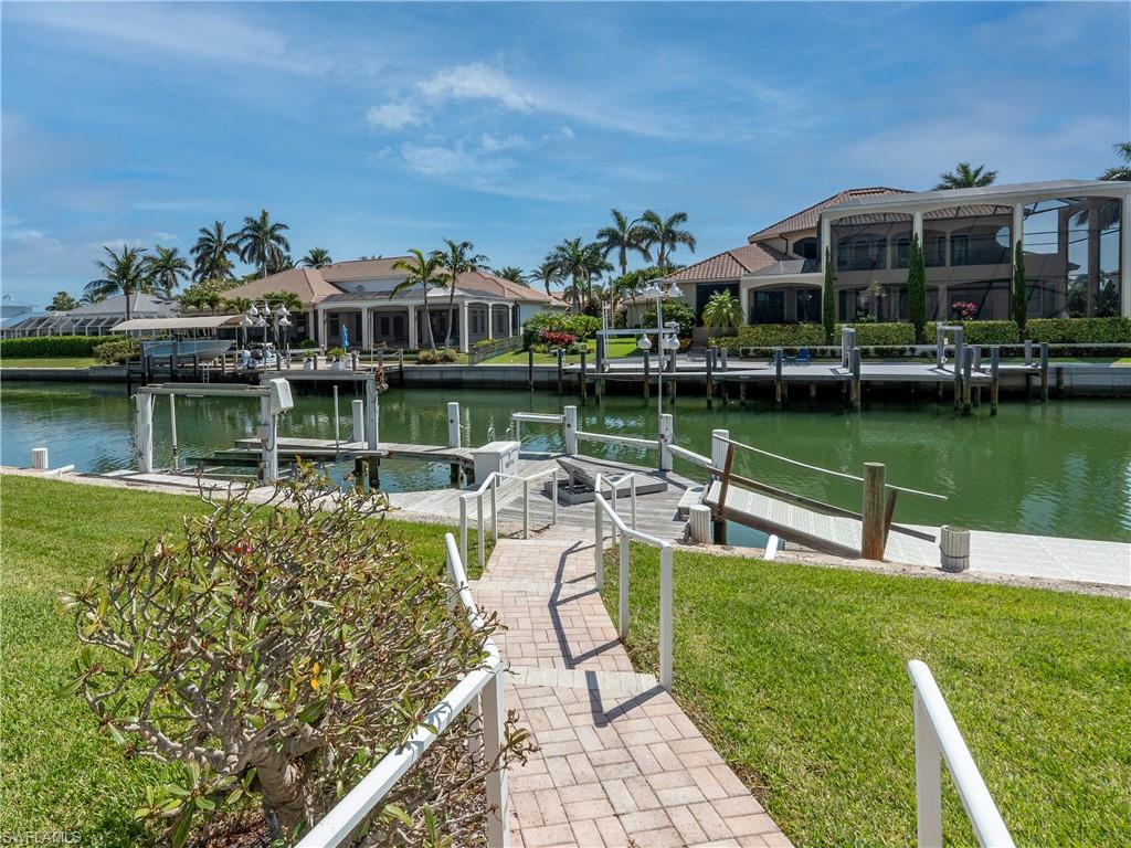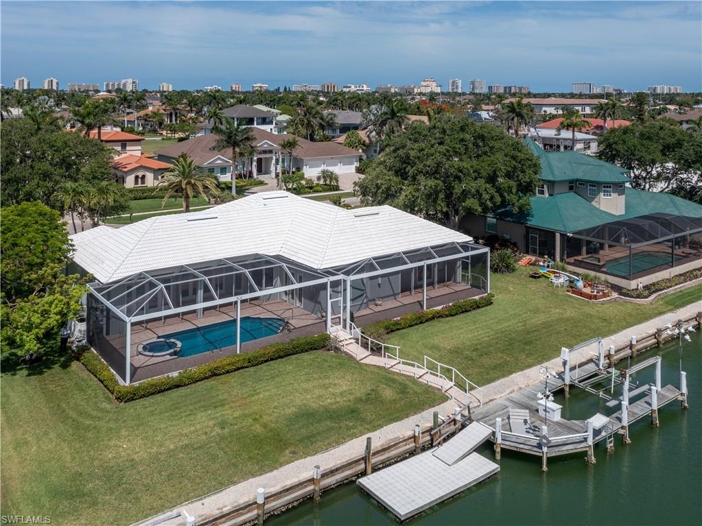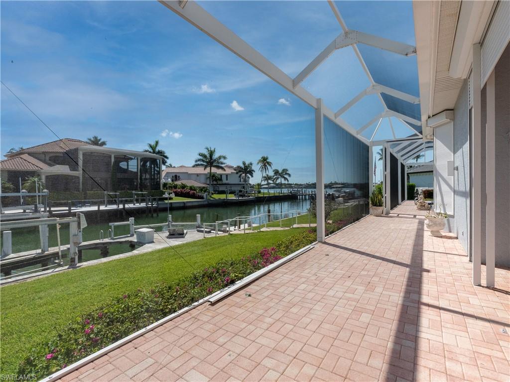 OVERLOOKING MARCO ISLAND'S BEAUTIFUL ROBERTS BAY, 125 FEET OF SEAWALL OVERSIZED LOT. This Beautiful custom freshly painted waterfront home offering 3 bedrooms, 3.5 baths, and a spacious open layout with soaring vaulted ceilings with 1790 square foot pool and lanai. Enjoy water direct access with a wide canal view and partial bay vistas mangrove islands fish breaking the surface, plus your own private dock and boat lift, perfect for boating enthusiasts. The expansive kitchen is ideal for entertaining, complemented by a grand main entry and generous living spaces. Relax in the screened-in pool area overlooking the water, and take advantage of the 2-car garage for ample storage. A true Marco Island gem with comfort, space, and location!