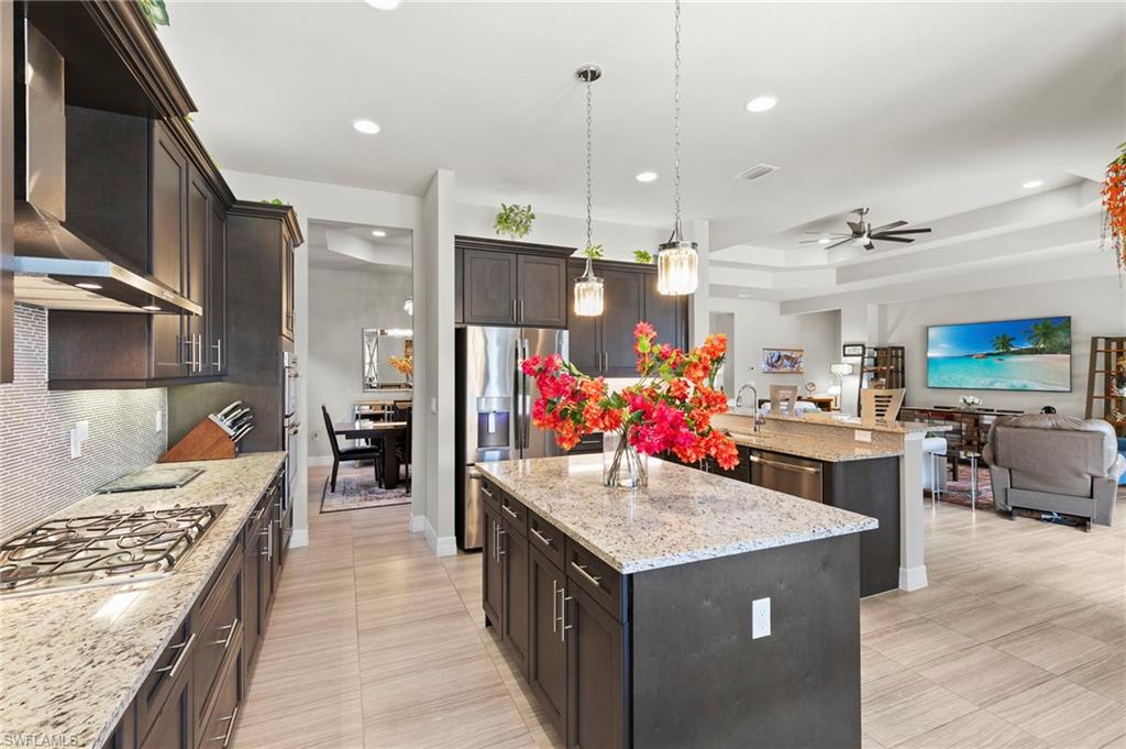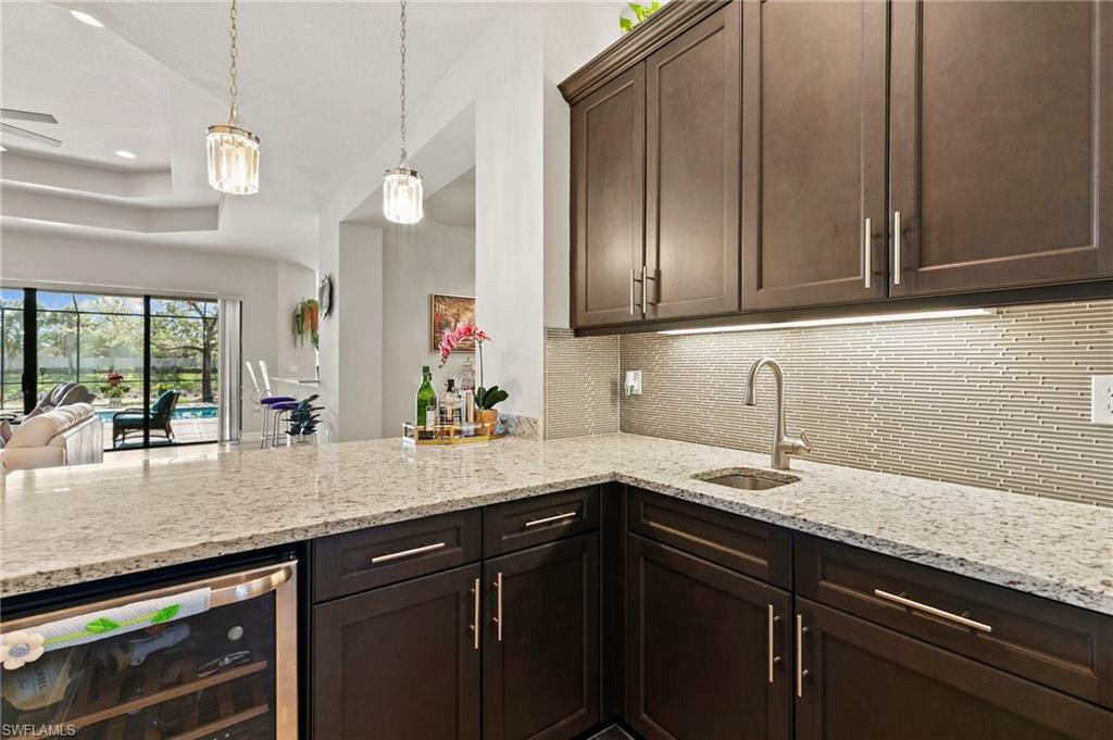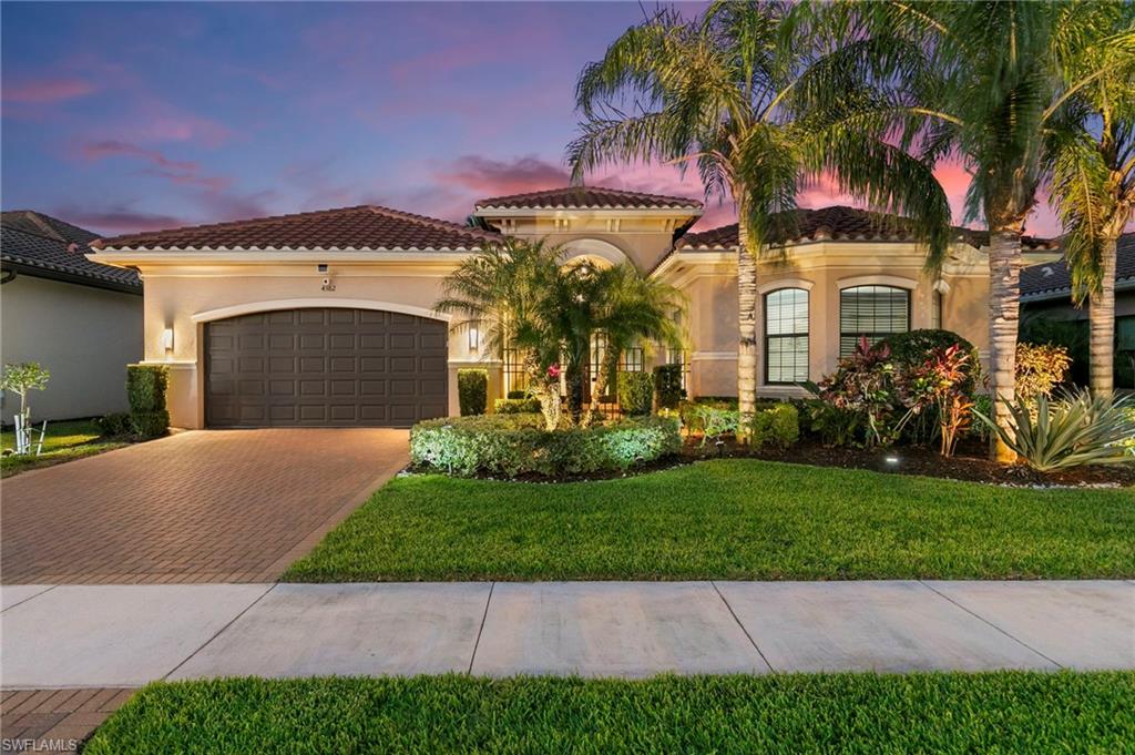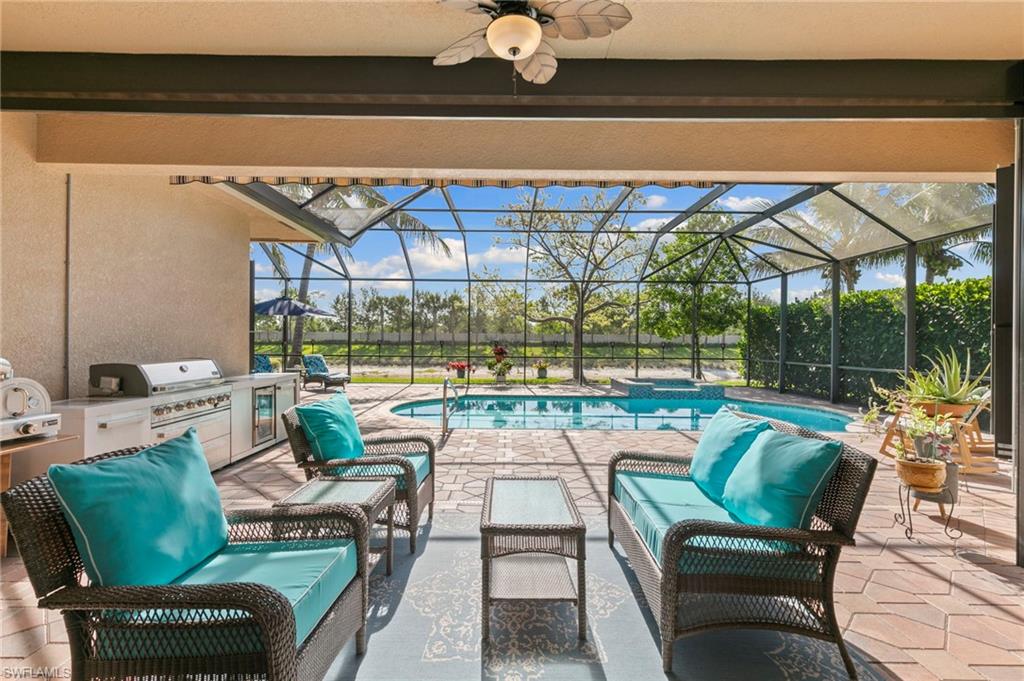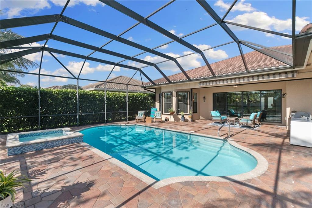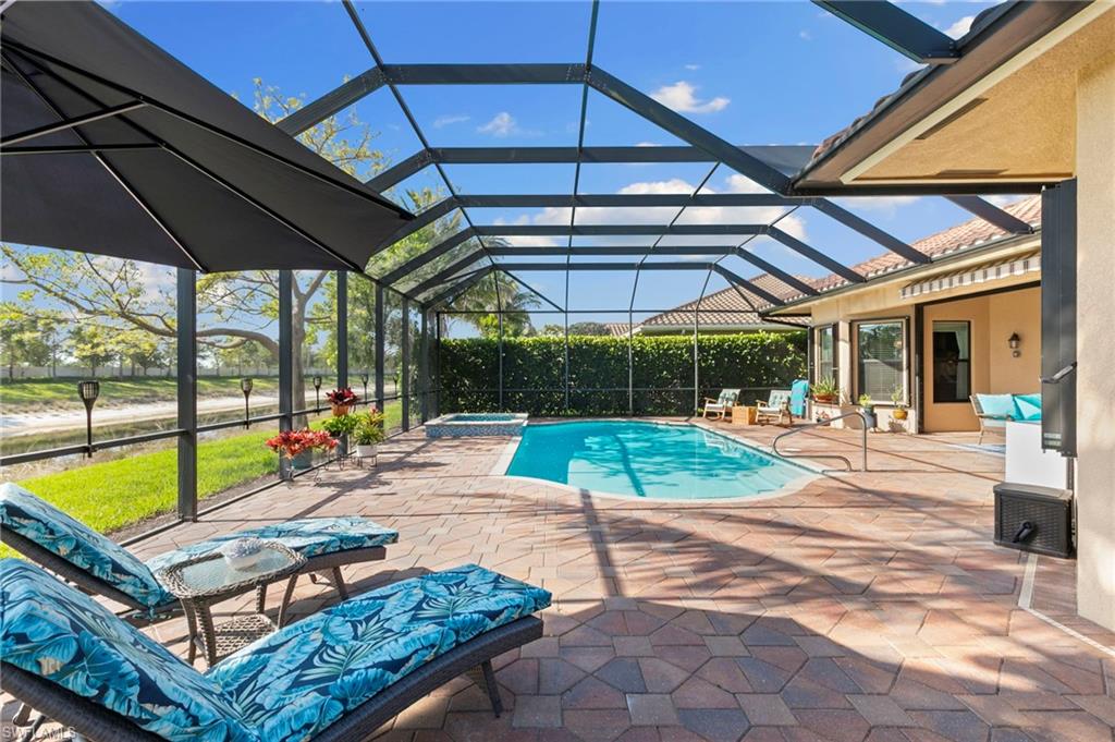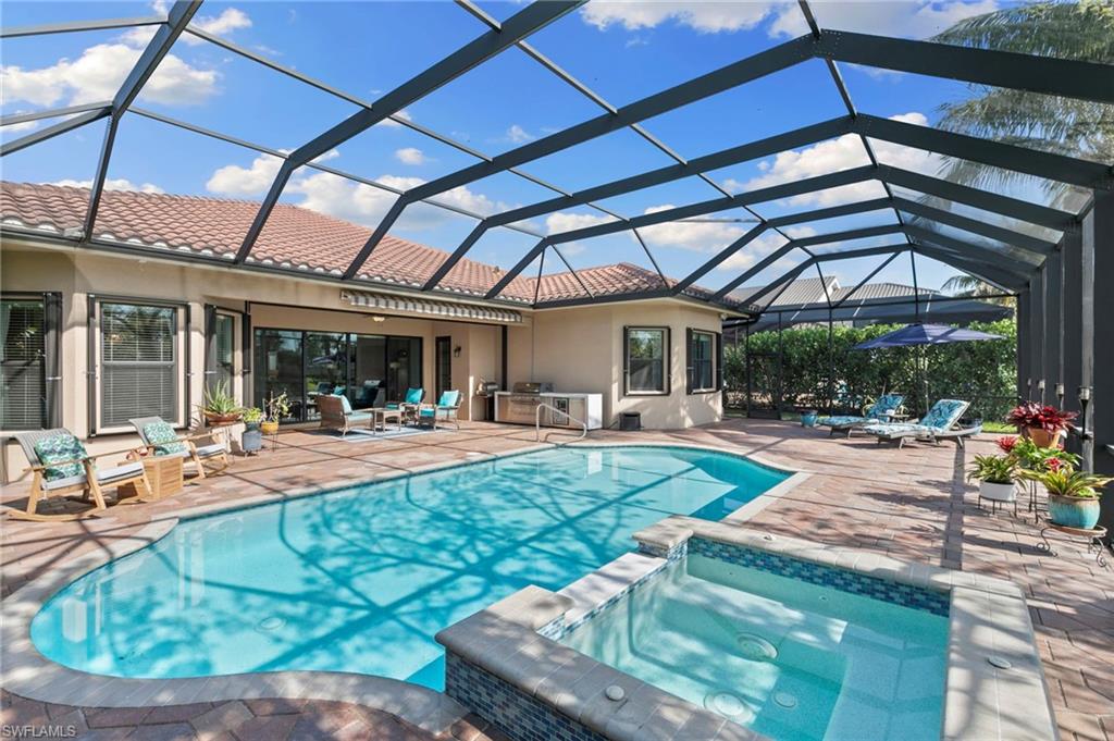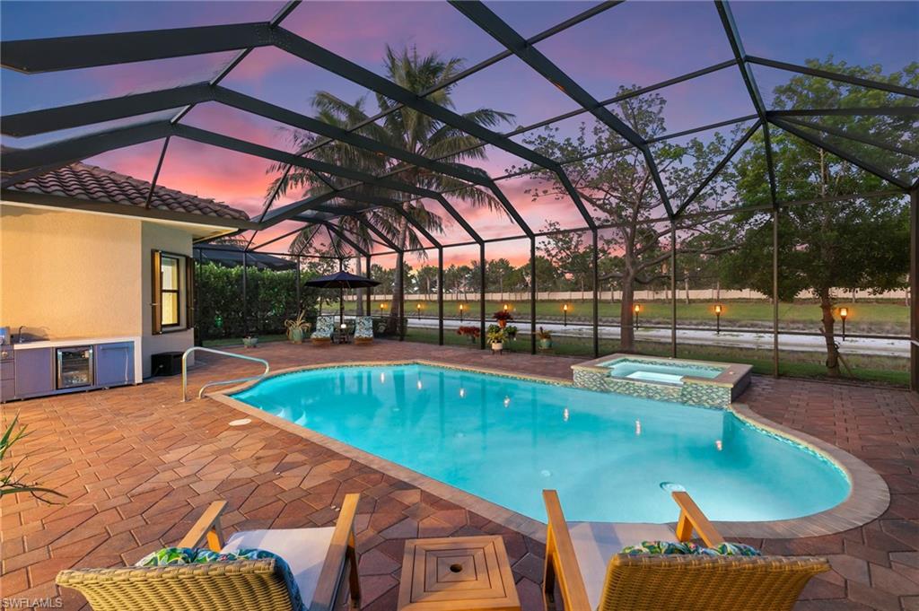 Wake up to breathtaking lakefront sunrises from this elegant 3-bedroom plus den, 3.5-bath home, perfectly positioned with desirable eastern exposure. Nestled within the premier StoneCreek community offering resort style amenities, this residence is designed for both relaxing and entertaining in true Florida fashion. Step inside to soaring tray ceilings and a thoughtfully designed open floor plan that flows effortlessly from the chef-inspired kitchen featuring a gas cooktop, breakfast nook, and entertainer’s wet bar to the expansive living spaces. The private den offers a quiet retreat, ideal for a home office or cozy library. The luxurious primary suite boasts a generous walk-in closet and spa-like bath, while guests will enjoy their own private en suite accommodations. Step outside to your personal paradise: an expansive screened lanai surrounds the saltwater pool and spa, complete with an outdoor kitchen for al fresco dining, all overlooking the tranquil lake. Built for peace of mind, this home includes impact doors and windows, manual shutters, storm protection systems, and a whole home generator—ensuring comfort and security year round. With resort style amenities just moments away including pools, fitness, social clubs, and more, this is more than a home—it’s a lifestyle. Don’t miss your chance to own a slice of Southwest Florida luxury.