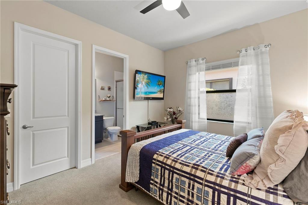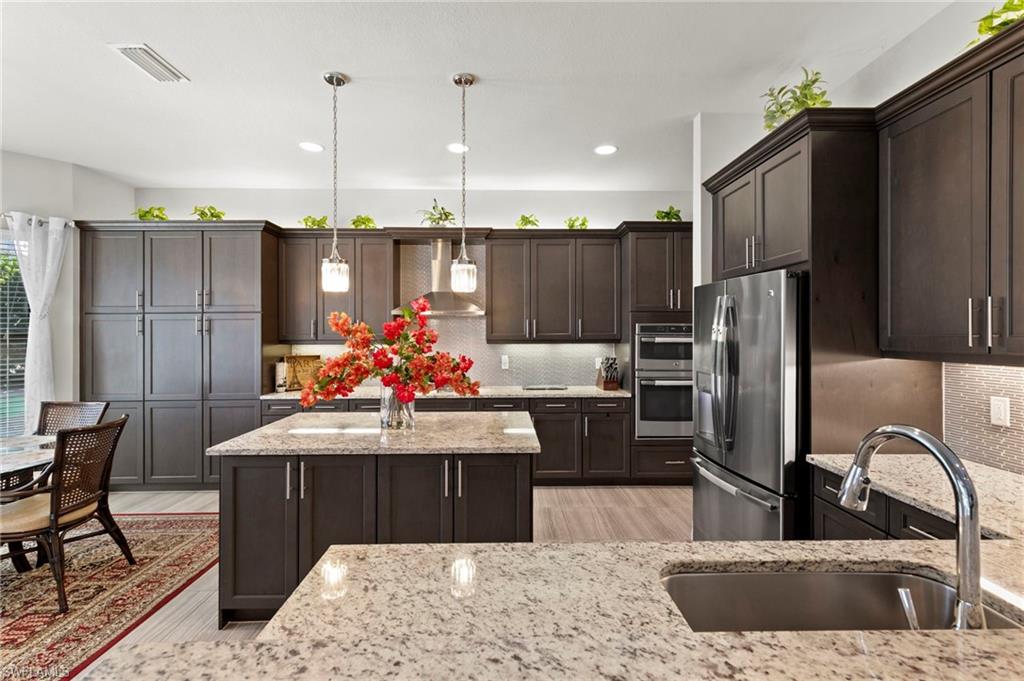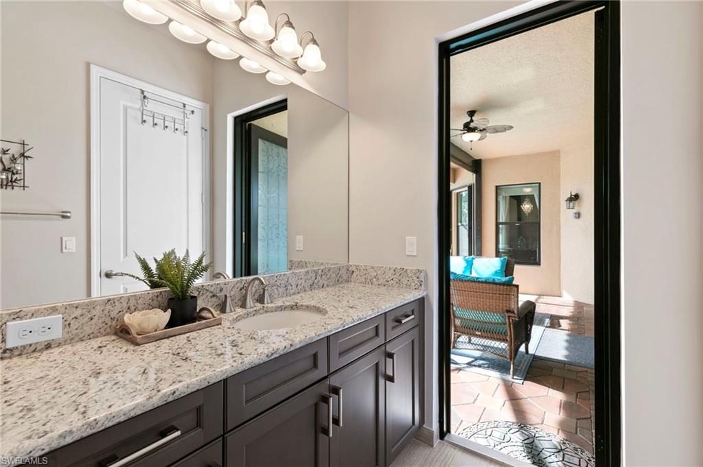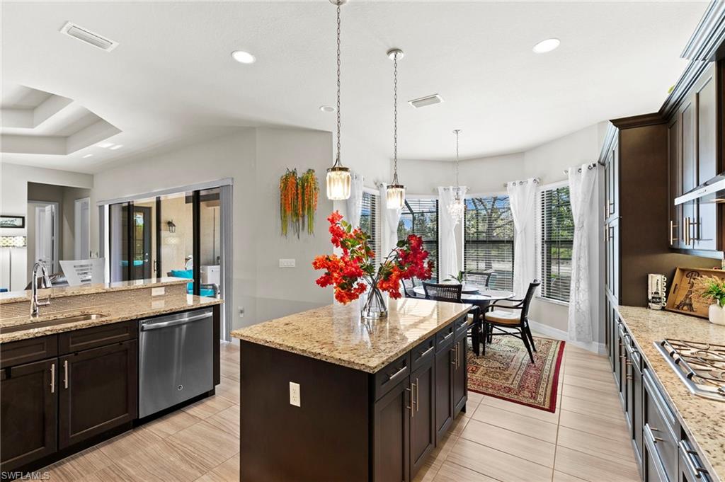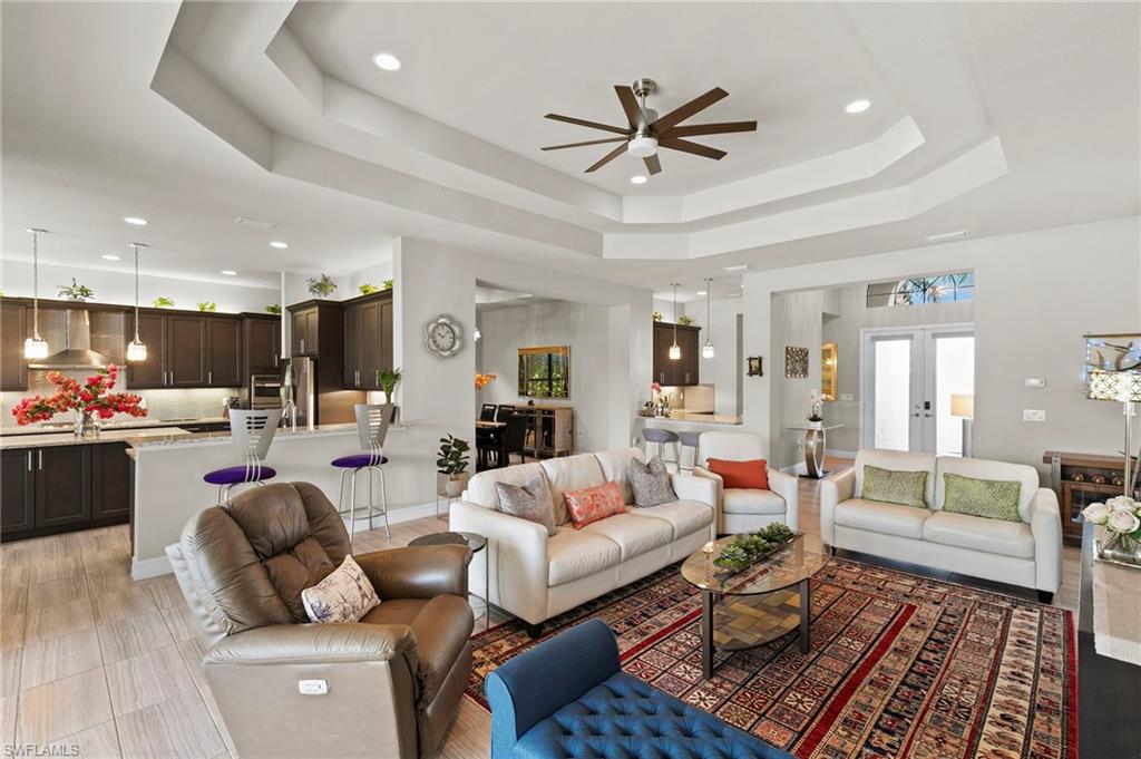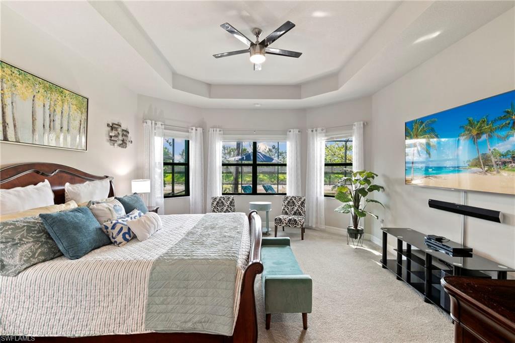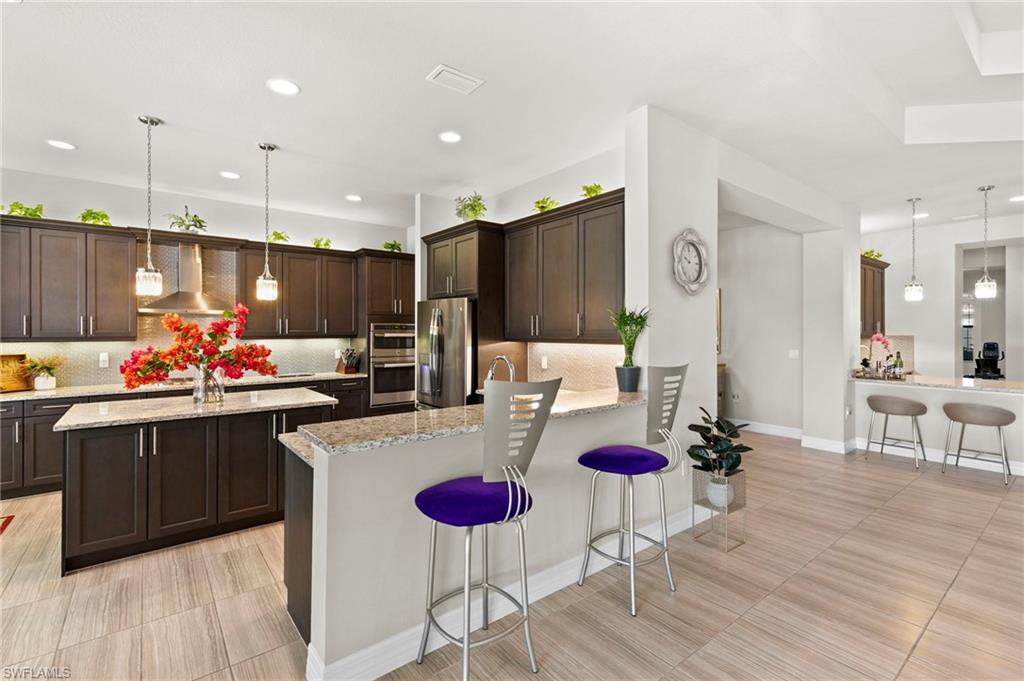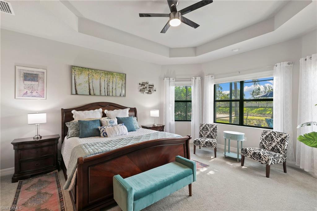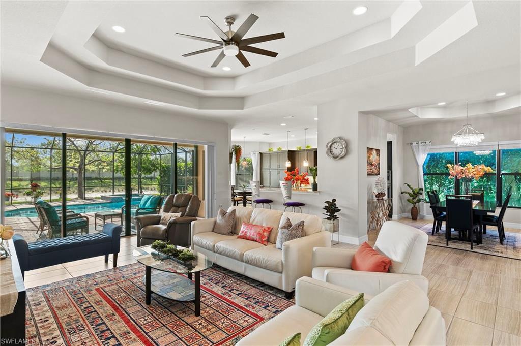 Wake up to breathtaking lakefront sunrises from this elegant 3-bedroom plus den, 3.5-bath home, perfectly positioned with desirable eastern exposure. Nestled within the premier StoneCreek community offering resort style amenities, this residence is designed for both relaxing and entertaining in true Florida fashion. Step inside to soaring tray ceilings and a thoughtfully designed open floor plan that flows effortlessly from the chef-inspired kitchen featuring a gas cooktop, breakfast nook, and entertainer’s wet bar to the expansive living spaces. The private den offers a quiet retreat, ideal for a home office or cozy library. The luxurious primary suite boasts a generous walk-in closet and spa-like bath, while guests will enjoy their own private en suite accommodations. Step outside to your personal paradise: an expansive screened lanai surrounds the saltwater pool and spa, complete with an outdoor kitchen for al fresco dining, all overlooking the tranquil lake. Built for peace of mind, this home includes impact doors and windows, manual shutters, storm protection systems, and a whole home generator—ensuring comfort and security year round. With resort style amenities just moments away including pools, fitness, social clubs, and more, this is more than a home—it’s a lifestyle. Don’t miss your chance to own a slice of Southwest Florida luxury.