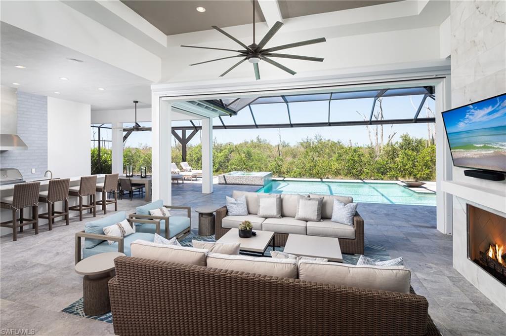 An exquisite blend of sophistication and serenity nestled in the coveted Isles of Collier Preserve awaits. Spanning an impressive 3644 square feet of living space and over 1,043 square feet of covered outdoor living, this home by Stock Development captures breathtaking sunset views over a tranquil preserve. The four-bedroom sanctuary, built in 2023, features a private executive study and expansive open-concept living spaces (Marigold plan). The renowned Boutique Interiors team meticulously curated every detail, showcasing a refined interpretation of elevated coastal elegance. Bespoke finishes and upscale enhancements abound, including: Custom Inspired Closets for streamlined organization. Storm Smart hurricane screens for effortless protection. 26kW whole-house generator with a 10-year warranty for uninterrupted comfort. Garage door insulation and mini-split for energy efficiency and year-round climate control. Kinetico whole-house water purification system with reverse osmosis. Fully integrated Vitex security and Bose audio systems, offering smart-home convenience. Premium LG OLED TVs for a truly immersive entertainment experience. Motorized shades and plantation shutters adorn the windows and doors offering privacy with ease. Elegant wall coverings add texture and visual interest. The professionally landscaped exterior offers a resort-style oasis featuring a screened lanai and a sparkling pool—perfect for entertaining or peaceful relaxation. Set within more than 2,400 acres of unspoiled beauty, The Isles of Collier Preserve is a gated enclave with over half the community devoted to lakes, preserves, and natural surroundings. Residents enjoy world-class amenities including The Isles Club, The Overlook Bar & Grill, tennis, pickleball, and bocce courts, eight miles of scenic walking and biking trails, kayak and paddleboard launches, and the Canine Cove dog park. Just minutes from downtown, white sand beaches, the Naples Botanical Garden, and the Bayshore Arts District, this extraordinary home presents a rare opportunity to experience luxury living immersed in nature, within one of Naples’ most prestigious and picturesque communities.