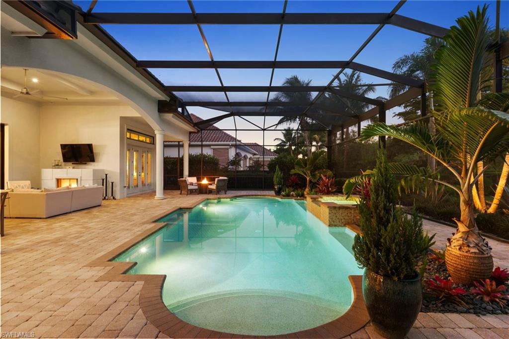 Experience the perfect blend of comfort and style in this newer yet freshly upgraded home thoughtfully inspired by Cardamom Design. Offering the most sought after southwest exposure, the screened lanai features various areas for relaxing, a full outdoor kitchen, built-in fireplace and inviting fire pit plus all-day sun and magnificent evening sunsets. The indoor/outdoor flow delights with a bright, open floor plan and premium finishes end to end— including a gourmet kitchen with upgraded appliances, newer countertops, custom cabinetry and wrap-around island for easy entertaining, a soaring great room with built-in tv wall and wine cooler and clever architectural touches throughout. The primary suite is a private oasis with a spa-like bath and generous walk-in closets while the overall floor plan flawlessly functions to allow privacy for owners and visitors alike. Dine al fresco or step inside to a separate dining room with built-ins or a casual breakfast area. Recently painted inside and out with many upgrades such as an air-conditioned 3-car garage with new built-in storage, Sonos sound system, custom closets and whole house generator, this home captivates at every turn.