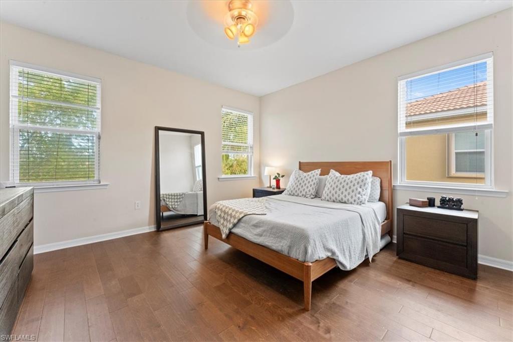 Immaculate 2-story Westwood model townhome in the highly sought-after gated community of Cordera in Bonita Springs. Offering over 2,000 sq ft of comfortable living space, this 3-bedroom + den, 2.5-bath home features a 2-car garage and a smart, open layout perfect for everyday living and entertaining. The kitchen is equipped with granite countertops, stainless steel appliances, pantry, and a breakfast area. Tile floors span the main level, while the upstairs boasts brand-new hardwood flooring throughout. The spacious primary suite includes dual walk-in closets and a bathroom with double vanities and a walk-in shower. Step outside to your private screened lanai overlooking beautifully landscaped green space—perfect for relaxing evenings or morning coffee. Cordera offers resort-style amenities including a community pool, fitness center, and clubhouse. This pet-friendly community (with restrictions) provides low-maintenance living with HOA covering landscaping, exterior maintenance, cable, and gated security. Unbeatable location just minutes from Coconut Point Mall, I-75, fine dining, grocery stores, top-rated schools, and some of SWFL’s most beautiful beaches. Whether you’re looking for a full-time residence or a seasonal getaway, this home checks all the boxes!