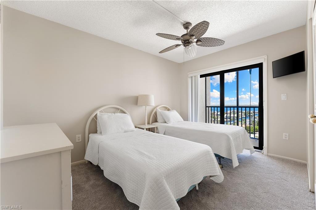 RARE PENTHOUSE OPPORTUNITY at Island Winds on Fort Myers Beach. This top-floor residence stands out with an expansive, open layout and a smart split-bedroom design that maximizes comfort and efficiency with no wasted space. Abundant windows fill the unit with natural light and showcase panoramic views from three private walk-out balconies overlooking the Gulf of Mexico, Estero Bay, and the surrounding island landscape. Located on the peaceful south end of Estero Island, Island Winds is a gated beachfront community offering resort-style amenities including a heated pool and spa, tennis and pickleball courts, fitness center, shuffleboard, covered gas grilling areas, and direct beach access. Enjoy the best of island living with nearby attractions such as Lovers Key State Park, local marinas, waterfront dining, boutique shopping, and the beach trolley to Times Square and the Pier. This is coastal living at its finest. Schedule your private tour today!