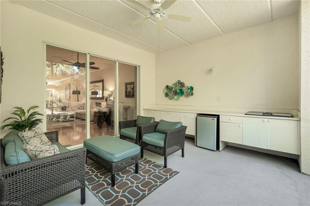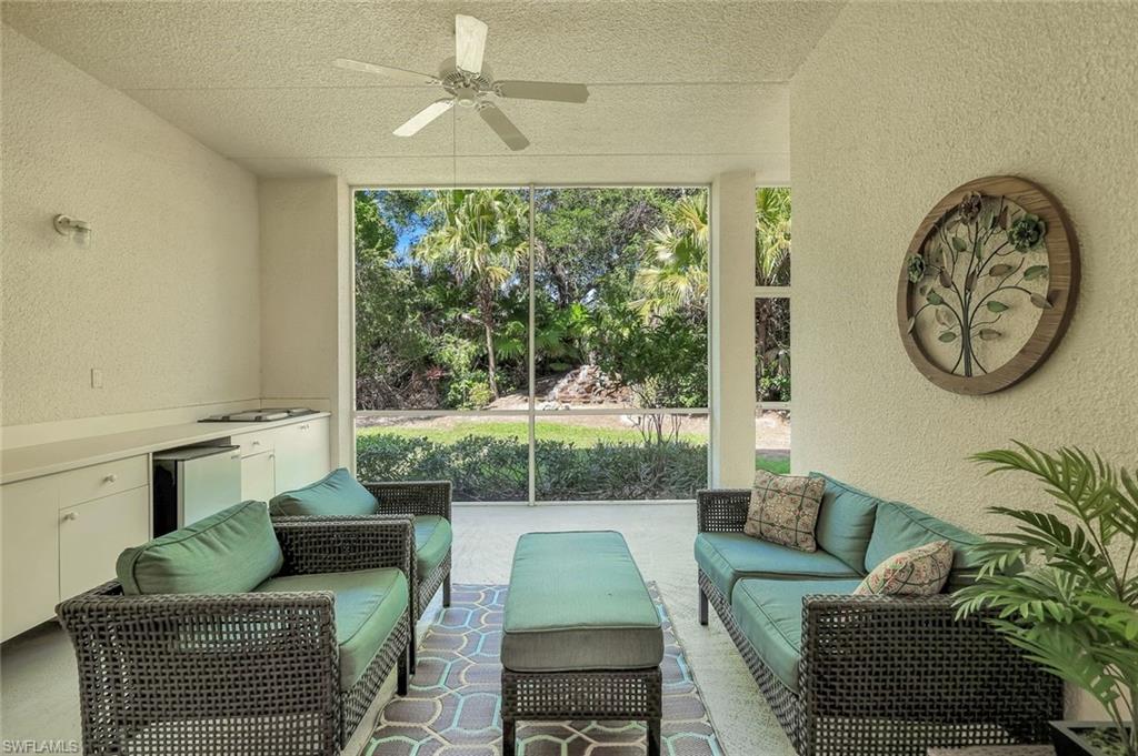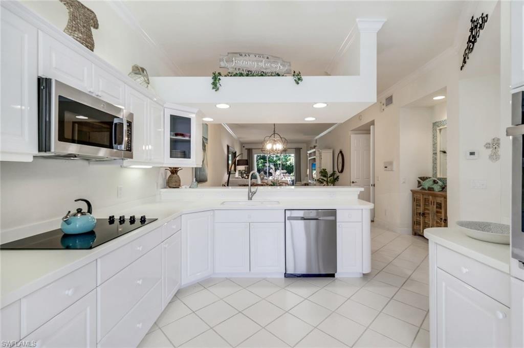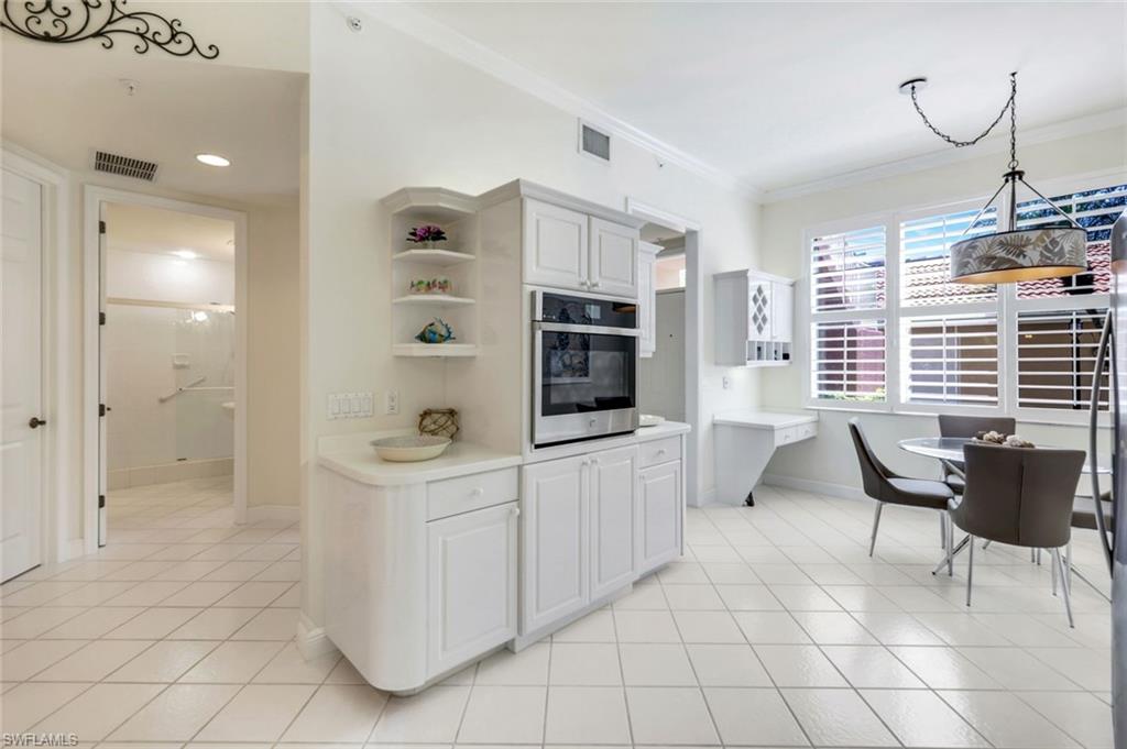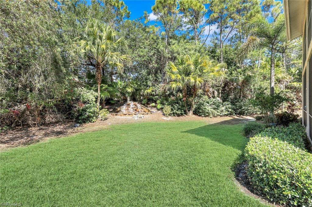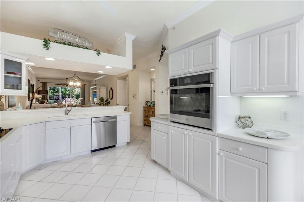 Gorgeous, and REDUCED!!! Nestled in the very private and upscale Water Crest section of Falling Waters, this stunning downstairs, 3-bedroom 2 bath home is ready for you immediately. Offered TURNKEY FURNISHED, you can start living the Naples dream and head to the beach! This end unit bathes you in light all day and provides a serene view of one of the many waterfalls. As you enter this home, you are greeted with a crisp white pallet and a kitchen to match. Stainless steel appliances, with eye level built in oven, spacious cabinetry with desk, plantation shutters throughout and gleaming white tile on the diagonal complete this chef’s delight. All new light vinyl flooring is featured in the living room, and all bedrooms. Accessing the second bedroom is the second bath featuring a walk-in shower with a lovely pedestal sink. The den currently functions as an office with sectional seating but can be easily turned into another true bedroom. The master suite features French doors to the lanai, and the adjacent large master bath has a huge soaking tub, walk in shower, and massive closet. Double sinks and a makeup area for the ladies completes this picture. The living and dining room area is one of the largest Falling Waters offers, with the entire unit encompassing 1860 sq. ft. With views out to the lanai, you will enjoy cooking on your outdoor grill and fetching a beverage from your patio refrigerator. ALL THIS AND NO POLYBUTYLENE PLUMBING!!!!! Additional parking for guests is just steps from your front door, along with access to your garage. Falling Waters provides you with the best amenities and has one of the largest community pools in Naples. Don’t miss this gem!
