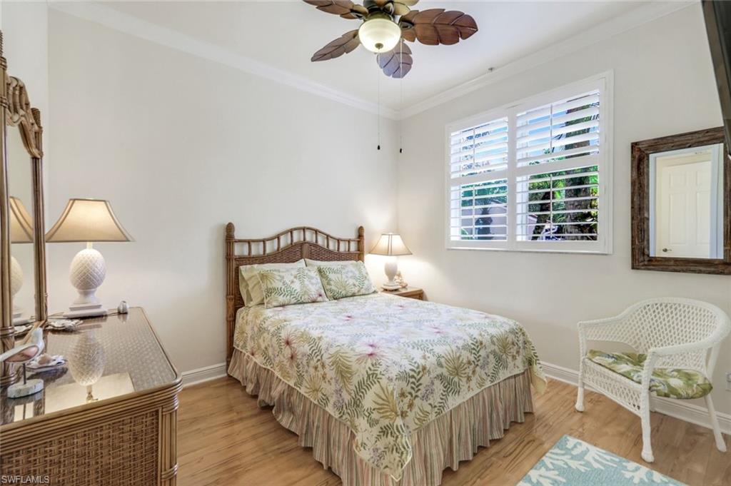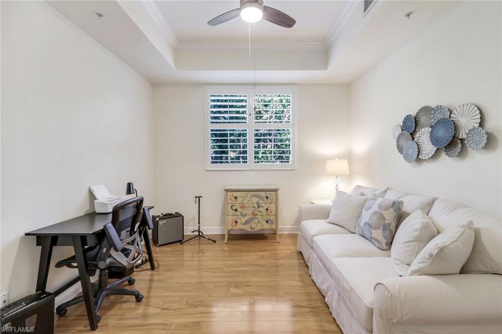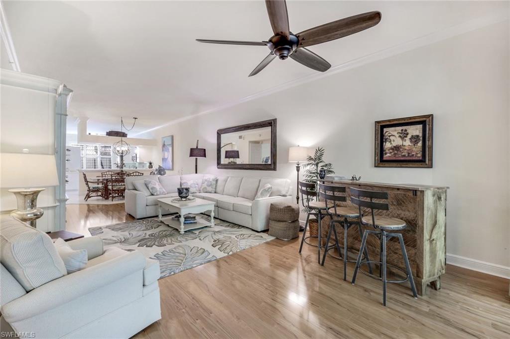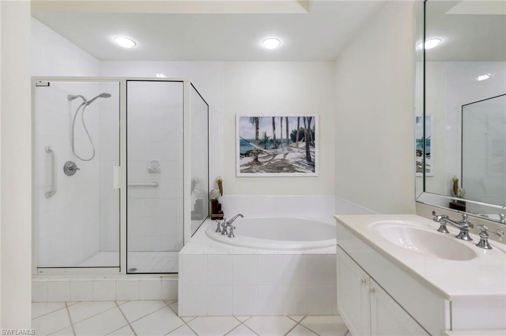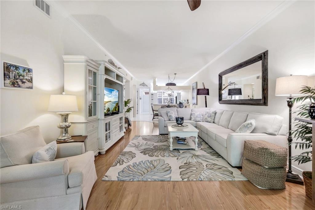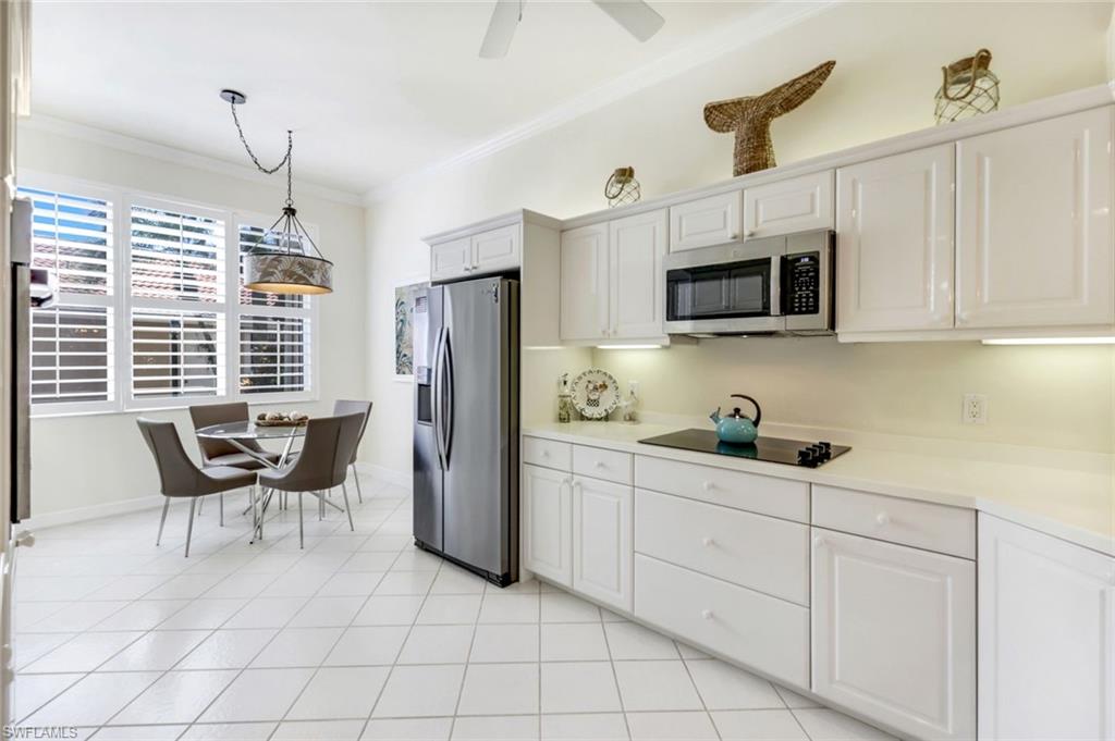 Gorgeous, and REDUCED!!! Nestled in the very private and upscale Water Crest section of Falling Waters, this stunning downstairs, 3-bedroom 2 bath home is ready for you immediately. Offered TURNKEY FURNISHED, you can start living the Naples dream and head to the beach! This end unit bathes you in light all day and provides a serene view of one of the many waterfalls. As you enter this home, you are greeted with a crisp white pallet and a kitchen to match. Stainless steel appliances, with eye level built in oven, spacious cabinetry with desk, plantation shutters throughout and gleaming white tile on the diagonal complete this chef’s delight. All new light vinyl flooring is featured in the living room, and all bedrooms. Accessing the second bedroom is the second bath featuring a walk-in shower with a lovely pedestal sink. The den currently functions as an office with sectional seating but can be easily turned into another true bedroom. The master suite features French doors to the lanai, and the adjacent large master bath has a huge soaking tub, walk in shower, and massive closet. Double sinks and a makeup area for the ladies completes this picture. The living and dining room area is one of the largest Falling Waters offers, with the entire unit encompassing 1860 sq. ft. With views out to the lanai, you will enjoy cooking on your outdoor grill and fetching a beverage from your patio refrigerator. ALL THIS AND NO POLYBUTYLENE PLUMBING!!!!! Additional parking for guests is just steps from your front door, along with access to your garage. Falling Waters provides you with the best amenities and has one of the largest community pools in Naples. Don’t miss this gem!