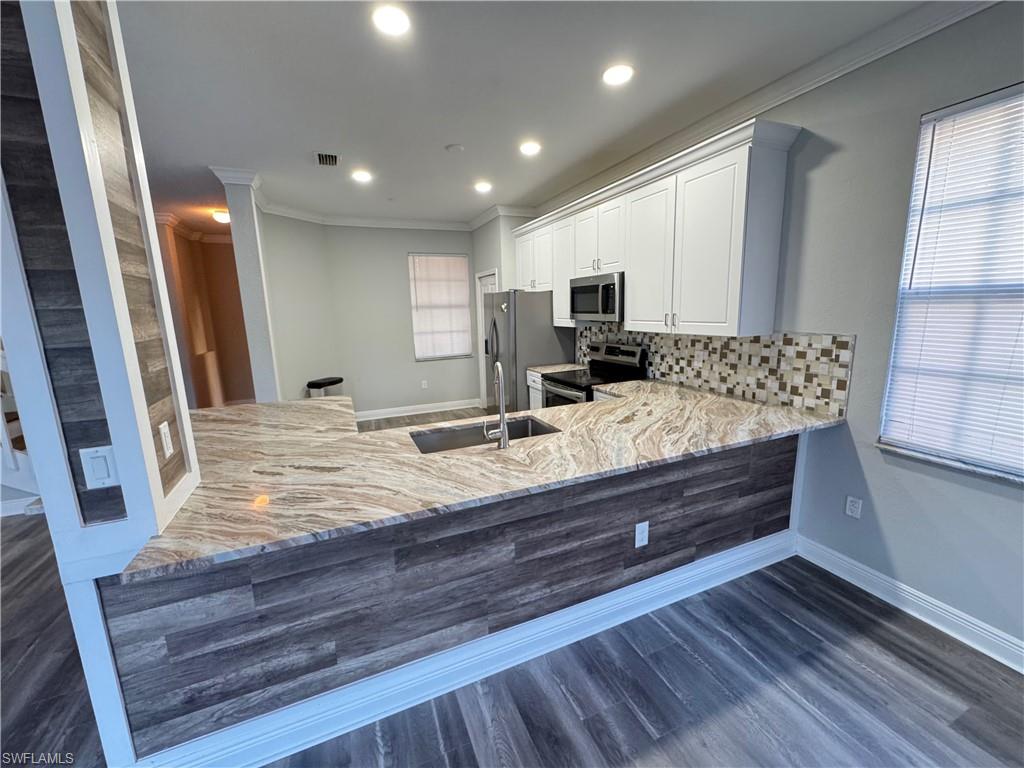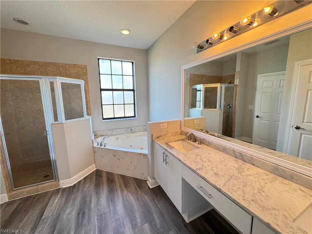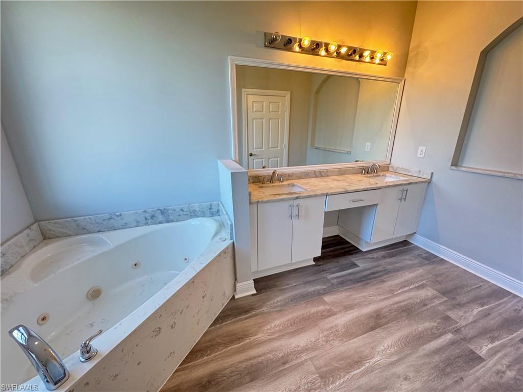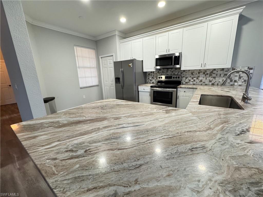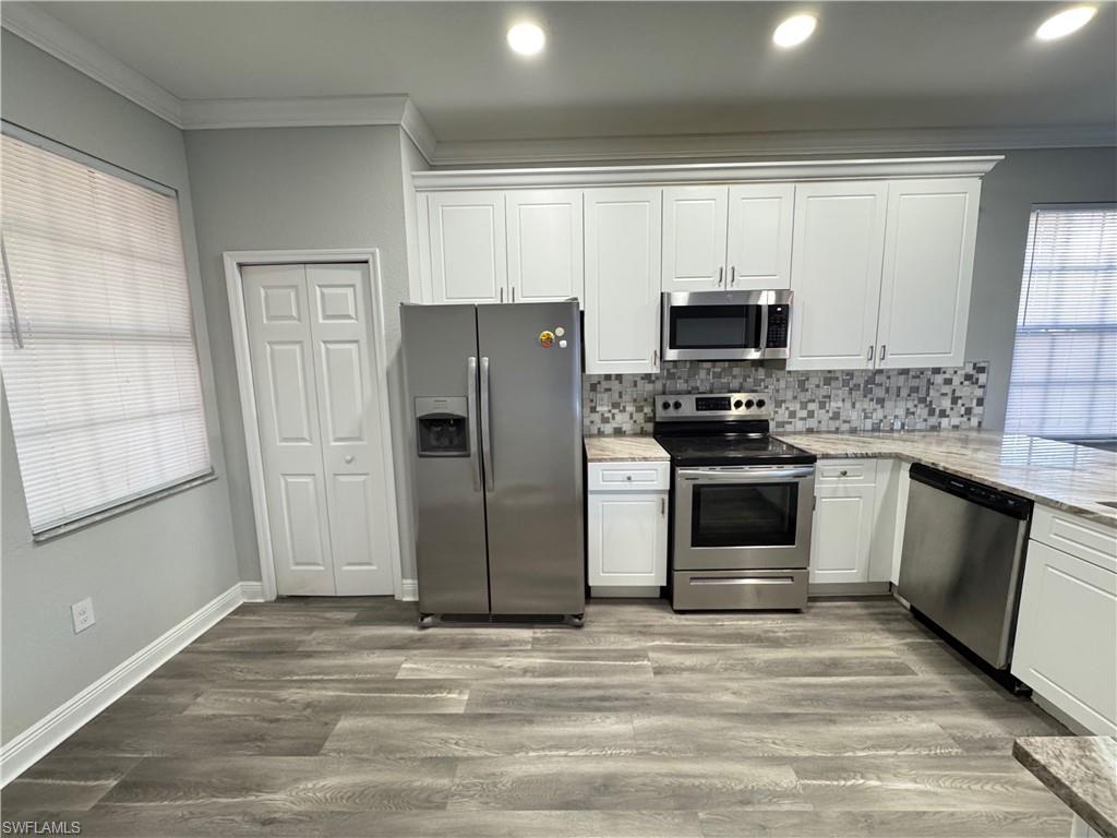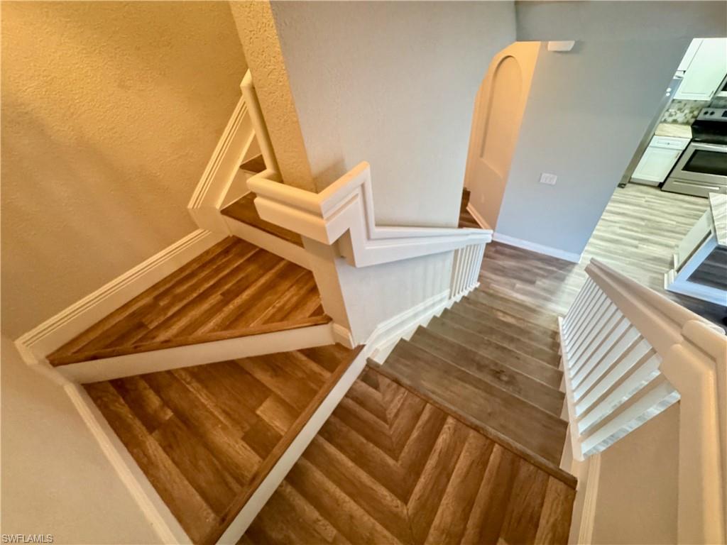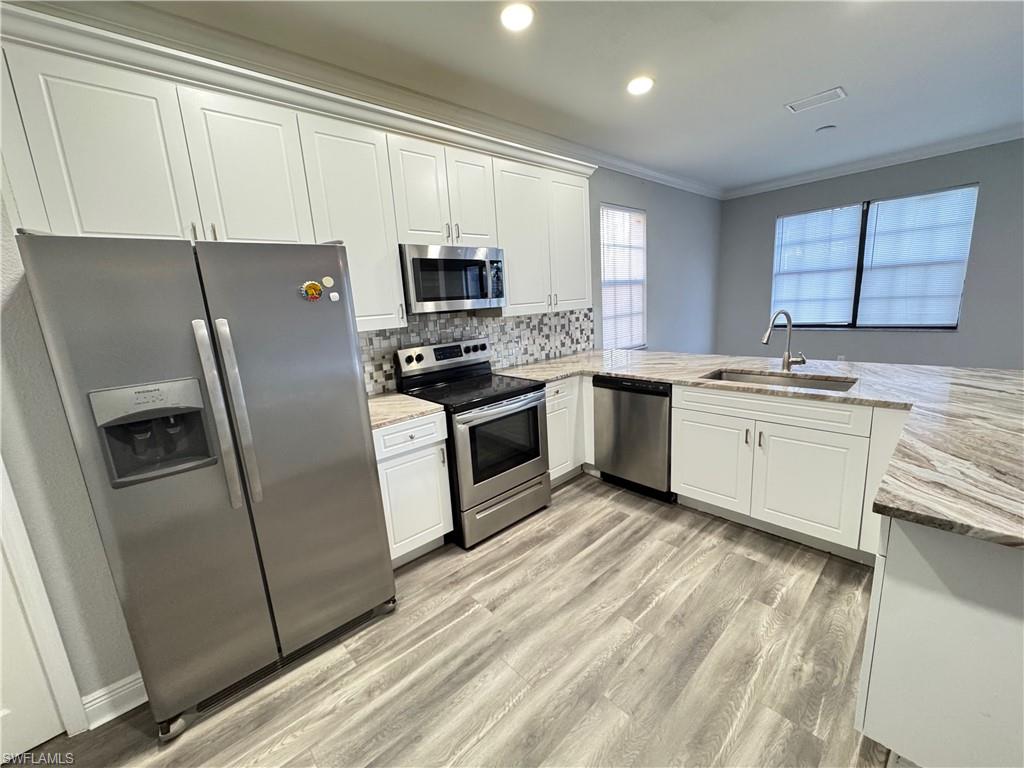 Beautiful 3-Bedroom Townhome in Desirable Bristol Pines. Welcome to this spacious and stylish 3-bedroom, 2.5-bath townhome located in the highly sought-after gated community of Bristol Pines. This two-story home features newly installed laminate wood flooring throughout, offering a warm and modern touch to every room. Upstairs, you'll find a generously sized master suite complete with a huge walk-in closet, a spa-like bathroom with a Jacuzzi-style soaking tub, a separate walk-in shower, and dual vanities – the perfect place to relax and unwind. The open floor plan provides great flow between living, dining, and kitchen areas, ideal for both everyday living and entertaining. Enjoy the peaceful surroundings of this quiet, well-maintained neighborhood that offers a full range of amenities including a clubhouse, pool, fitness center, and more. Conveniently located just minutes from Founders Square, you'll have easy access to a variety of dining, shopping, and entertainment options. Whether you're looking for a full-time residence or a seasonal retreat, this home offers comfort, convenience, and community. Don’t miss your opportunity to own a piece of paradise in Naples!