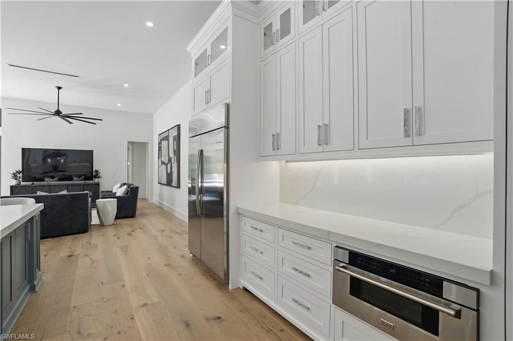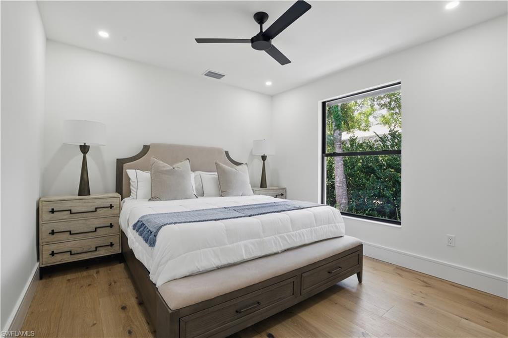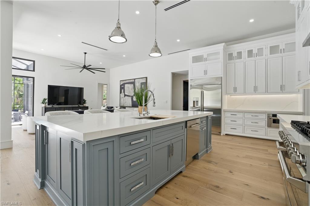 Completely Rebuilt Modern Home in a Prime Cul-de-Sac Location — and in an X flood zone, so no flood insurance is required! 24721 Bay Bean Ct in Pelican Landing is a beautifully reimagined 4 Bed + Den, 3.5 Bath residence that offers the feel of brand-new construction at a fraction of the cost. Taken down to the foundation and completely rebuilt, this 3,424 sqft home features all-new electrical, plumbing, impact windows, roof, cabinetry, flooring, and more. At the heart of the home is a stunning custom kitchen with extensive cabinetry, a large quartz island, 48-inch gas range, and new appliances, all flowing seamlessly into light-filled living and dining spaces. Designed with privacy and comfort in mind, the layout places the primary suite and den on one side of the home, with three additional bedrooms on the other. A spacious laundry room and mudroom off the garage, along with a well-placed powder bath, enhance the home’s everyday functionality. Large sliding doors lead out to a screened lanai with a heated pool and spa, a raised patio, and plenty of space to add an outdoor kitchen or firepit — all overlooking a private preserve with no rear neighbors and only one neighbor to the side. The adjacent lot is protected and cannot be built on, adding to the unmatched privacy. Additional highlights include 10.5-inch wide French white oak flooring, custom built-in closet systems, an oversized two-car garage with A/C and an insulated attic, dual tankless water heaters and air conditioning systems (including a separate unit for the primary suite), and propane gas throughout the home. Located in a gated, family-friendly community with low HOA fees, residents enjoy access to golf, tennis, pickleball, a state-of-the-art fitness center, marina, kayak park, and more. This home is the perfect blend of luxury, privacy, and lifestyle — truly move-in ready and one of a kind.