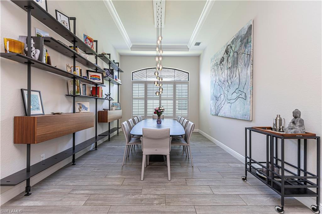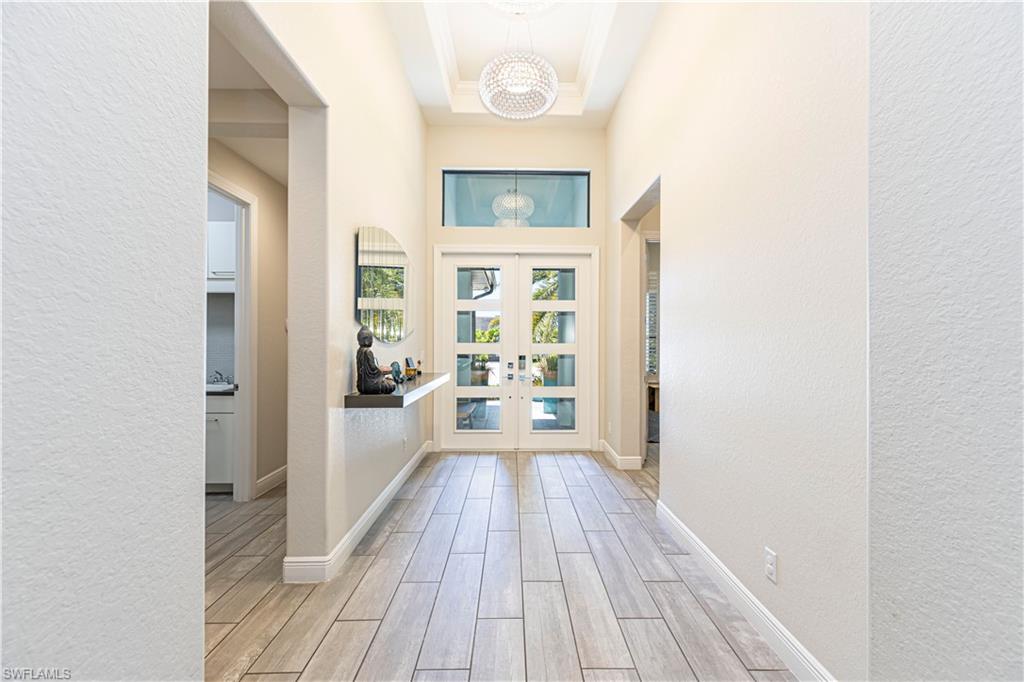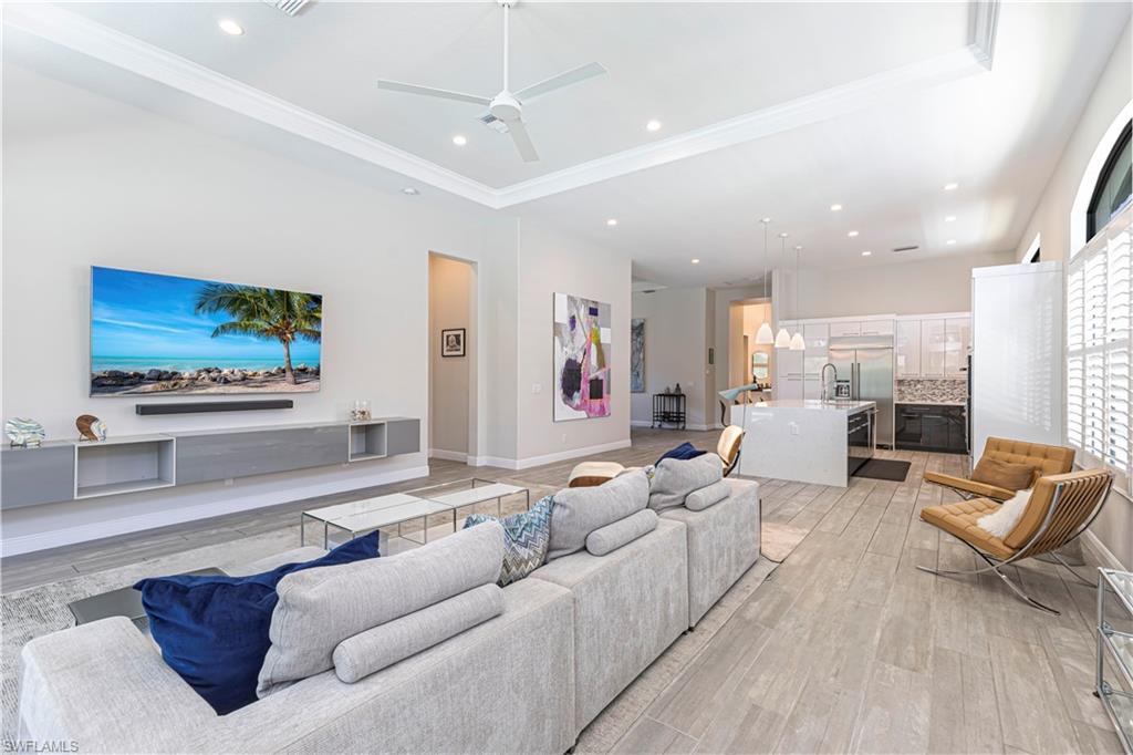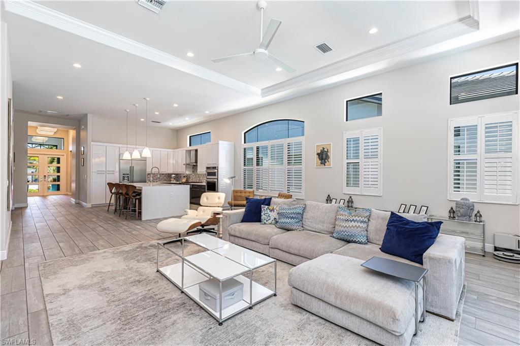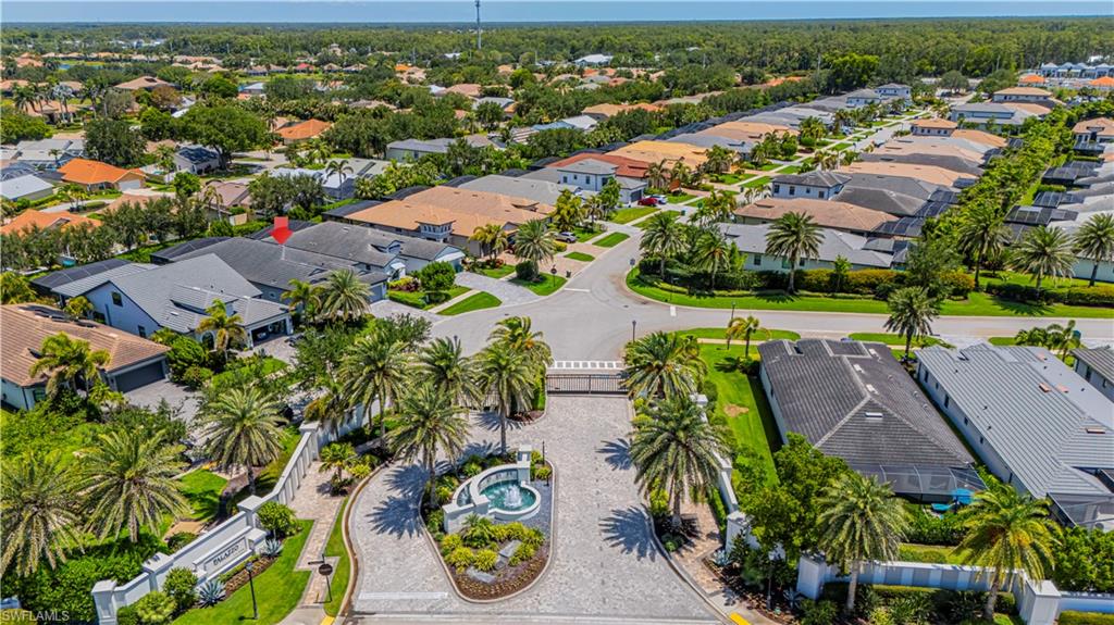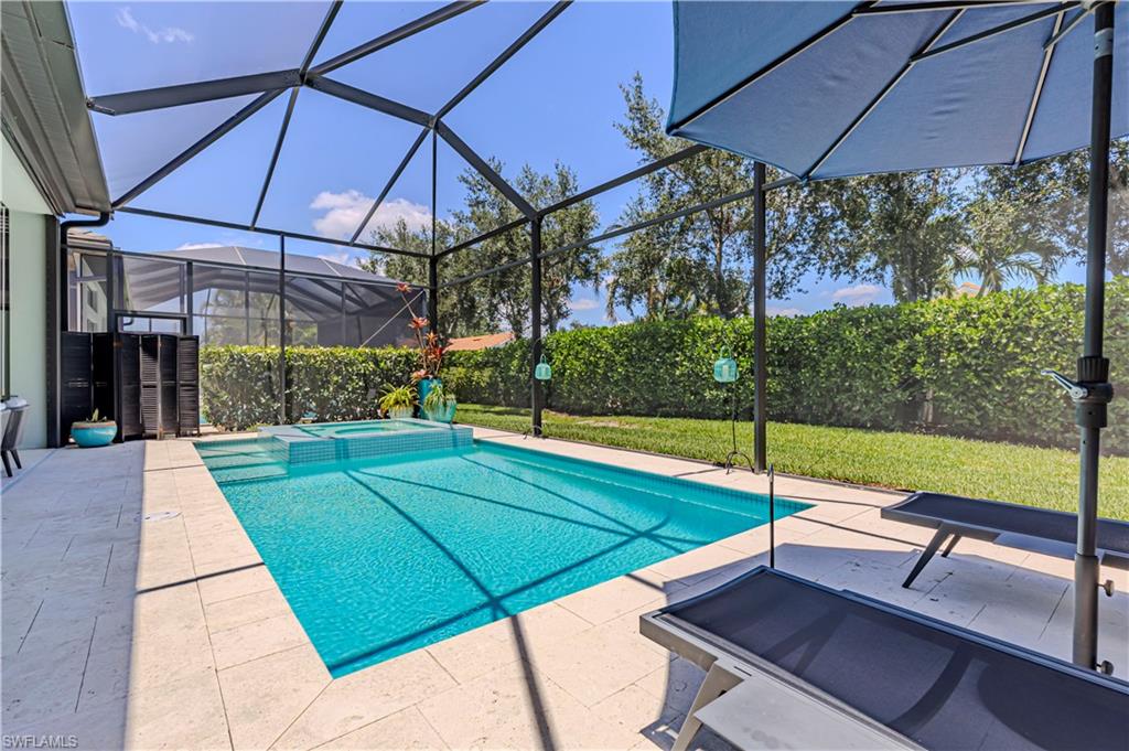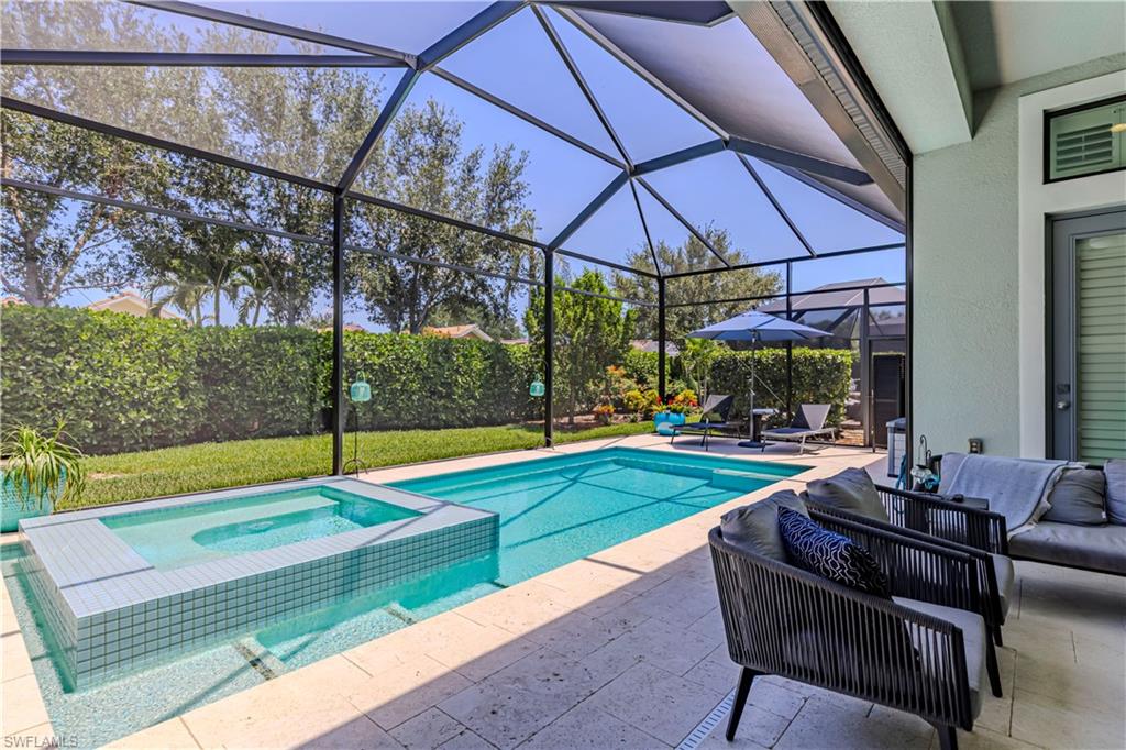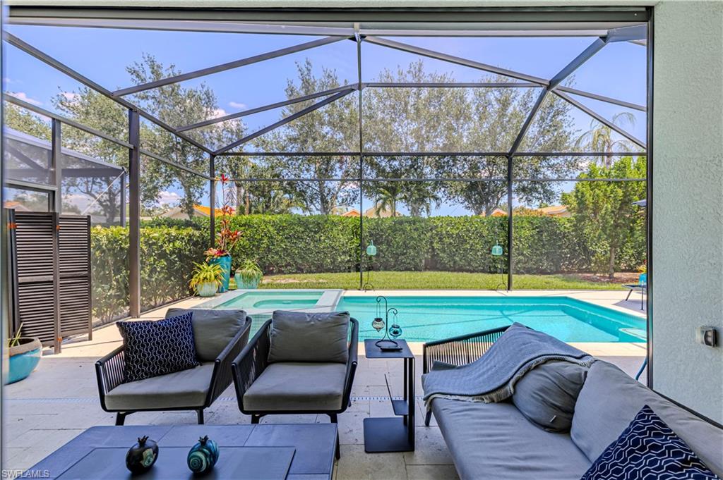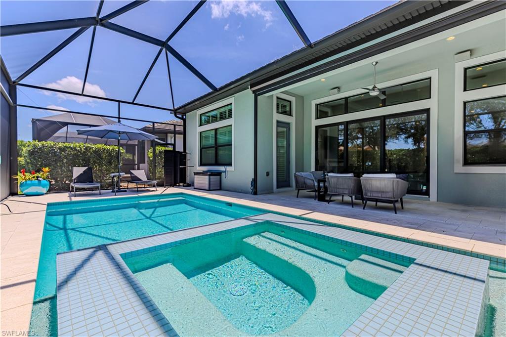 Welcome to this exceptional Toll Brothers residence in Palazzo at Naples, a boutique gated community offering luxury living in one of North Naples most sought-after locations. Built in 2018, this beautifully upgraded home features 3 bedrooms, a spacious den, and 2.5 bathrooms, all thoughtfully designed to deliver modern comfort, style, and functionality. Showcasing quality craftsmanship throughout, the home includes rich wood-look tile flooring, custom ceilings and lighting, and an open-concept layout ideal for both everyday living and entertaining. The gourmet kitchen is a true showpiece, complete with sleek cabinetry, stainless steel appliances, a natural gas cooktop, and an oversized quartz waterfall island, perfect for hosting gatherings or enjoying quiet evenings at home. The luxurious primary suite offers a serene retreat with a freestanding soaking tub, a massive walk-through shower, elegant tile finishes, and two large custom walk-in closets for ample storage. Step outside to your own private backyard oasis featuring a sparkling pool and spa, surrounded by lush landscaping, ideal for year-round relaxation and entertaining. Additional highlights include hurricane-impact doors and windows, storm smart electrionic shutters on the lanai, a custom-designed laundry room, natural gas access, an oversized two-car garage, no CDD fees, and low HOA dues. Enjoy peace of mind with a whole-home Generac generator, Storm-Smart Electronic shutters on the lanai, and the added benefit of being located outside of a flood zone. Residents have the option to join nearby Quail Creek for additional lifestyle amenities. And with a convenient location just off Immokalee Road and I-75, you're only 6 miles to the Gulf’s white-sand beaches, 20 minutes to RSW International Airport, and close to top-rated schools, championship golf, upscale dining, shopping, and more. This is a rare opportunity to own a beautifully upgraded home in a prime North Naples location.