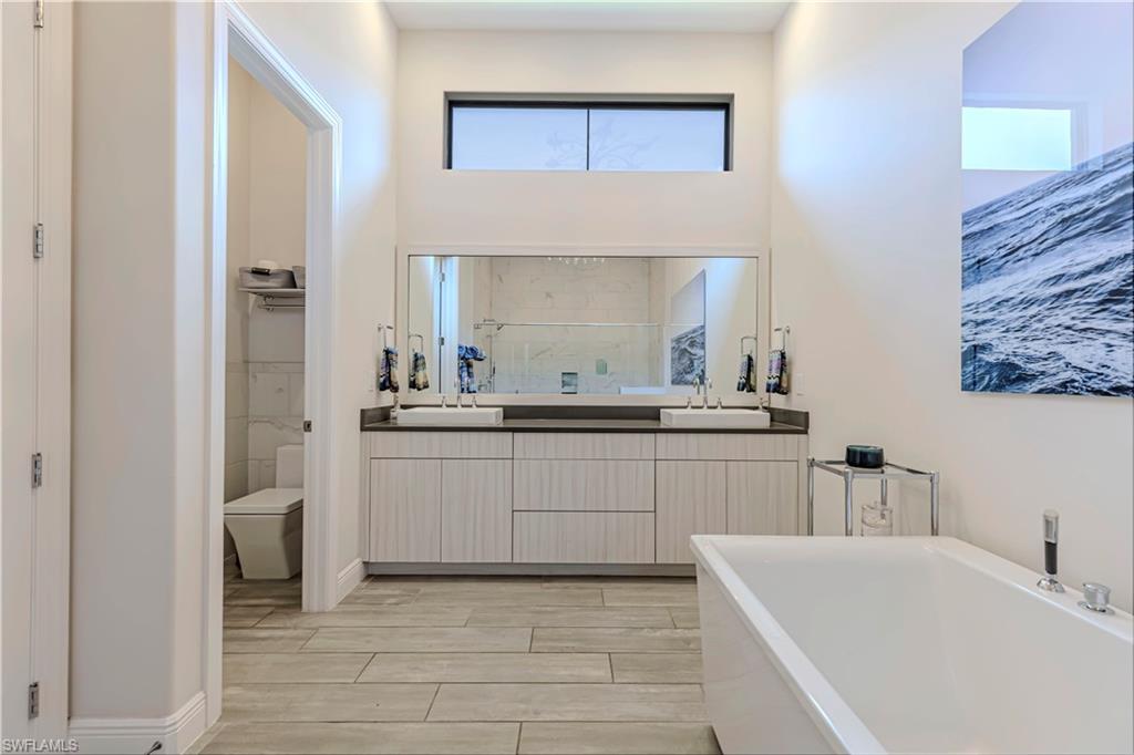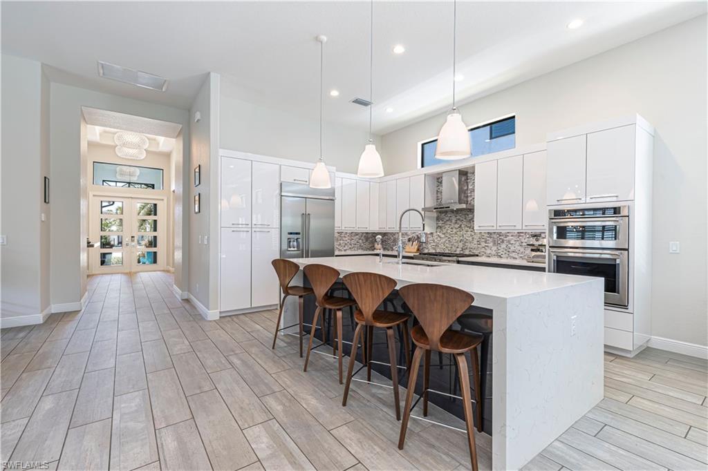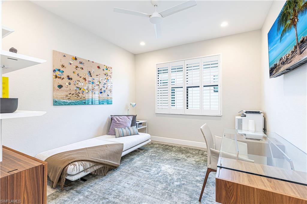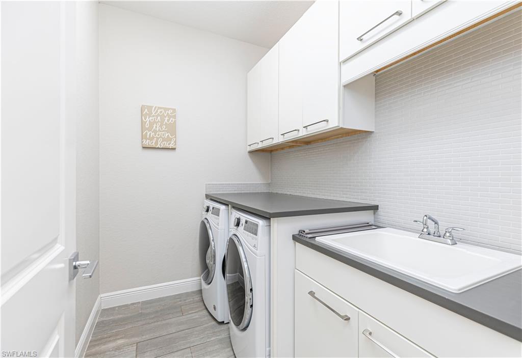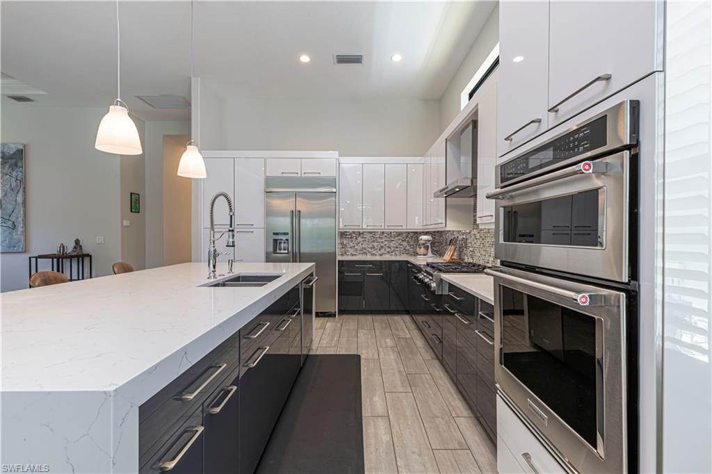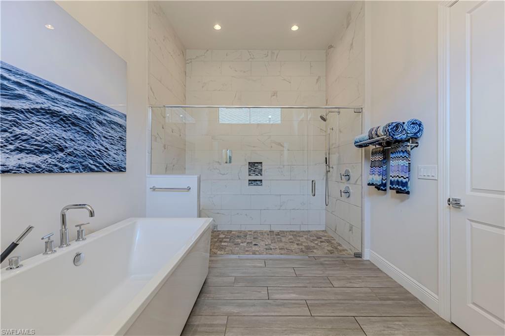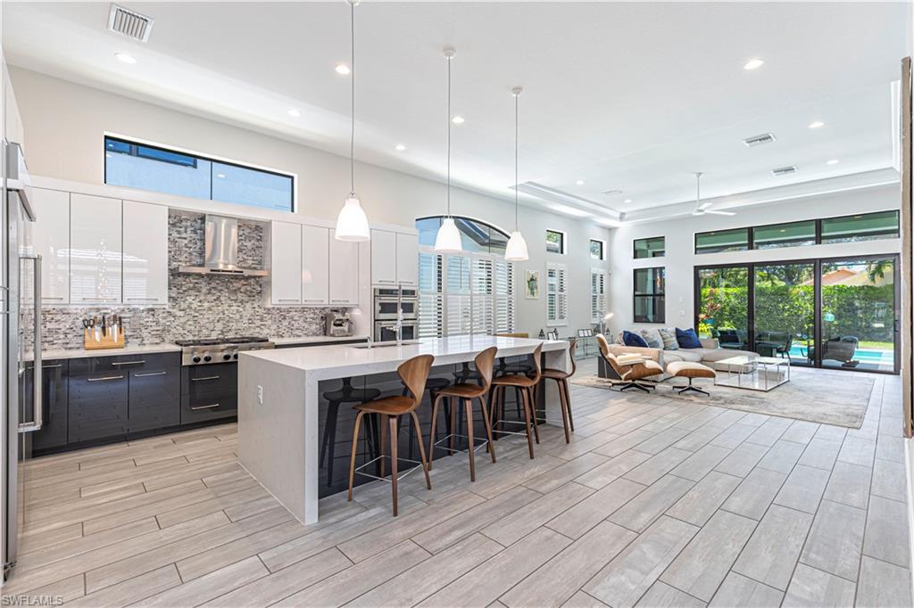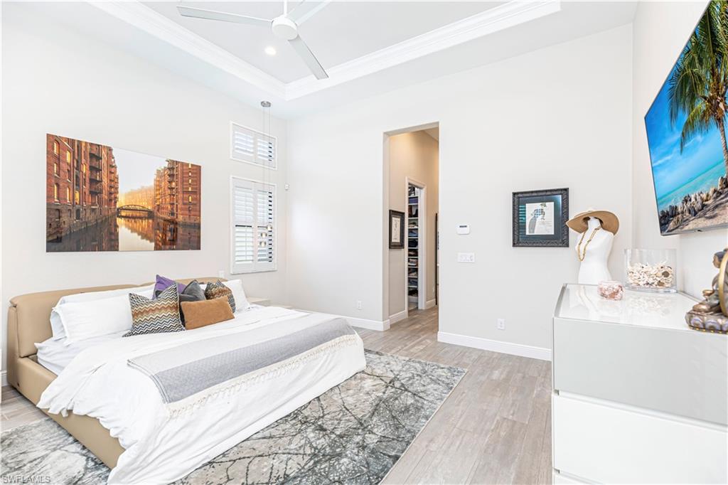 Welcome to this exceptional Toll Brothers residence in Palazzo at Naples, a boutique gated community offering luxury living in one of North Naples most sought-after locations. Built in 2018, this beautifully upgraded home features 3 bedrooms, a spacious den, and 2.5 bathrooms, all thoughtfully designed to deliver modern comfort, style, and functionality. Showcasing quality craftsmanship throughout, the home includes rich wood-look tile flooring, custom ceilings and lighting, and an open-concept layout ideal for both everyday living and entertaining. The gourmet kitchen is a true showpiece, complete with sleek cabinetry, stainless steel appliances, a natural gas cooktop, and an oversized quartz waterfall island, perfect for hosting gatherings or enjoying quiet evenings at home. The luxurious primary suite offers a serene retreat with a freestanding soaking tub, a massive walk-through shower, elegant tile finishes, and two large custom walk-in closets for ample storage. Step outside to your own private backyard oasis featuring a sparkling pool and spa, surrounded by lush landscaping, ideal for year-round relaxation and entertaining. Additional highlights include hurricane-impact doors and windows, storm smart electrionic shutters on the lanai, a custom-designed laundry room, natural gas access, an oversized two-car garage, no CDD fees, and low HOA dues. Enjoy peace of mind with a whole-home Generac generator, Storm-Smart Electronic shutters on the lanai, and the added benefit of being located outside of a flood zone. Residents have the option to join nearby Quail Creek for additional lifestyle amenities. And with a convenient location just off Immokalee Road and I-75, you're only 6 miles to the Gulf’s white-sand beaches, 20 minutes to RSW International Airport, and close to top-rated schools, championship golf, upscale dining, shopping, and more. This is a rare opportunity to own a beautifully upgraded home in a prime North Naples location.