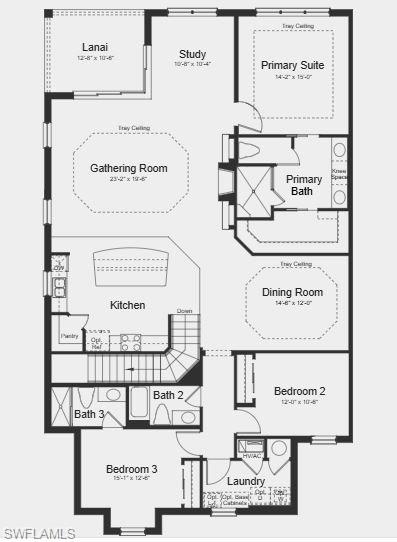 New Construction - Ready Now! Built by America's Most Trusted Homebuilder. Esplanade by the Islands Coach Homes offers an unparalleled lifestyle with resort-style amenities and wellness programs to inspire and invigorate. Whether you’re seeking active adventures or peaceful retreats, this community delivers luxury and sophistication at every turn. Swim laps or lounge by the resort-style pool, sip a refreshing drink at the Bahama Bar, or recharge at the state-of-the-art wellness center. Stay energized with tennis, pickleball, and bocce courts, or indulge in unique experiences like wine tastings, cooking classes, and live concerts. The culinary center provides both fine and casual dining, along with opportunities to hone your cooking skills. From relaxing spa events to exciting excursions, Esplanade by the Islands makes every day a celebration of vibrant, carefree living. Welcome to the Romano at 15315 Lucerna Street Unit 201 in Esplanade by the Islands. The Romano is a spacious second-floor coach home offering 2,393 square feet of thoughtfully designed living. This 3-bedroom, 3-bath plan includes a bright lanai, a versatile study, and a 1-car garage. The open-concept layout centers around the gathering room, which flows into a stylish kitchen and nearby dining room—perfect for everyday living or entertaining. The owner’s suite offers a large walk-in closet, dual sinks, a corner shower, and a private water closet. Two additional bedrooms, a study, full baths, and a convenient laundry room complete this inviting. Additional Highlights Include: Impact windows and sliders, tray ceilings, crown molding, formal fireplace with shelves, quartz countertops, turn-key Cafe appliances, and an acrylic sealed garage floor. Photos are for representative purposes only. MLS#225048589