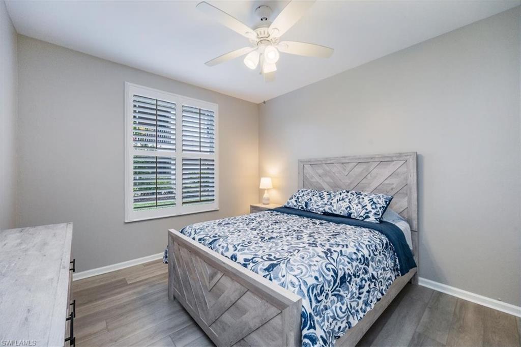 "Live Life Beautifully In Southwest Florida" in this Elegantly Updated Lakeview Condo in The Orchards – Central Naples. This beautifully updated 3-bedroom, 2-bathroom condo in the highly desirable Orchards community offers comfort, style, and an unbeatable location in the heart of Naples. Featuring brand-new wood flooring throughout, a fully renovated kitchen with new cabinets, tile backsplash, and stainless steel appliances, this home is both move-in ready and turnkey furnished — most furnishings are brand new and never used. The freshly painted interior boasts modernized bathrooms with quartz countertops, stylish tile work, and contemporary light fixtures. Enjoy tranquil mornings with stunning eastern lake views from your private screened lanai. Additional upgrades include plantation shutters on nearly every window and electric hurricane screens for peace of mind. The home includes a 1-car attached garage, an extended driveway, and guest parking conveniently located just across the street. All of this just one block from the community clubhouse, where residents enjoy a resort-style pool, fitness center, playground, tennis and pickleball courts. The Orchards is a gated community ideally located just: 3 miles to Vanderbilt Beach & The Ritz-Carlton Beach Resort Across from Tiburón & The Ritz-Carlton Golf Resort Less than 10 minutes to Mercato, 15 minutes to Downtown Naples & 25 minutes to Southwest Florida International Airport. Don’t miss this opportunity to own a stylish, low-maintenance home in one of Naples’ most central and convenient locations!