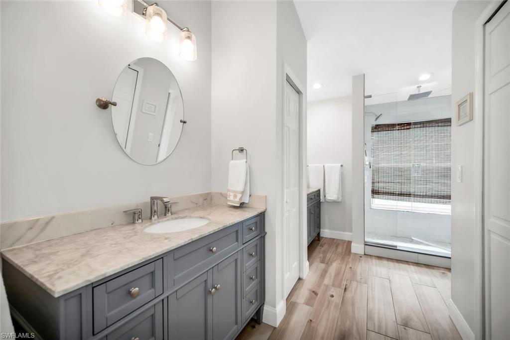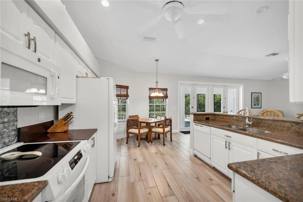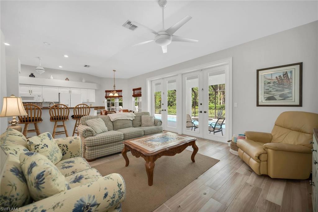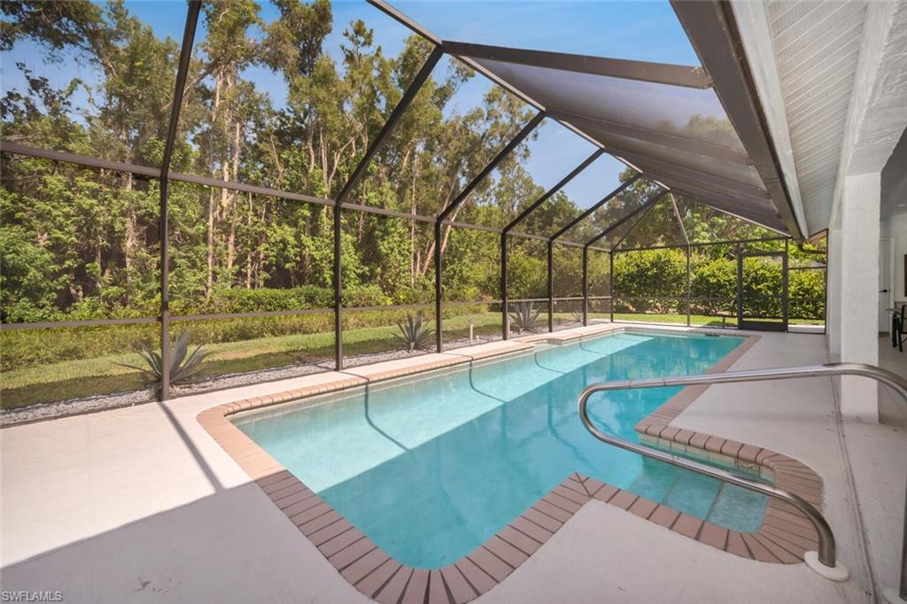 Welcome to this beautiful single family pool home in the highly desirable gated community of Vanderbilt Lakes. This home is a dream come true, nestled on one of the largest lots near the end of a quiet cul-de-sac with lush, mature landscaping that offers a peaceful view and serene lifestyle with LOW HOA fees. This 1863 sq. ft. split-bedroom ranch (offered turnkey) is ideal for entertaining, with an open floor plan that includes a family/living room, dining room, and den all centered around a well-appointed kitchen and expansive outdoor living space. The home’s inviting layout draws you toward the picturesque and private preserve view, which can be enjoyed from the living/family room, dining room, kitchen, and the primary suite. This 3-bedroom 3-bath + den with a Murphy bed gem provides more than ample sleeping space for visiting family and friends. The MANY upgrades include luxury porcelain tile flooring throughout, fully updated primary and guest baths, Norman plantation shutters, impact windows, an outdoor kitchen, solar heating, newer A/C and newly painted and rescreened lanai cage. Conveniently located near some of the area’s top restaurants, shopping destinations, beautiful beaches, and just a 30-minute drive to RSW International Airport. Vanderbilt Lakes is the perfect place to call home.