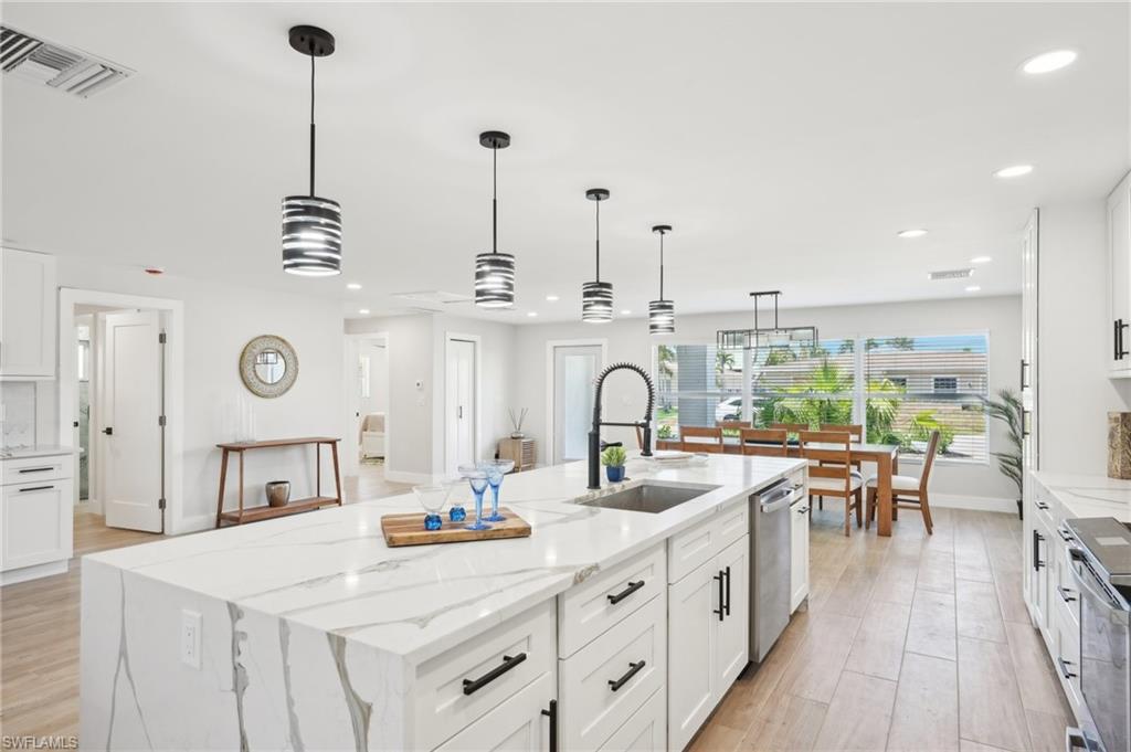 HUGE PRICE REDUCTION,READY TO SELL!A Boater's Dream! This 4 bedroom, 3 bathroom waterfront pool home with over 2500 square feet under air is located in the sought-after Siesta Isles neighborhood. The interior of the home has been remodeled to perfection with high end finishings throughout, inclusive of porcelain wood plank tile, built in bar with wine refrigerator, custom tiled bathrooms, modern lighting and so much more. The chef's kitchen with soft close white shaker cabinetry, gorgeous quartz waterfall counters, and a huge Island overlooks the main living and dining areas, great for entertaining! Step outside and relax in your pool or hot tub while watching the dolphins and manatee. With 75 feet on this DEEP waterway, your boating and sailing options are endless from your private dock just minutes from the gulf. Nearly everything is new and has been fully permitted! Being sold turnkey furnished with no rental restrictions, this home is perfect for a snowbird, your new full-time residence, investment, or a combination thereof. Seller financing and/or lease options available.
