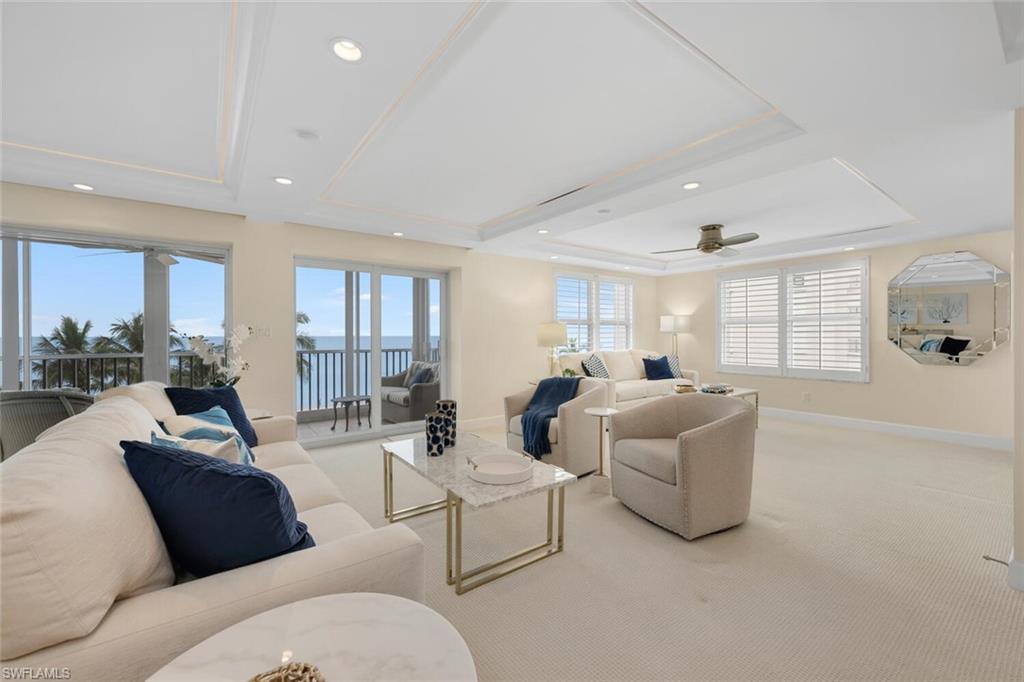 Impressive 4th-floor end unit in the desirable Martinique Club featuring 3 bedrooms, 3 bathrooms, and 2,064 sq/ft of beachfront living. The updated kitchen offers newer appliances and opens seamlessly to the living space—ideal for entertaining. Enjoy stunning Gulf views from this private, well-located condo. The third bedroom has been opened to expand the living area, enhancing the open-concept layout. Additional highlights include updated lighting, custom interior shutters, and an expansive lanai with hurricane-rated sliders. This unit may also be purchased with the adjacent unit (#404), creating a rare opportunity for a 5-bedroom, 5-bath beachfront retreat. Martinique Club offers an exclusive lifestyle with only 35 residences, private beach access, a beachfront pool, cabana room, and a newly renovated lobby. Ideally located just steps from Venetian Village’s upscale boutiques and dining, and a short drive to Waterside Shops, Artis–Naples, Mercato, and the iconic 5th Avenue South and 3rd Street South.