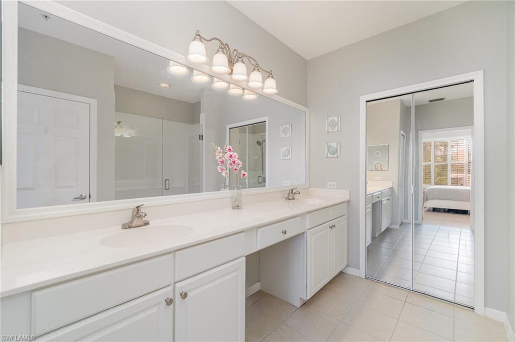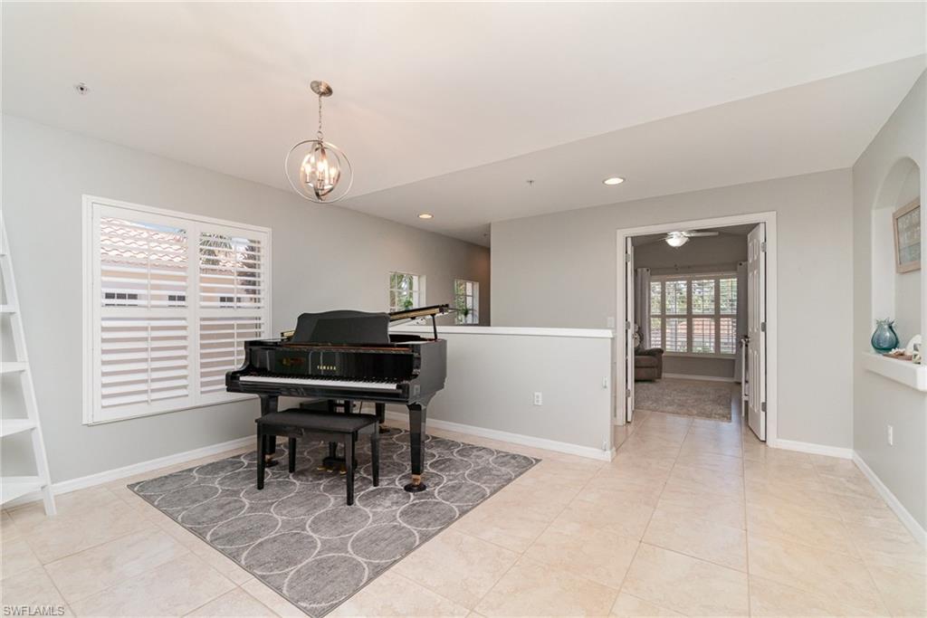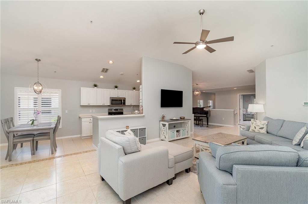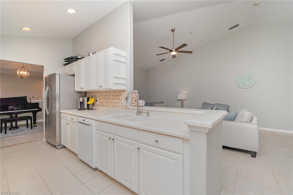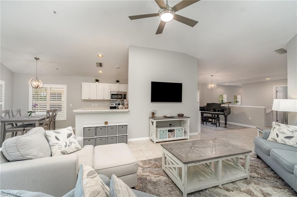 One of the MOST AFFORDABLE, UPDATED CONDOS IN THE ENTIRE ZIP CODE! Come visit us in the ever-so-desirable Coventry at Stratford Place where you will step into the “Spoonbill Model,” the BEST FLOOR PLAN in this GATED community. Boasting nearly 1800 sq ft., this END UNIT condo sports 2 bedrooms, 2 full bathrooms plus a flex den/bedroom/playroom/media/exercise room w French doors. (Third bedroom is non-conforming.) Also includes an oversized 1-car ATTACHED GARAGE with 2 EXTRA exterior garage spots (so 3-CAR SPOTS!) on a paver driveway, making it easy for your guests to visit. MASSIVE GREAT ROOM and huge dining room that could easily be converted into an office/conversation room/flex space. Enjoy your peaceful morning coffee, yoga and readings out on the GIANT PRIVATE LANAI -- also fun to host game night & BBQS -- or overlooking the pretty lake and nature preserve. This spacious, OPEN FLOOR PLAN exudes HAPPINESS with so much NATURAL LIGHT and WINDOWS GALORE. Bright white kitchen includes NEW stainless appliances, white corian countertops, cozy breakfast nook and reach-in pantry. Master bathroom features dual vanities, a BRAND NEW impressive walk-in shower, large walk-in closet, linen closet. Awesome tile throughout for easy cleaning after a fun day at the beach. PET FRIENDLY. Condo is located directly across from the community pool and mailbox center. Everything is white light and bright! As you enter into the condo, the first response by everyone is "wow, it's HUGE! and I love the high vaulted ceilings." ALL APPLIANCES REMAIN (except for garage freezer/fridge). NEWER mechanicals: HVAC 2020 and water heater 2017. INQUIRE FOR A PRIVATE SHOWING. NOTE: Buyers should verify all information represented in the MLS to guarantee accuracy. HOA dues of $1497 include Xfinity cable & internet, water, pest control, trash as well as lawn maintenance and irrigation to ensure a carefree and convenient lifestyle. Unit may not be leased in the first 12 months of ownership. The community feels likes a resort-style setting with beautifully-maintained, lush landscaping and useful amenities such as its swimming pool, spa, basketball court, bike & jog path. LOCATION: Located just East of Pine Ridge Rd and Airport Pulling, you are in walking distance to an abundance of shops, dining, and entertainment venues. Just minutes to I 75 highway, Stratford Place is a central Naples’ location to top schools, the Gulf of America pristine shores and beaches, incredible shopping, awesome restaurants and in close proximity to downtown 5th Avenue, Bayfront, Tin City, Venetian Village, Mercato Shopping Center, Vanderbilt Shoppes, Isle of Capris, Marco Island and just 20 minutes from SWFL International Airport. How blessed to have the opportunity to live in our sunny Southwest Florida weather and also take advantage of our State’s financial benefits!