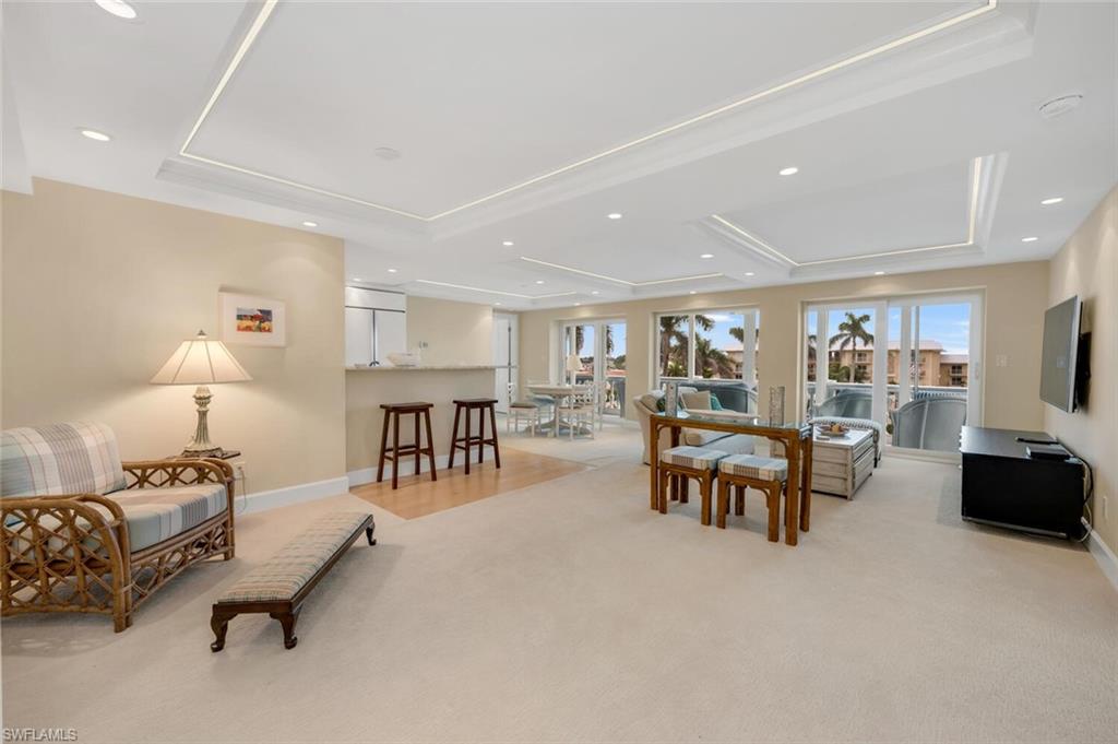 Beautifully updated 4th-floor condo in the Martinique Club featuring 2 bedrooms, 2 bathrooms, and 1,440 sq/ft of light-filled living space in the highly sought-after Moorings neighborhood. Located directly on the beach, this unit also offers partial views of Moorings Bay, blending the best of Gulf and bayfront living. The updated kitchen features quality appliances and flows seamlessly into the open floor plan, enhanced by elegant cove lighting and abundant natural light. The split bedroom layout is ideal for hosting family and guests, offering privacy and comfort for all. Spacious bedrooms provide a relaxing retreat, while a large balcony invites you to enjoy morning coffee or evening wine in the coastal breeze. This unit may also be purchased with the adjacent unit (#403), creating a rare opportunity for a 5-bedroom, 5-bath beachfront retreat. Martinique Club offers an exclusive lifestyle with only 35 residences, private beach access, a beachfront pool, cabana room, and a newly renovated lobby. Ideally located just steps from Venetian Village’s upscale boutiques and dining, and a short drive to Waterside Shops, Artis–Naples, Mercato, and the iconic 5th Avenue South and 3rd Street South.