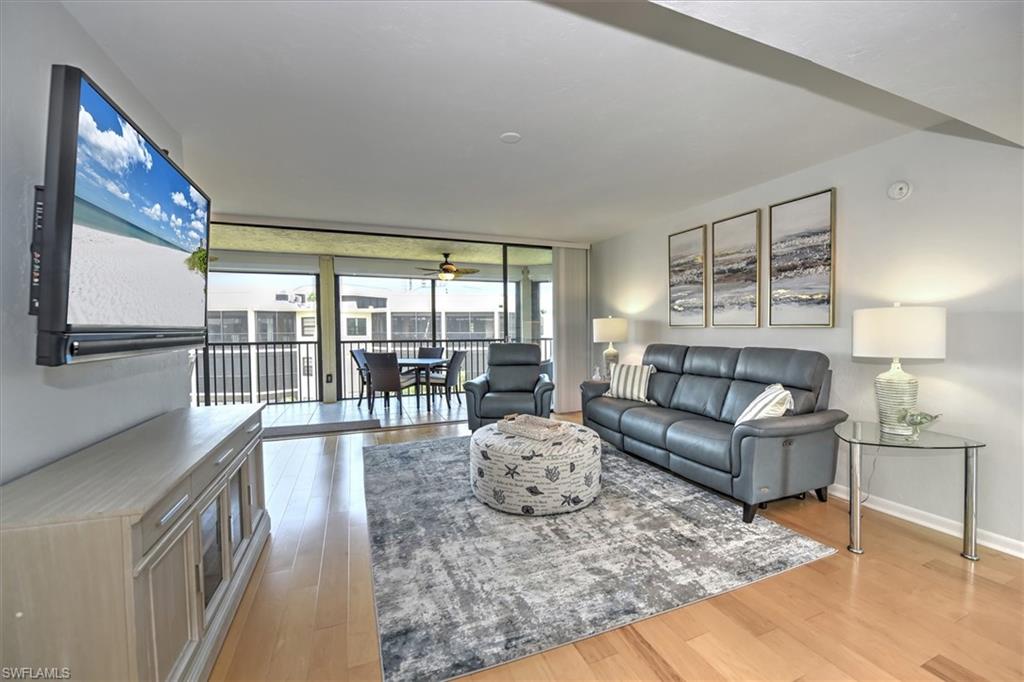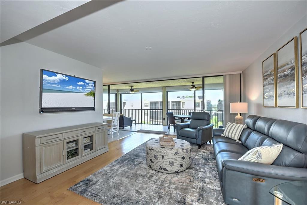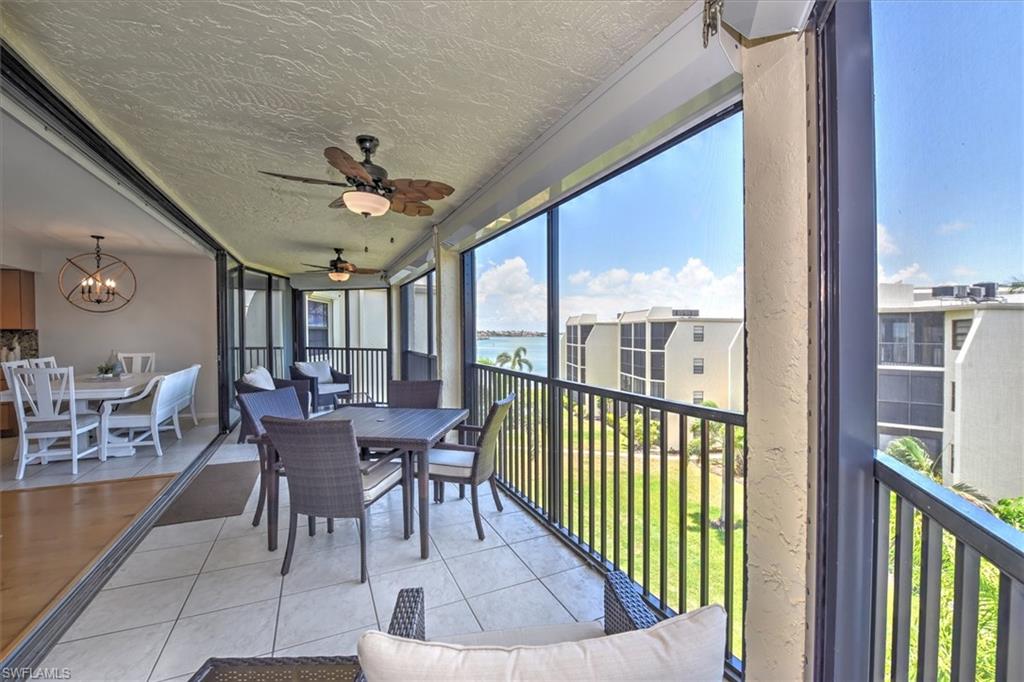 Recently remodeled and move-in ready!!! Stunning views!!! Excellent rental History!!! Lanai sports southeast views over Caxambas Pass and the 10,000 Islands. Common boat docks and fishing pier accommodates avid water enthusiasts. Start your day with sunrise on the screened lanai taking in the beautiful bay and island views. This penthouse level, top floor 2 bed 2 bath condo has a large screened lanai to enjoy. Recent remodel includes all new Designer Select interior doors and trim, new quartz kitchen tops with custom backsplash, new HVAC system with 10 year warranty, new custom walk in shower in master, flooring upgrades, lighting upgrades, electric storm shutters on lanai, power blinds on sliders, wifi thermostat and ring doorbell, secure owners closet, fresh paint throughout, new lanai furniture, new living and bedroom furniture and new TV's. Waters Edge offers a laid-back boating lifestyle that is unsurpassed. Close proximity to South Marco Beach access and next door to Caxambas boat launch. Enjoy the on-site amenities: waterfront heated community pool and chickee hut with grills. Tennis and Pickle-ball courts. Newer larger (assigned with manager approval and application) dock slips (no lifts), kayak rack and fishing pier. Pets allowed with size limits. Invest your days at the fine beaches of Marco Island, have fun exploring the 10,000 Islands, enjoy fine dining and everything Marco Island has to offer. Act now to secure your piece of Marco Island paradise!!