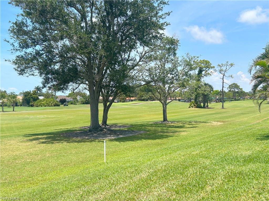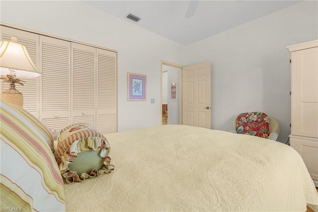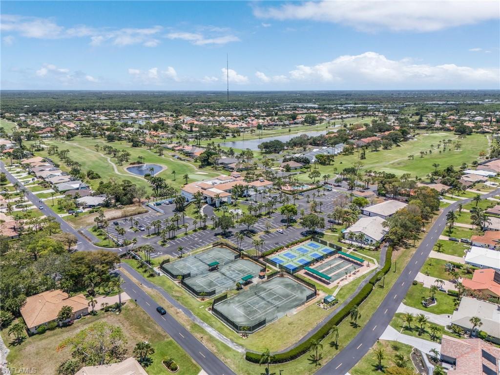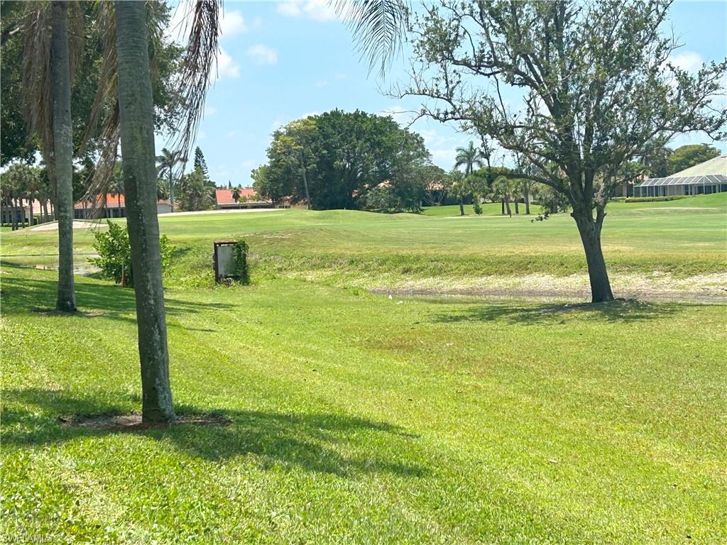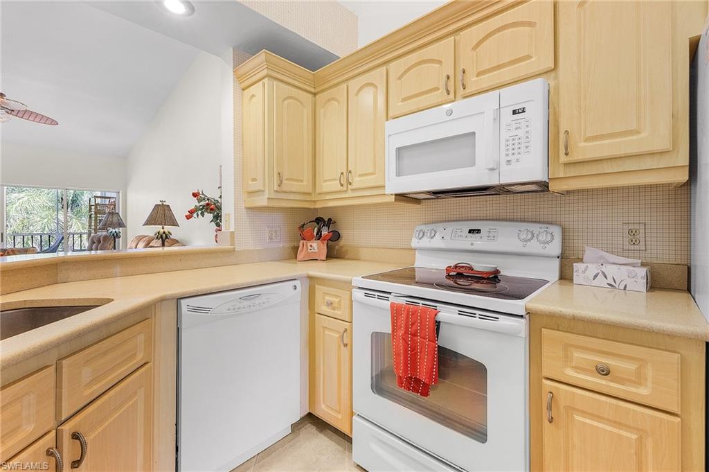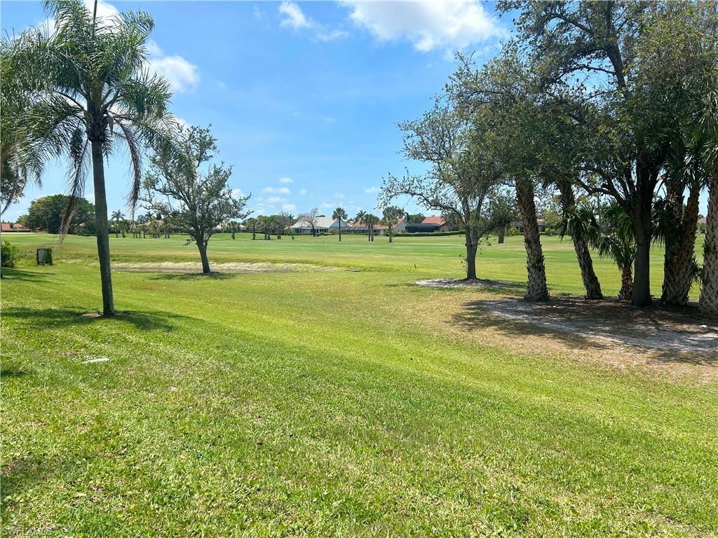 A room with a view. This lanai overlooks two fairways and you can watch the sunset in the evenings. You like to play golf? You are in luck as this condo not only comes with a one car garage, but its own golf cart garage for your private golf cart or just extra storage. This lovely 2 bedroom 2 bath condo has high vaulted ceilings and lovely tile floors on the diagonal and wood look laminate in the bedrooms. Don't worry about the summer storms as the windows are all impact resistant and the lanai has hurricane shutters. The condo has lovely plantation shutters on the windows.The dinette/sitting area could also be used as a home office area. The master shower has bee redone and the hall bath vanity has been replaced. The condo pool is just a few steps away and the location cannot be duplicated! 3 miles to Barefoot Beach and Bonita Beach, 3 miles to I75 and just a quick 20 minute ride to the airport. There are doctors, shopping and dining just outside the gates. Membership to Spanish Wells Country Club is not required although some amenities may require one of the many levels of membership. There are 27 holes of golf and YOU DO NOT have to be a member to play golf even during season. Spanish Wells is a great community with low fees and 24 hour security. Cable and Internet are included in your condo fees, so your only required bill will be your electric bill. This sale is subject to FIRPTA.