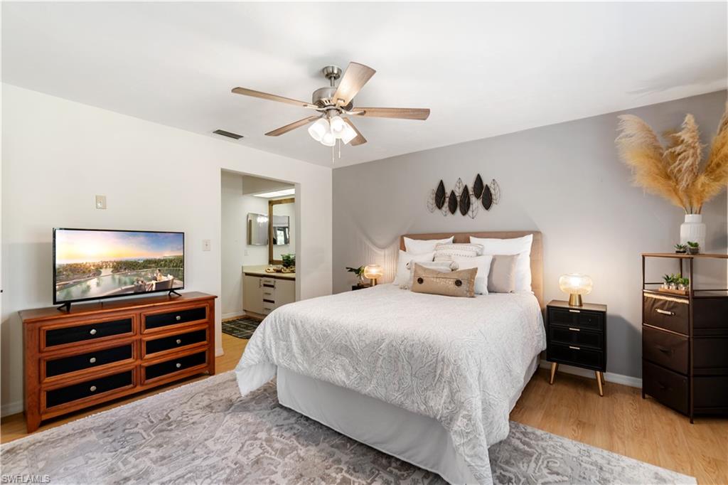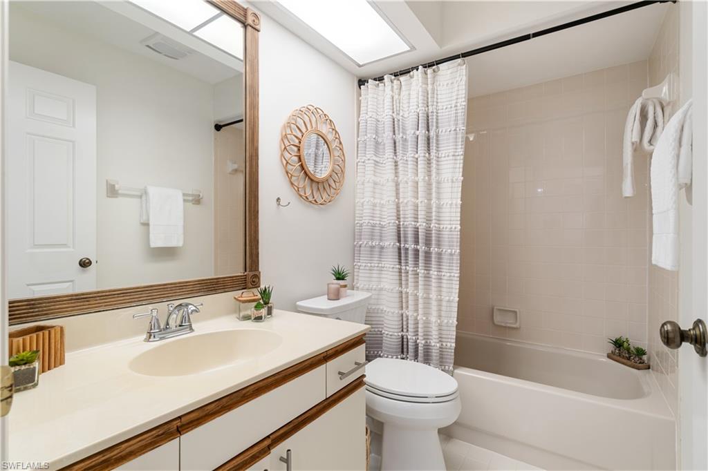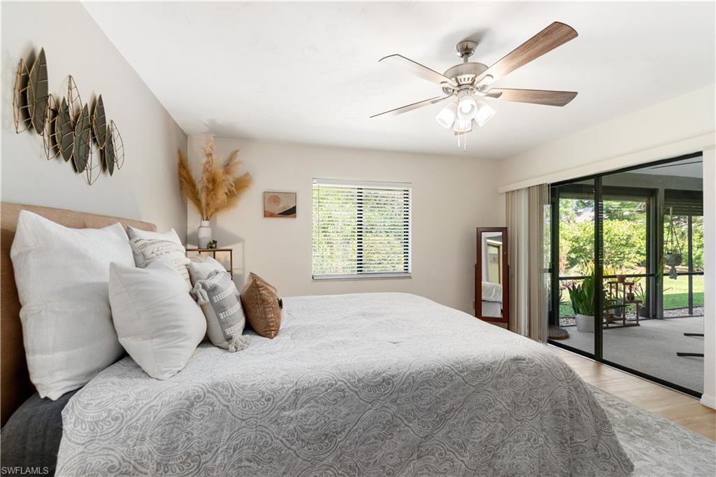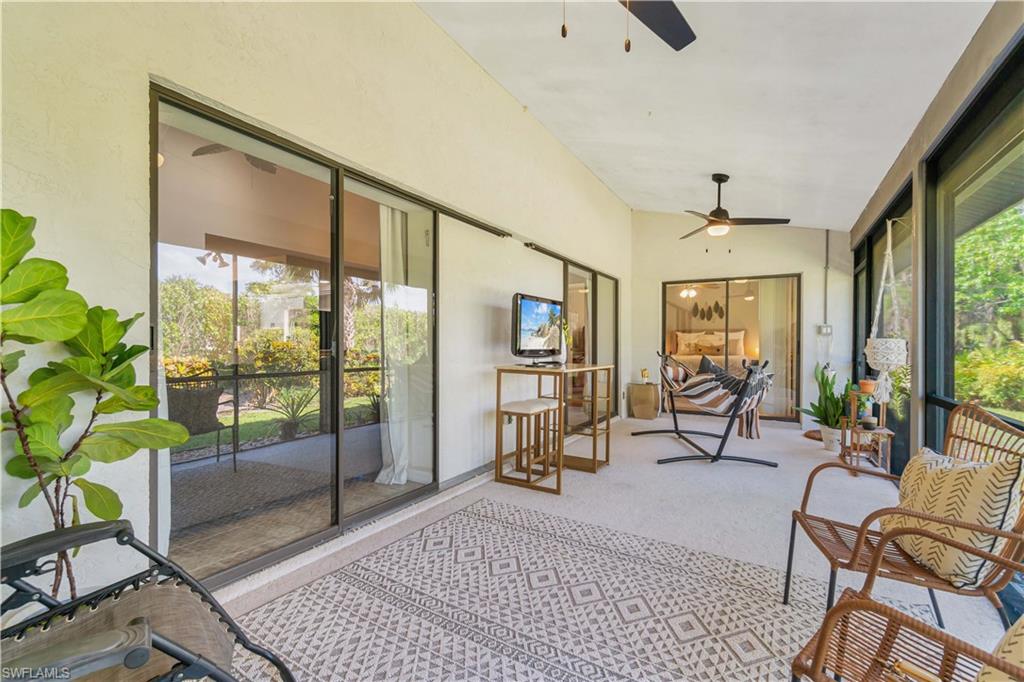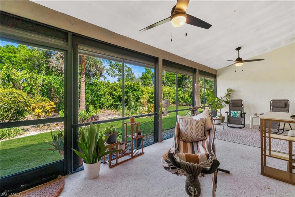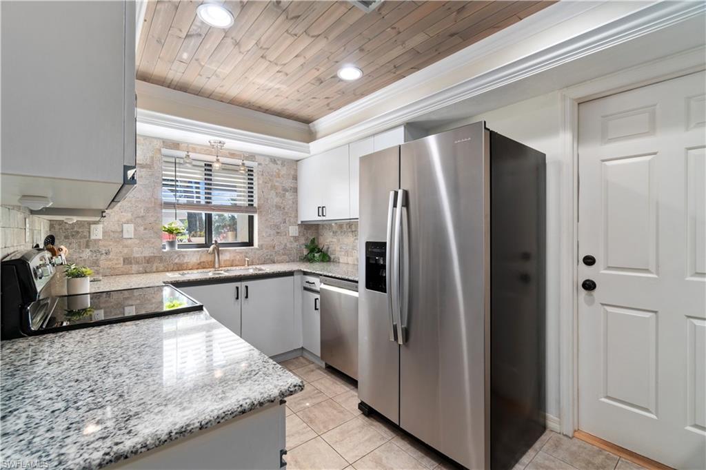 Welcome home to an enchanting residence nestled in the highly desirable community of Huntington Woods, located in the vibrant heart of Naples, Florida. This meticulously maintained end-unit villa with 2-bedroom, 2-bathroom home, complete with a dedicated oversized 2-car garage, effortlessly combines luxury, comfort, and functionality, making it ideal as a successful rental property or a delightful full-time or seasonal retreat. Upon entry, you’re instantly charmed by the thoughtfully designed open-concept floor plan, highlighted by soaring vaulted ceilings, sunlit skylights, and abundant windows that fill every room with natural light. The sophisticated living and dining spaces blend seamlessly, perfect for both relaxing and entertaining. The kitchen is a chef's delight, featuring polished granite countertops, modern stainless-steel appliances, custom cabinetry, and an exquisite wood-plank ceiling that brings warmth and elegance to the heart of the home. Unwind in the spacious primary suite, a tranquil retreat with stylish wood flooring, generous closet space, and a private en-suite bath boasting dual vanities, contemporary fixtures, and timeless finishes. The additional guest bedroom is thoughtfully appointed, ensuring privacy and comfort, accompanied by a beautifully upgraded guest bath, ideal for hosting family and friends. Step outside onto the expansive screened lanai and soak in the serene garden views, offering ample space for relaxation or entertaining. The lush, mature landscaping enhances the property’s picturesque curb appeal, setting the tone for your very own outdoor oasis. With tasteful updates throughout, this home is truly move-in ready, awaiting only your personal touches AND MOST of the FURNISHINGS ARE NEGOTIABLE. Perfectly positioned in an inviting community renowned for its charm, tranquility, and central location, you’ll enjoy proximity to Naples' pristine beaches, upscale shopping, fine dining, and numerous cultural attractions. It's also just a few minutes from Bayshore Arts district / close proximity to downtown Naples.