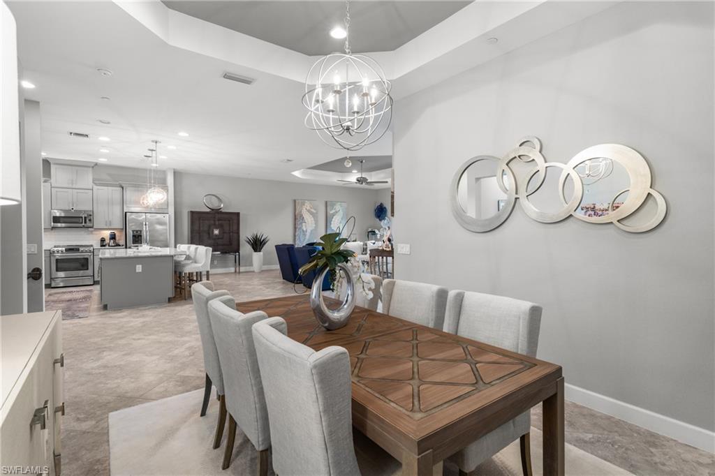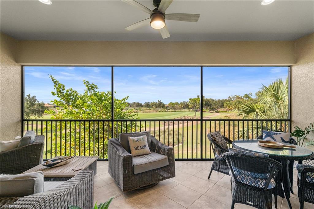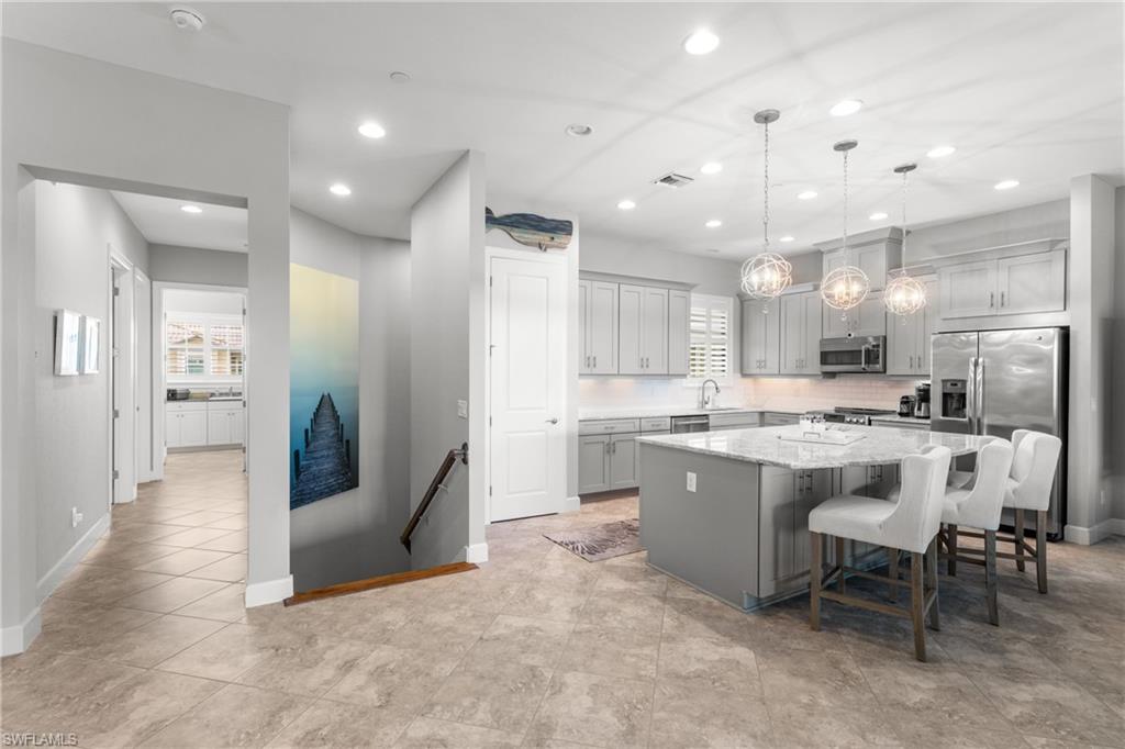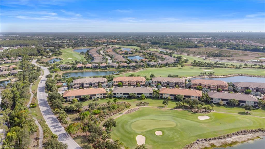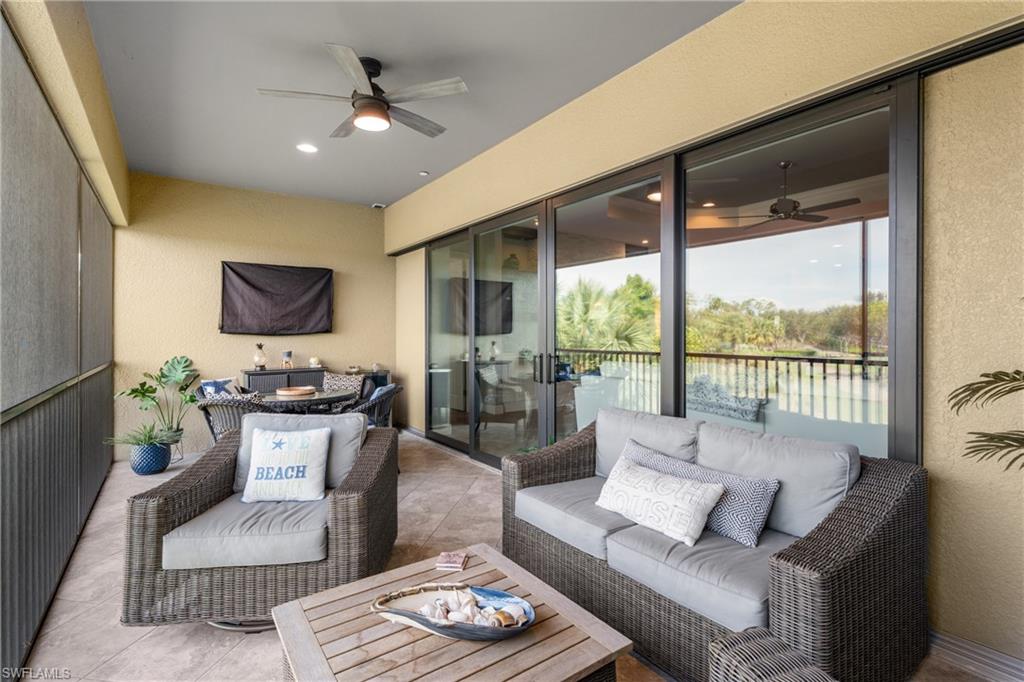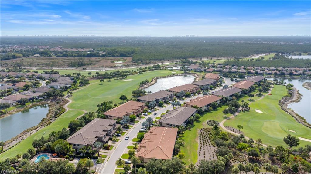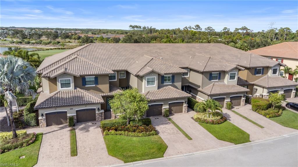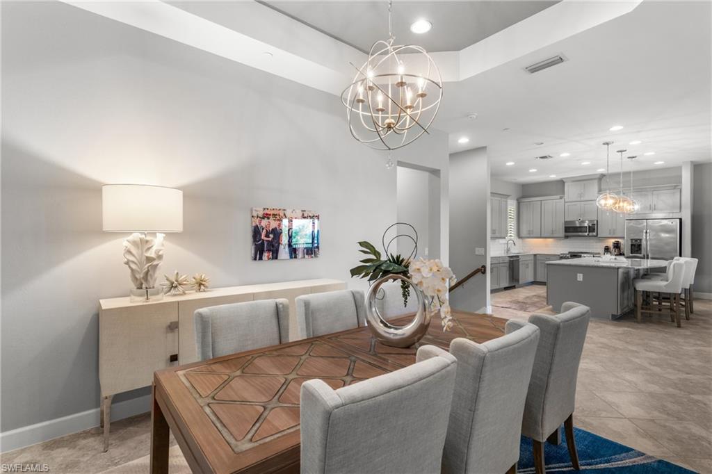 This beautifully appointed ‘Bellisimo’ second-floor coach home in Esplanade Golf & Country Club offers 2,343 square feet of elegant living space, featuring 3 bedrooms, 2.5 bathrooms, and a FULL GOLF MEMBERSHIP included. Partially furnished and thoughtfully upgraded, it seamlessly combines elegance, comfort, and scenic charm with expansive views of the tranquil lake and 8th green from the spacious 23-by-10-foot lanai that includes tile flooring. Inside, the open-concept great room makes a striking impression with a custom stone ‘feature wall’ showcasing a sleek LED fireplace, built-in cabinetry, and modern shelving—creating a cozy yet sophisticated ambiance. Crown molding and tray ceilings add refined architectural detail, while stylish diagonal tile flooring extends throughout the main living areas. At the heart of the home is the kitchen, designed to be both functional and beautiful. It features a large quartz-topped center island, stainless steel appliances, and abundant cabinetry, making it ideal for cooking and entertaining alike. Both guest bedrooms are versatile in use, with one offering convenient single Murphy beds to maximize space. Additional upgrades include luxury vinyl plank flooring in the bedrooms and staircase, no-see-um screens on the lanai, and high-impact hurricane windows/doors for enhanced safety and peace of mind. The HVAC system was replaced just 1.5 years ago, ensuring energy efficiency and modern reliability. Elegant lighting fixtures, premium finishes, and meticulous attention to detail throughout further elevate the home’s appeal. Many of the upgrades noted were added in the last 2-3 years. Entering Esplanade, you will notice why Esplanade Golf & CC was awarded this year's Outstanding Landscaping Award for the front entrance by the National Association of Landscape Professionals. As a resident of Esplanade, you'll enjoy an unmatched lifestyle with access to world-class amenities, including a championship golf course, state-of-the-art clubhouse, resort-style pool with food and beverage service, private cabanas, tennis and pickleball courts, walking and biking trails, a dog park, fitness center, full-service salon and spa, wellness center, tiki bar, and more. Ideally located in North Naples, Esplanade Golf & Country Club offers convenient access to I-75, the airport, top-rated restaurants, premier shopping, and the stunning beaches of the Gulf Coast. Known for its vibrant, active social scene, the community delivers the perfect blend of luxury, recreation, and lifestyle. Don’t miss the opportunity to make this exceptional home yours—and start living the Esplanade dream.