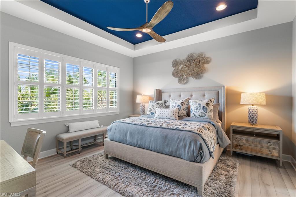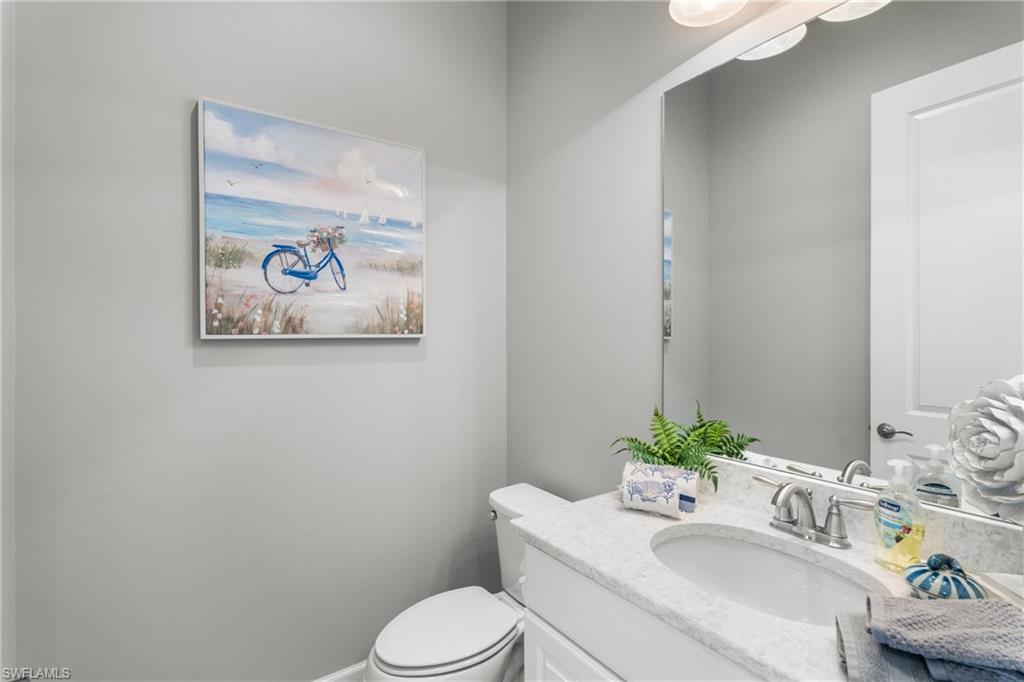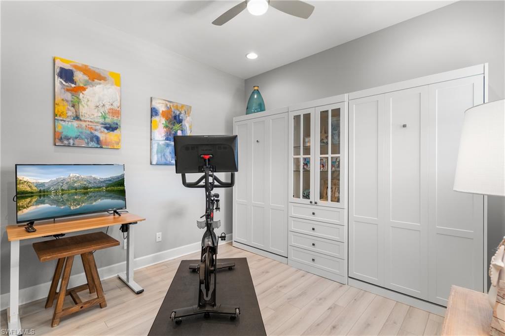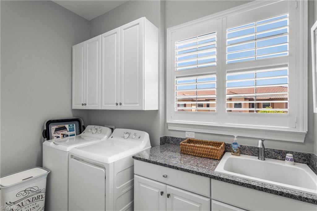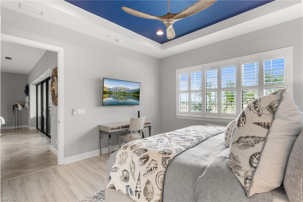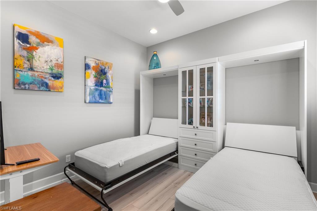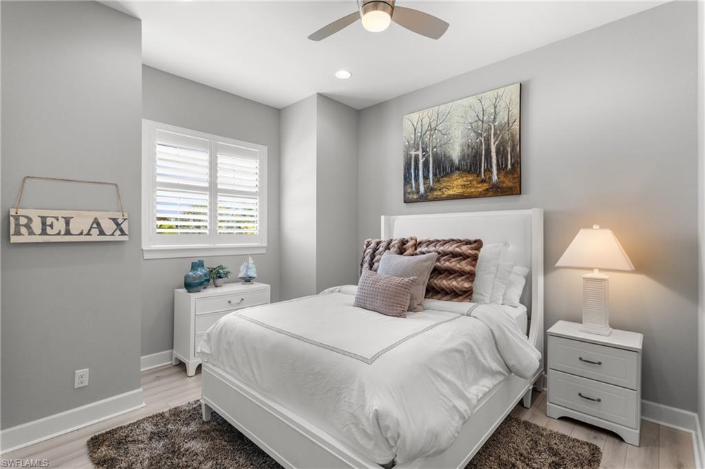 This beautifully appointed ‘Bellisimo’ second-floor coach home in Esplanade Golf & Country Club offers 2,343 square feet of elegant living space, featuring 3 bedrooms, 2.5 bathrooms, and a FULL GOLF MEMBERSHIP included. Partially furnished and thoughtfully upgraded, it seamlessly combines elegance, comfort, and scenic charm with expansive views of the tranquil lake and 8th green from the spacious 23-by-10-foot lanai that includes tile flooring. Inside, the open-concept great room makes a striking impression with a custom stone ‘feature wall’ showcasing a sleek LED fireplace, built-in cabinetry, and modern shelving—creating a cozy yet sophisticated ambiance. Crown molding and tray ceilings add refined architectural detail, while stylish diagonal tile flooring extends throughout the main living areas. At the heart of the home is the kitchen, designed to be both functional and beautiful. It features a large quartz-topped center island, stainless steel appliances, and abundant cabinetry, making it ideal for cooking and entertaining alike. Both guest bedrooms are versatile in use, with one offering convenient single Murphy beds to maximize space. Additional upgrades include luxury vinyl plank flooring in the bedrooms and staircase, no-see-um screens on the lanai, and high-impact hurricane windows/doors for enhanced safety and peace of mind. The HVAC system was replaced just 1.5 years ago, ensuring energy efficiency and modern reliability. Elegant lighting fixtures, premium finishes, and meticulous attention to detail throughout further elevate the home’s appeal. Many of the upgrades noted were added in the last 2-3 years. Entering Esplanade, you will notice why Esplanade Golf & CC was awarded this year's Outstanding Landscaping Award for the front entrance by the National Association of Landscape Professionals. As a resident of Esplanade, you'll enjoy an unmatched lifestyle with access to world-class amenities, including a championship golf course, state-of-the-art clubhouse, resort-style pool with food and beverage service, private cabanas, tennis and pickleball courts, walking and biking trails, a dog park, fitness center, full-service salon and spa, wellness center, tiki bar, and more. Ideally located in North Naples, Esplanade Golf & Country Club offers convenient access to I-75, the airport, top-rated restaurants, premier shopping, and the stunning beaches of the Gulf Coast. Known for its vibrant, active social scene, the community delivers the perfect blend of luxury, recreation, and lifestyle. Don’t miss the opportunity to make this exceptional home yours—and start living the Esplanade dream.