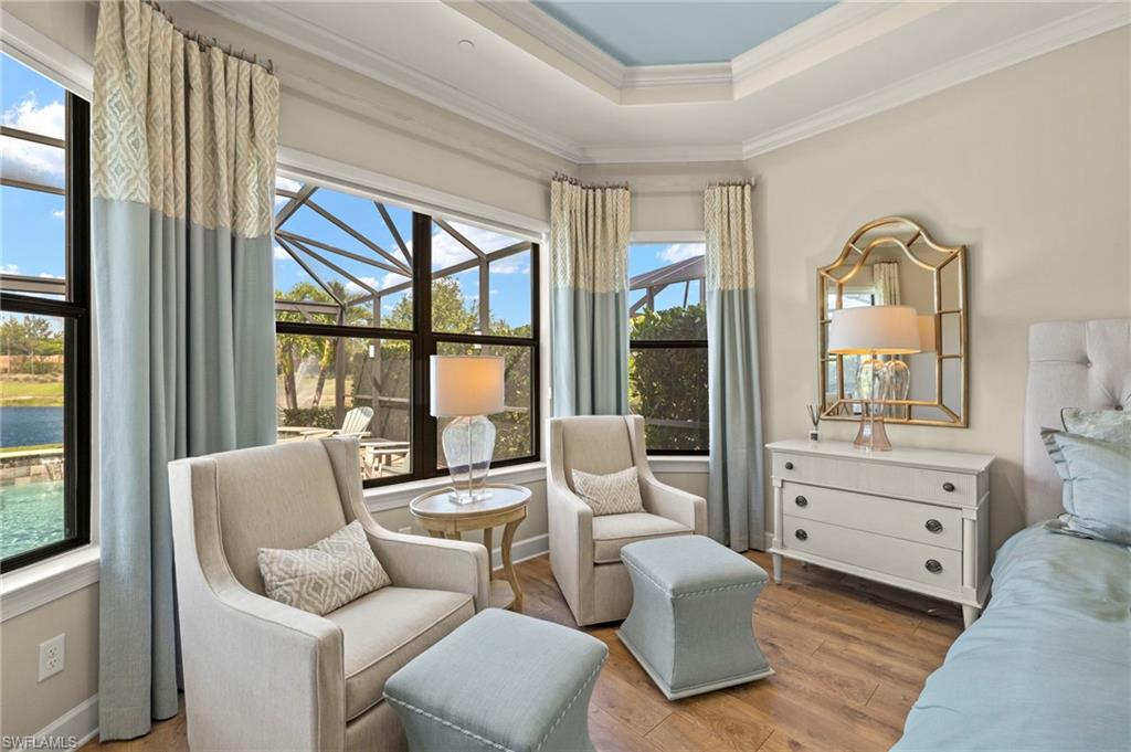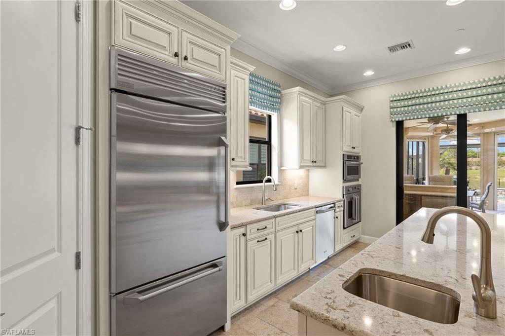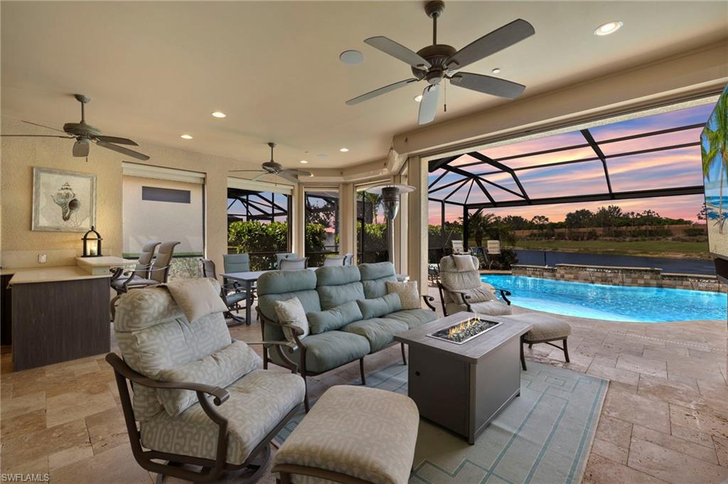 INCREDIBLE PEBBLE POINTE!! With its Grande design, breathtaking outdoor space, upscale finishes, large custom pool and spa, HUGE COVERED OUTDOOR LANAI and glistening lake view, this home in PEBBLE is truly INCREDIBLE!! Features of this beautiful home include spacious open floor plan, travertine floors in all main areas with LVP "wood look" floors in the bedrooms (no carpet), magical "DREAM KITCHEN" with built in Monogram appliances, gas stove, wine fridge, pantry, custom creme cabinets with pullouts, pot filler, 2 sinks and beautiful marble tile backsplash with over range accent mosaic; ample recessed lighting throughout, tray ceilings, huge master suite with Bay Window and HUGE CUSTOM WALK-IN-CLOSET THE SIZE OF A BEDROOM with built-ins, large master en-suite bathroom with 2 sinks and roomy walk-in shower, super spacious guest bedrooms (one oversized with a bay window), gorgeous guest baths (one with a tub), large den/office, custom window treatments, crown Moulding and more! Additional features include IMPACT WINDOW AND DOORS, WHOLE HOUSE GENERATOR, HARD TO FIND no-spared-expense pool area boasting the largest covered outdoor space in Pebble Pointe, CHEF WORTHY OUTDOOR KITCHEN, huge pool and spa with waterfalls, gas pool and spa heater, auto-fill, color changing LED lighting, large sun shelf, PICTURE WINDOW POOL CAGE, Travertine pool deck, lake view with fountain, tropical landscaping with lighting, Electric Hurricane Shutters on the Lanai, custom sun screens on the lanai, Epoxy Garage Floor, tankless water heater and so much more!! This home is perfectly located in The Brooks, close to the area's best shopping, Coconut Point Mall, Miromar Outlets, Hertz Event Arena, the best white sand beaches, dining, entertainment and all that SW Florida has to offer!! Pebble Pointe is an incredibly LOW HOA FEE community that includes lawn/landscaping maintenance, security gate, community gazebo and fiber optic internet! NO CDD. Call for a private showing today!!