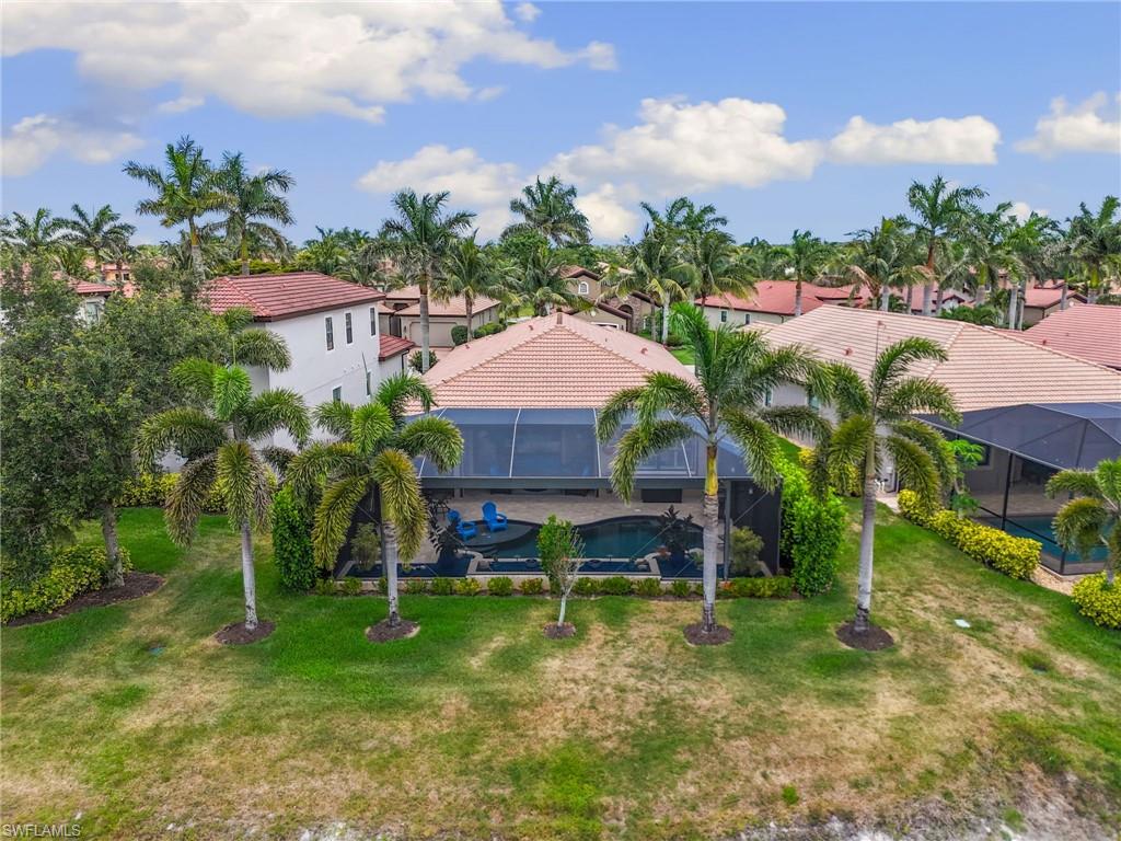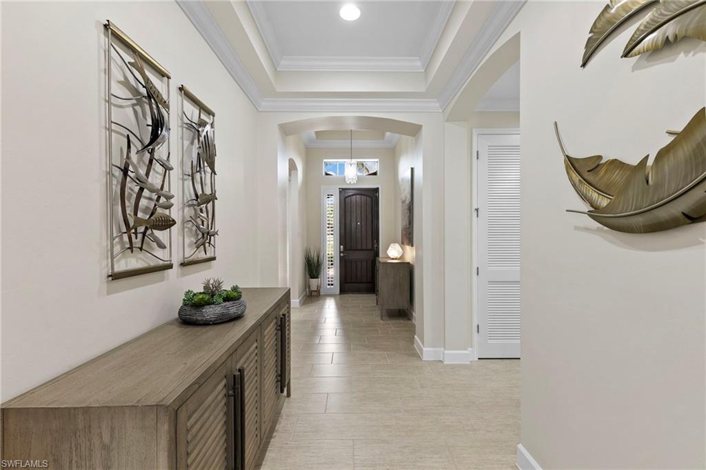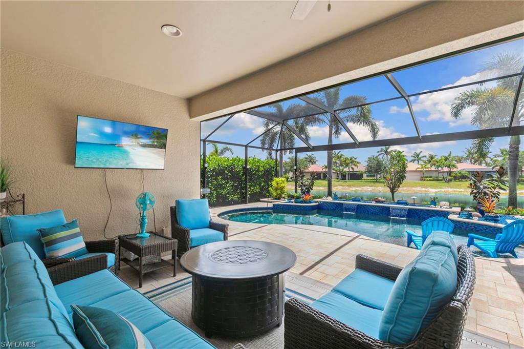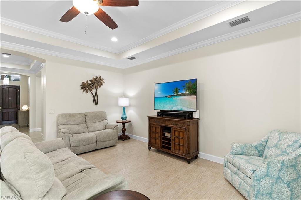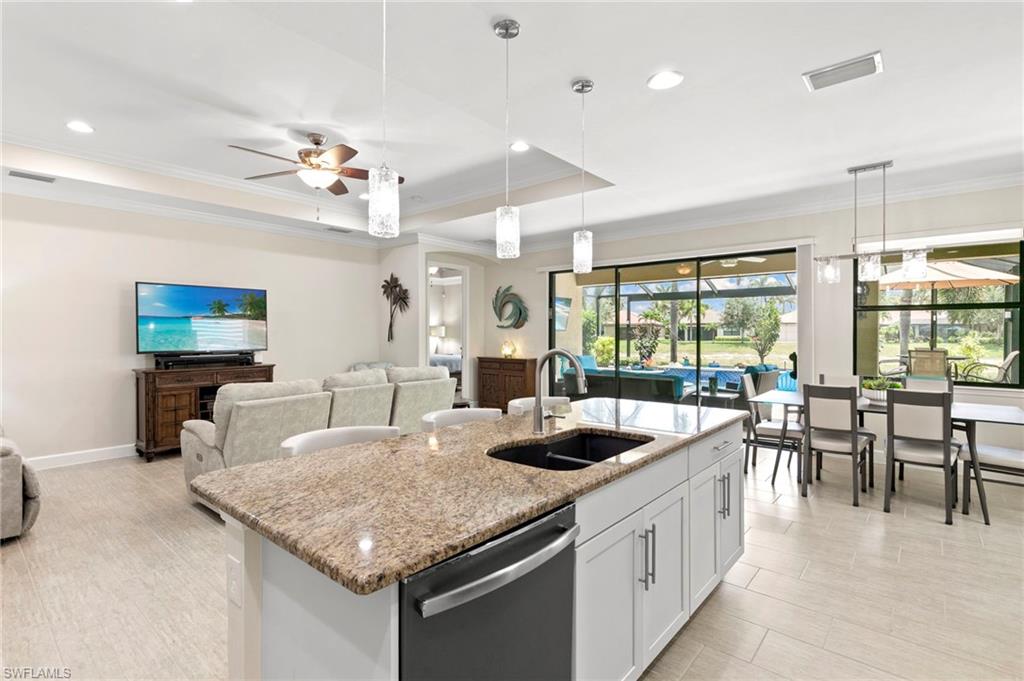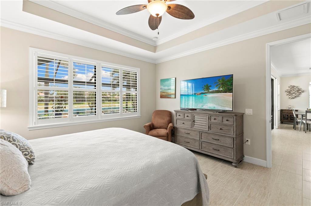 Rarely Available Edison Model with Lake Views & Custom Pool! Offered furnished and ready to enjoy, this beautiful 3BR + Den / 2BA home in the gated community of Paloma—features a custom heated saltwater pool with sun shelf, lighting, panoramic enclosure w/new screening, and overlooking the lake. This open-concept home offers split bedrooms, tile throughout, and hurricane protection with electric roll-down and accordion shutters. Interior highlights include: spacious kitchen w/granite countertops, 42” white cabinets, large island, & newer slate-finish appliances, tray ceilings, crown molding, plantation shutters, custom lighting/fans, extra closet shelving, owner’s suite w/dual sinks, walk-in shower & soaking tub, finished laundry room w/utility sink, recent interior/exterior paint, and extended garage for added storage. Low-maintenance living with HOA just $318/month, covering lawn care and access to resort-style amenities: pool, renovated clubhouse, fitness center, tennis & bocce courts. No CDD! Excellent location west of I-75—just minutes to Bonita/Naples beaches, RSW airport, Coconut Point, Miromar Outlets, and Mercato. Florida lifestyle at its best—perfect for seasonal or year-round living. Video tour available – schedule your private showing today!
