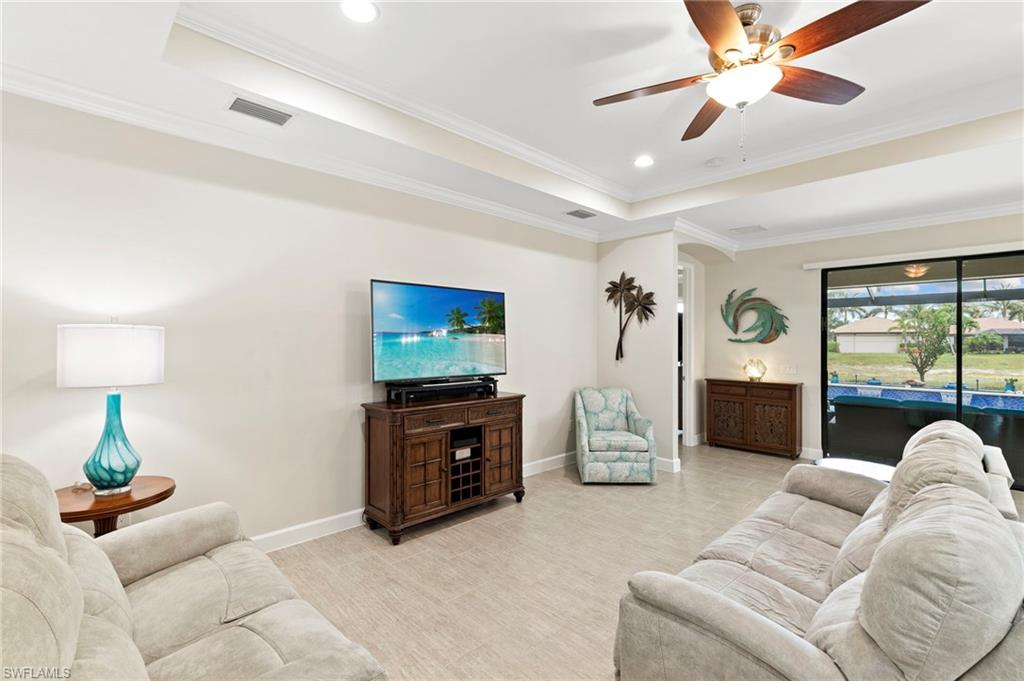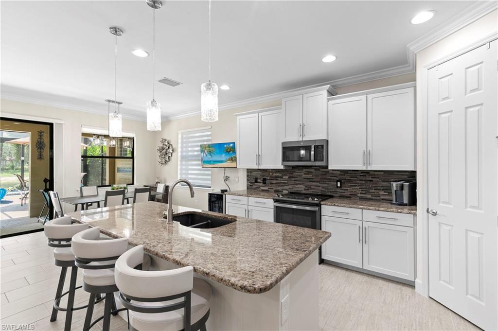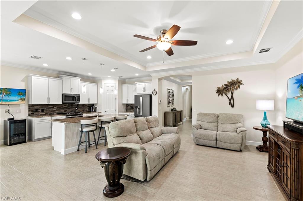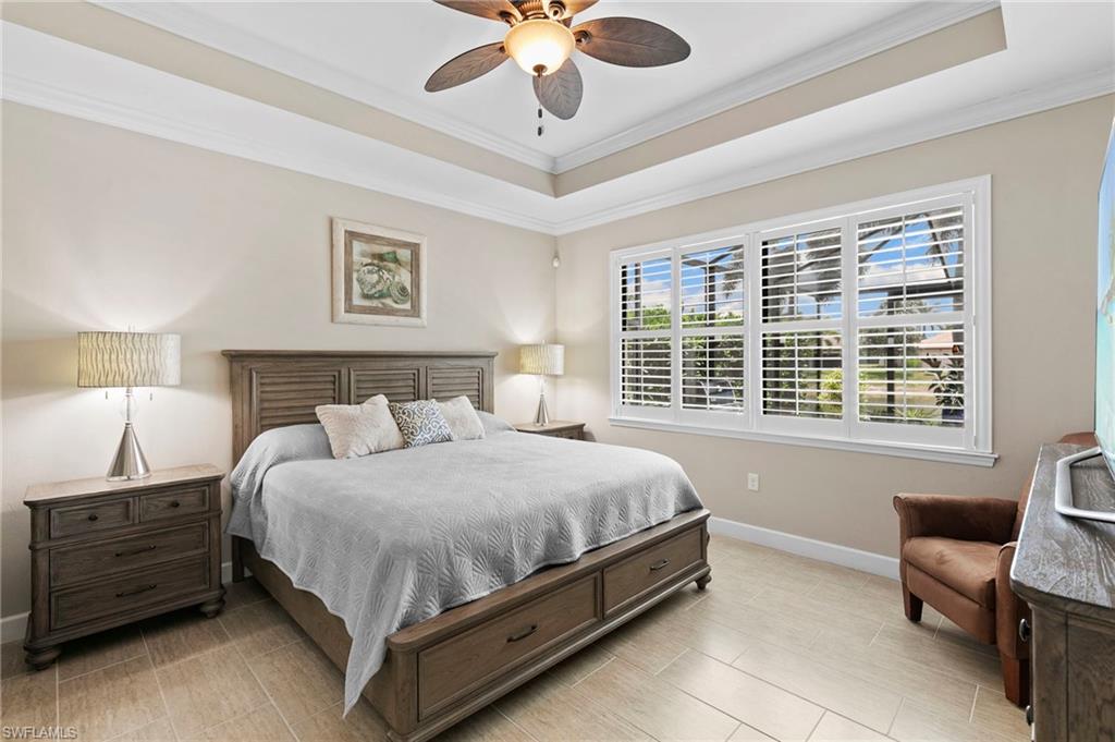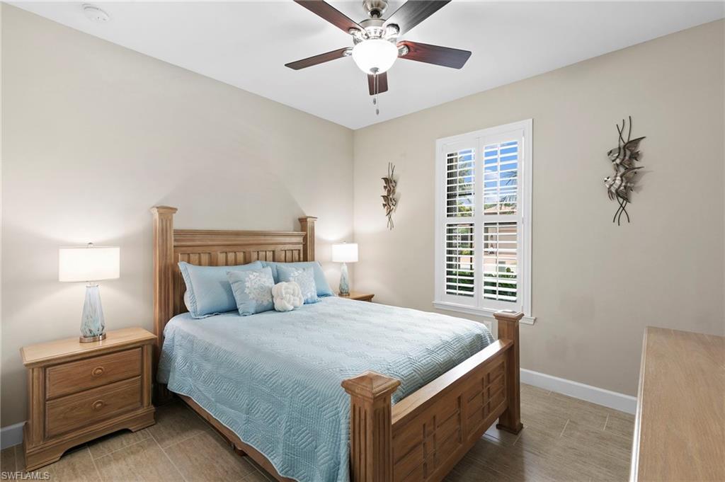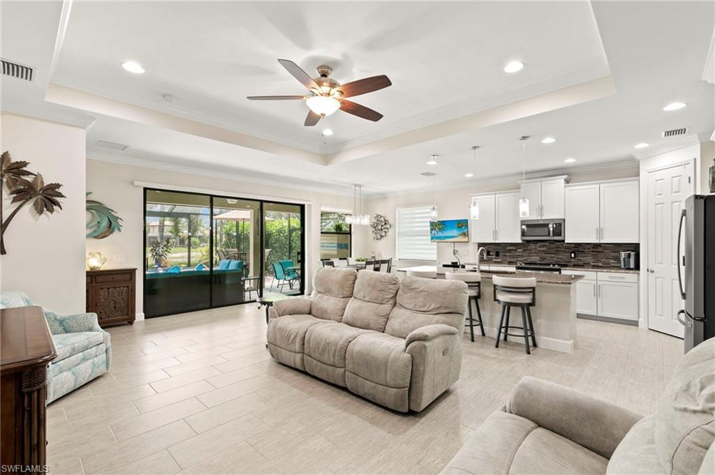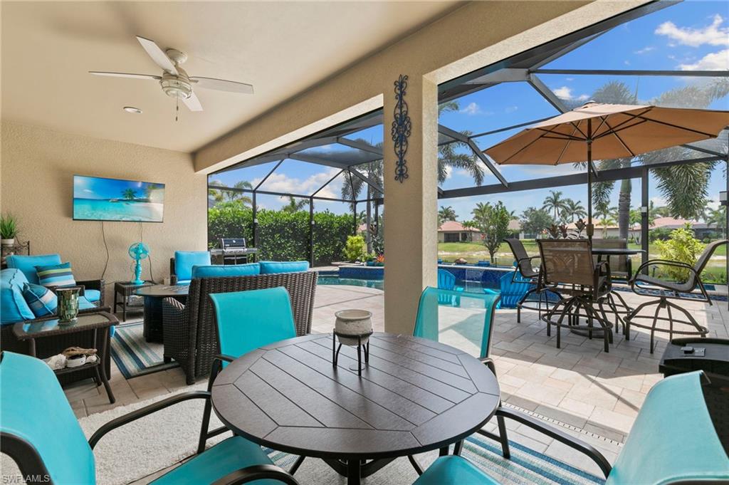 Rarely Available Edison Model with Lake Views & Custom Pool! Offered furnished and ready to enjoy, this beautiful 3BR + Den / 2BA home in the gated community of Paloma—features a custom heated saltwater pool with sun shelf, lighting, panoramic enclosure w/new screening, and overlooking the lake. This open-concept home offers split bedrooms, tile throughout, and hurricane protection with electric roll-down and accordion shutters. Interior highlights include: spacious kitchen w/granite countertops, 42” white cabinets, large island, & newer slate-finish appliances, tray ceilings, crown molding, plantation shutters, custom lighting/fans, extra closet shelving, owner’s suite w/dual sinks, walk-in shower & soaking tub, finished laundry room w/utility sink, recent interior/exterior paint, and extended garage for added storage. Low-maintenance living with HOA just $318/month, covering lawn care and access to resort-style amenities: pool, renovated clubhouse, fitness center, tennis & bocce courts. No CDD! Excellent location west of I-75—just minutes to Bonita/Naples beaches, RSW airport, Coconut Point, Miromar Outlets, and Mercato. Florida lifestyle at its best—perfect for seasonal or year-round living. Video tour available – schedule your private showing today!