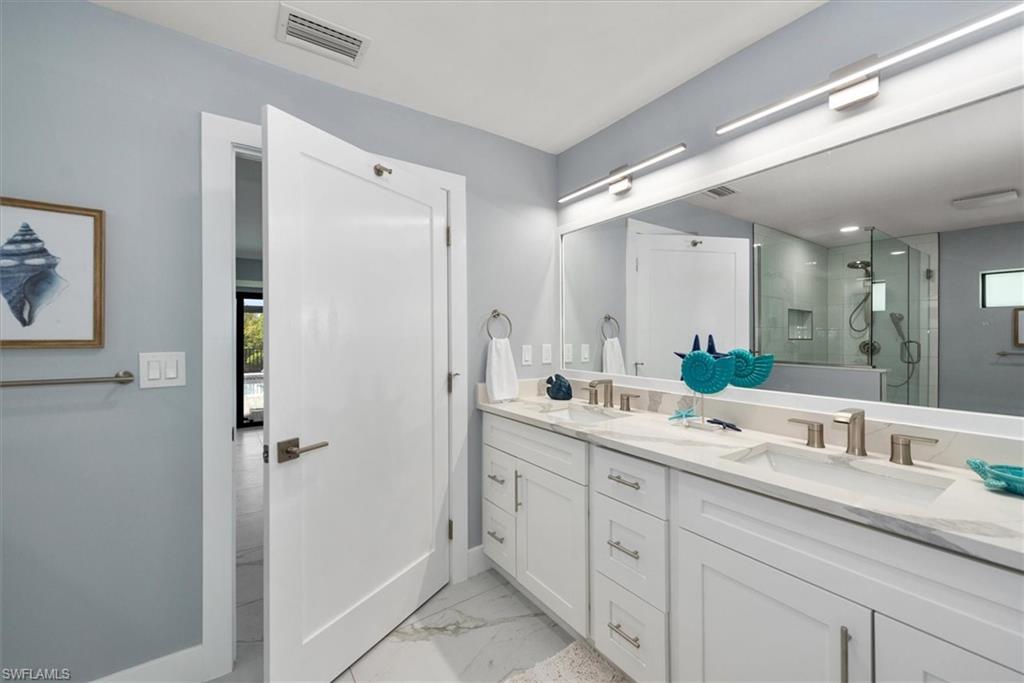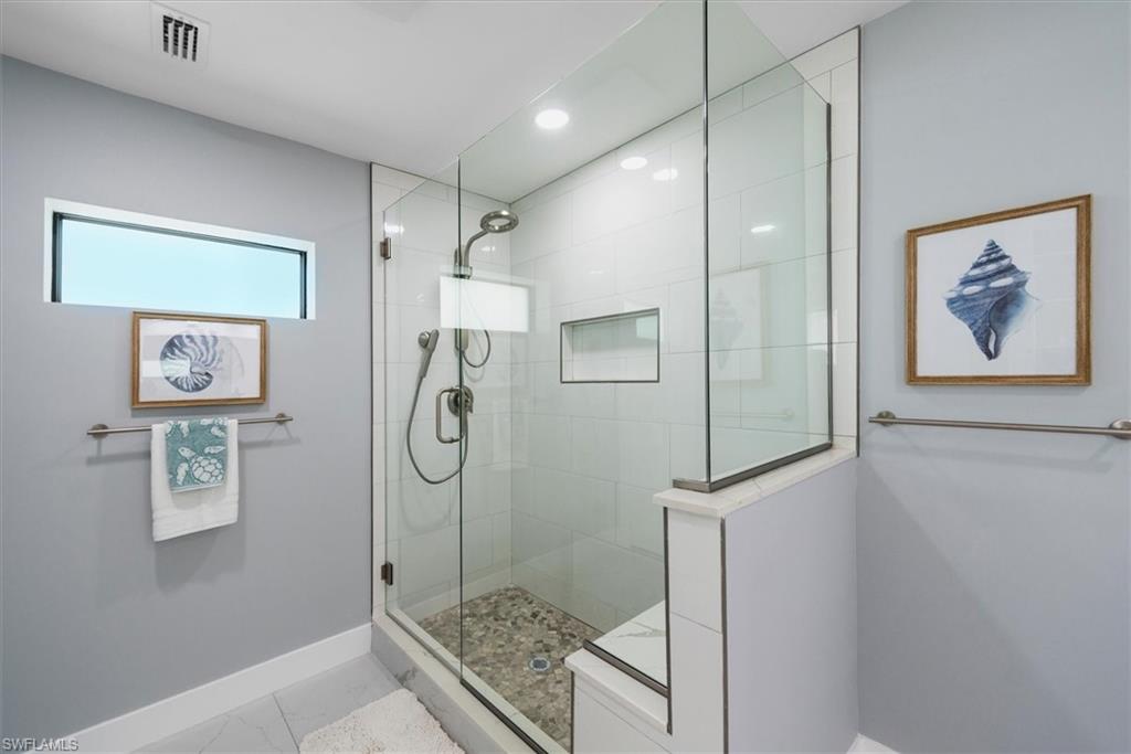 SELLER SAID GET IT SOLD WITH THIS LARGE PRICE REDUCTION! Only 3 houses from Estero Bay, this 4/3/2 turnkey direct Gulf access pool home has been meticulously remodeled inside and out. The interior of the home features the desired split floor plan, modern marble tile throughout, neutral contemporary finishings and an open floor plan. Solid wood white cabinetry, stainless appliances and Island range hood, stunning quartz counters and a large Island begin the list of kitchen attributes. The primary bedroom boasts a large custom closet and ensuite bathroom with dual sinks and custom tiled walk-in shower. With 3 additional bedrooms and 2 guest bathrooms, there is plenty of room for your family and friends. The covered lanai and pool area not only has a large under truss seating area but ample seating under the sun as well, where you can watch the manatee, dolphin and wildlife through the picture window pool cage. Park your boat on your private dock and lift only steps away to enjoy fishing, boating and exploring all of SW Florida. This residence is perfect for boater enthusiasts and Beach lovers alike!