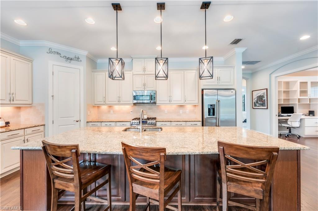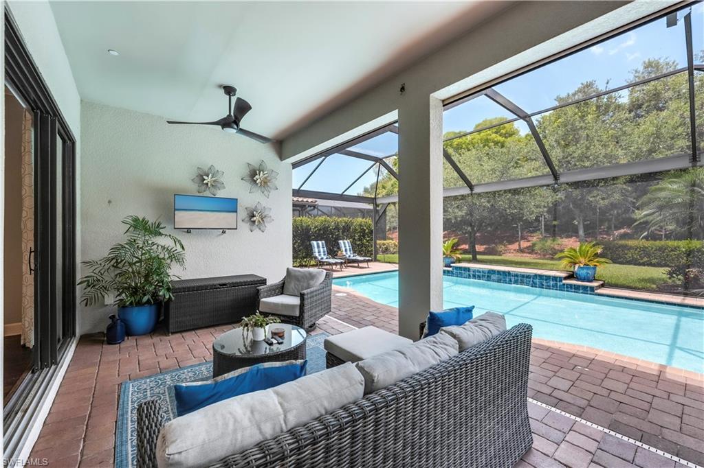 Location, Location, Location—and a Home That Checks All the Boxes! Plus FURNITURE IS NEGOTIABLE FOR A SEAMLESS MOVING EXPERIENCE! Tucked away in the private, gated community of Pebble Pointe at The Brooks, this beautifully upgraded home offers the perfect blend of luxury, privacy, and peace of mind—all in one of Estero’s most sought-after locations. Just minutes from Coconut Point Mall, Miromar Outlets, Publix, and Barefoot Beach, you’ll enjoy the best of Southwest Florida right at your fingertips. This 2-bedroom + den, 2-bathroom home truly checks all the boxes: Heated private POOL, Custom OUTDOOR KITCHEN, Natural gas cooktop stove, Whole-house GENERATOR, IMPACT WINDOWS (front), Storm Smart LANAI SCREENS, 2-3 YEAR HOME WARRANTY, AND Low HOA dues with no CDD fees! Step inside and you’ll find an open, light-filled layout with luxury vinyl plank flooring, new carpet in the bedrooms, crown molding, plantation shutters, and custom window treatments. The chef’s kitchen features granite countertops, a gas cooktop, wine fridge, and a large island with storage on all sides. The spacious primary suite offers dual walk-in closets, separate vanities, and a walk-in shower. The guest bedroom and bath are ideally placed at the front of the home, while the flexible den with built-in desks makes a perfect home office or third sleeping area. Outside, enjoy the picture-frame lanai screen overlooking a peaceful landscaped setting with no rear neighbors. The epoxy-coated garage adds even more convenience with overhead storage and room for beach gear or bikes. Pebble Pointe is a pet-friendly, low-maintenance community offering a dog park, gazebo, fiber internet, and gated access—all with no CDD fees or hefty flood insurance premiums. If you’re searching for a home that has it all in the heart of Estero, this is it. Schedule your private showing today and discover why this home is the total package!