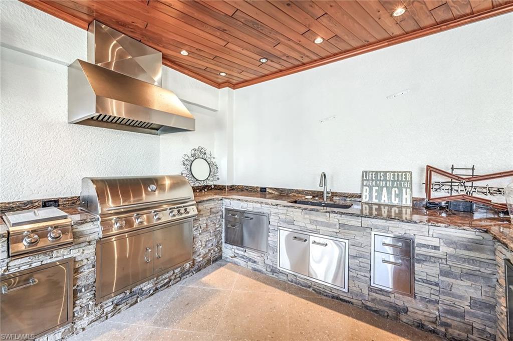 Welcome to a rare offering in the prestigious, guard-gated enclave of Barefoot Beach—where luxury living meets effortless coastal elegance. This charming waterfront estate in Southport captures the essence of refined Florida living, with direct Gulf access and timeless design details throughout. Step through a dramatic two-story grand foyer into light-filled interiors that blend coastal charm with modern sophistication. The chef’s kitchen is a culinary masterpiece, featuring premium appliances, custom cabinetry, and seamless flow into a spacious family room designed for elevated entertaining. Host elegant dinners in the formal dining room or enjoy casual gatherings in the expansive outdoor living area. Outdoors, indulge in resort-style living with a private pool and elevated spa, fully equipped outdoor kitchen with built-in BBQ, granite countertops, wine cooler, and big screen TV—all set against sweeping views of the bay. Your private boat dock with lift makes it easy to explore the Gulf in style. Inside, unwind in the formal living room by the fireplace, retreat to the reading room or executive office, or entertain in the game room designed for leisure and luxury. With four bedrooms and beautifully appointed baths, this home offers the perfect blend of comfort and privacy. Newly landscaped grounds enhance the home’s curb appeal, while the proximity to world-renowned Barefoot Beach ensures the ultimate in beachfront living. Ideally situated between Naples and Fort Myers, residents enjoy immediate access to fine dining, upscale shopping, and top-tier medical facilities. This is more than a home—it’s a lifestyle. Discover unparalleled waterfront elegance in one of Southwest Florida’s most exclusive communities.