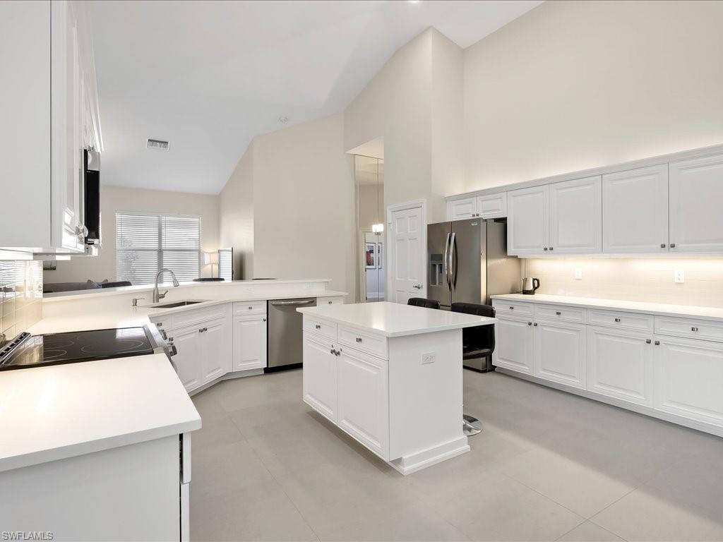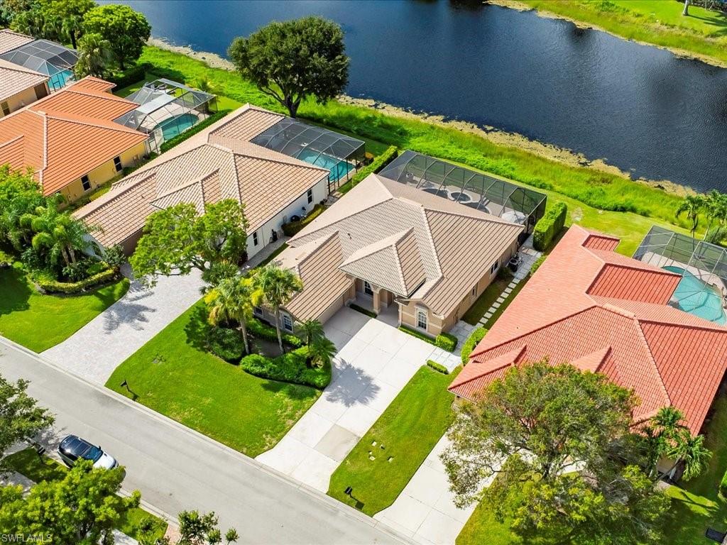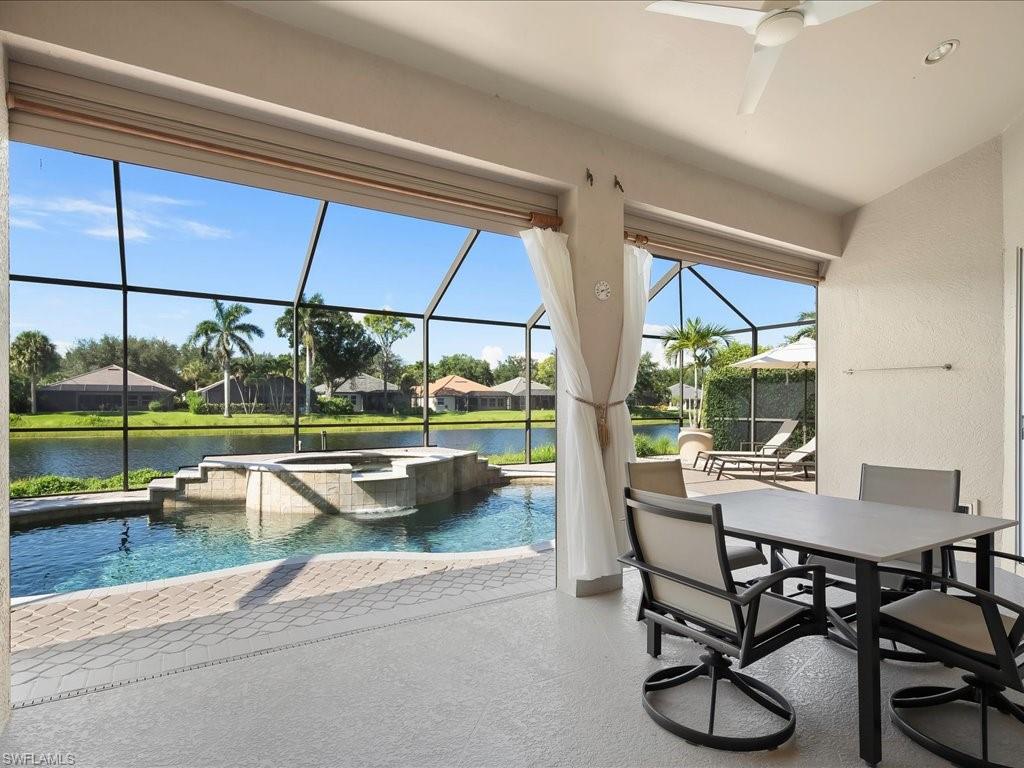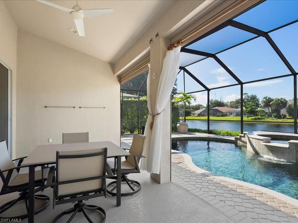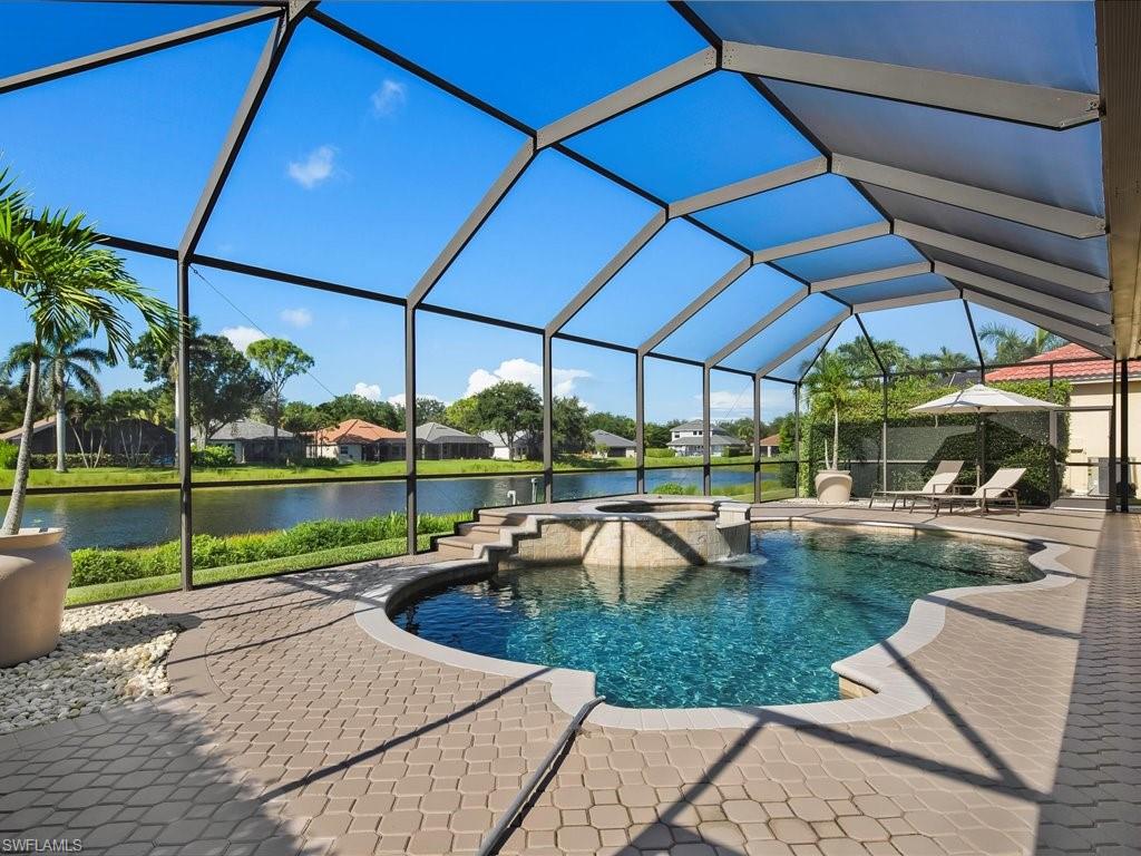 **REDUCED!!** Elegant Lakefront Retreat w/ NEW ROOF! Welcome to an exceptional opportunity to own a beautifully designed lakefront estate in Autumn Woods, one of Naples' most desirable and established gated communities in the heart of Naples, FL. This 4 Bedroom (or 3+Den), 2 Bathroom residence offers over 2,400 sf of under air living space, featuring an open and inviting layout, and breathtaking southern-facing lake views that capture the essence of Florida living. The open-concept floor plan with tall volume ceilings, flows effortlessly from the casual dining area, through the chef’s kitchen with center island, to the large and spacious family room, creating the perfect environment for both relaxed living and elegant entertaining. The kitchen is thoughtfully equipped with quartz countertops, stainless steel appliances, more than ample cabinetry, and a convenient breakfast bar, making it as functional as it is stylish. Just off the main living area, a den with closet (could be used as 4th bedroom if necessary) offers a quiet and flexible space for a home office, media room, or guest quarters. The master suite is a true private retreat, featuring two oversized walk-in closets and a luxurious en-suite bath complete with dual vanities, a soaking tub, and a separate walk-in shower. Two additional guest bedrooms are tucked away on the opposite side of the home, providing privacy and comfort for family and visitors alike. A full guest bathroom, separate laundry room, and spacious two-car side-entry garage complete the home's thoughtful layout. Step outside to the screened lanai from the family room or kitchen, and embrace the outdoor lifestyle Florida is known for, where your private pool with elevated spa awaits—offering the perfect spot to unwind while taking in the tranquil, sun-drenched lake views. The expansive brick paver deck offers multiple areas for lounging and dining, surrounded by lush tropical landscaping and commanding views of the glistening lake. Whether you’re enjoying a morning coffee by the pool or hosting evening cocktails at sunset, the setting is nothing short of idyllic. Electric hurricane shutters protect most of the doors/windows around the home, and manual shutters for the rest, for added protection and peace of mind as well. Autumn Woods is known for its mature landscaping, tranquil lakes, and ideal central location. Residents enjoy access to a recently renovated clubhouse, fitness center, community pool, tennis courts, playground, and scenic walking trails. Located just minutes from Naples' world-class beaches, Mercato, Waterside Shops, and Fifth Avenue, as well as top-rated public and private schools (there is even a private sidewalk leading from Autumn Woods right to Pine Ridge Middle School), this home offers a rare blend of luxury, convenience, and community. This is more than just a home—it’s a lifestyle. Don’t miss your chance to own this exceptional property in one of Naples’ most cherished neighborhoods.