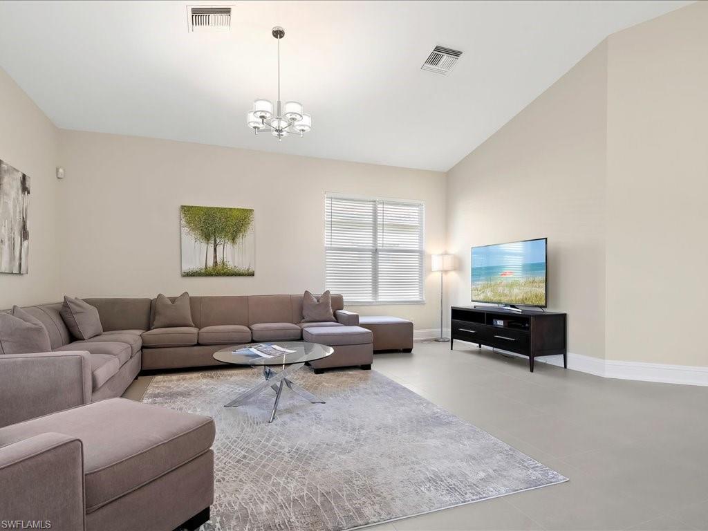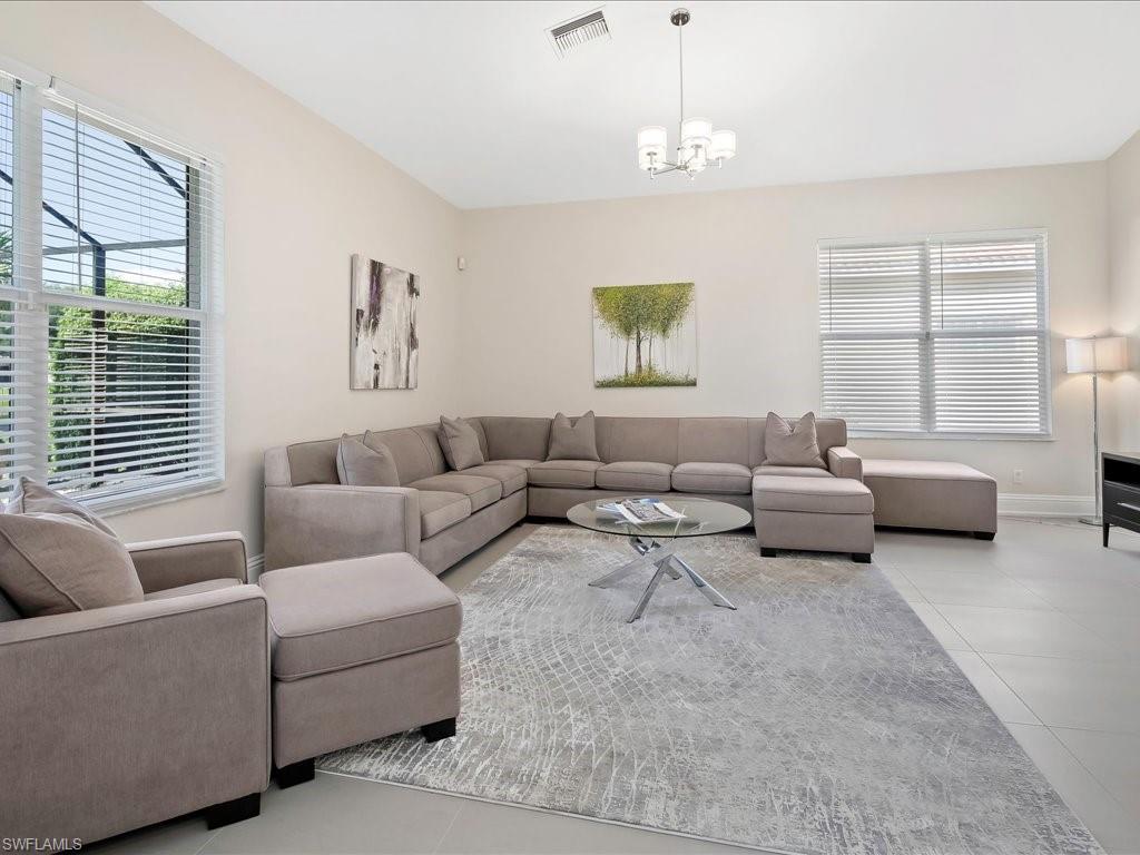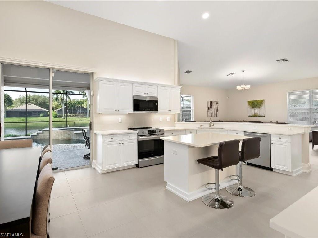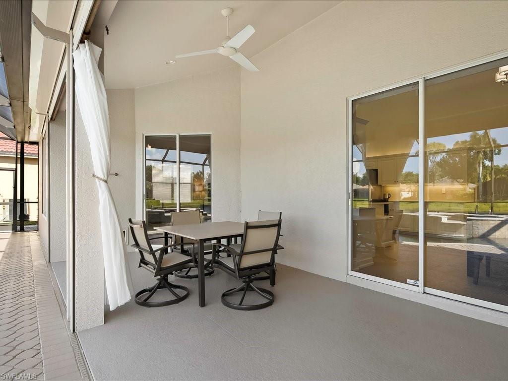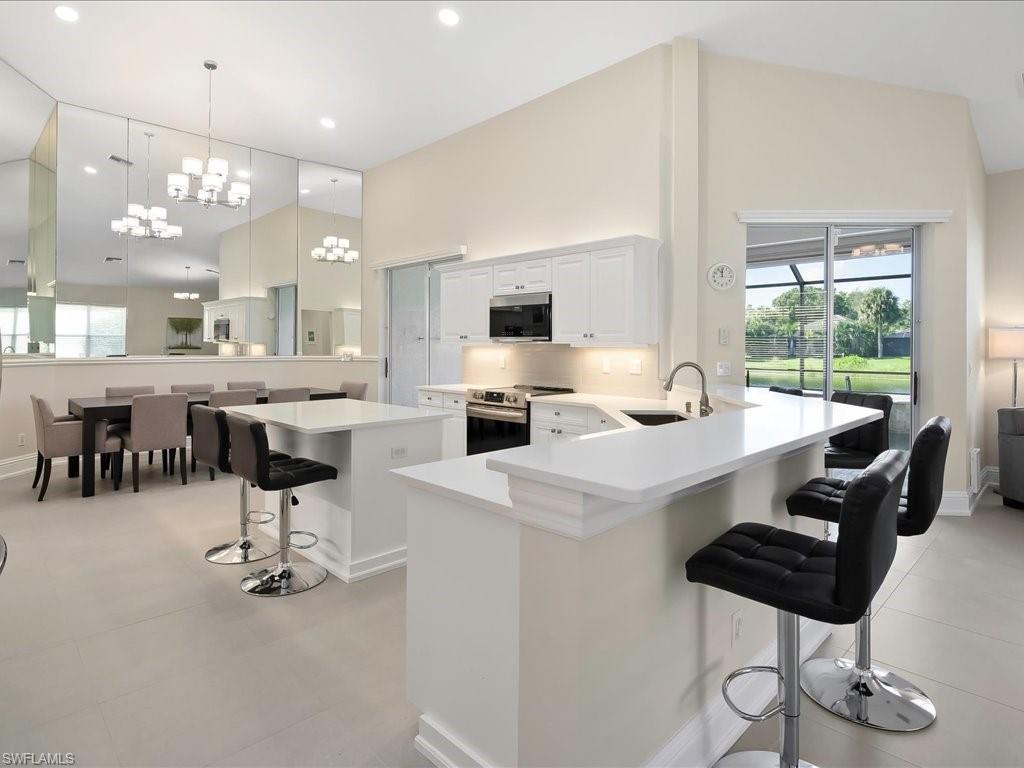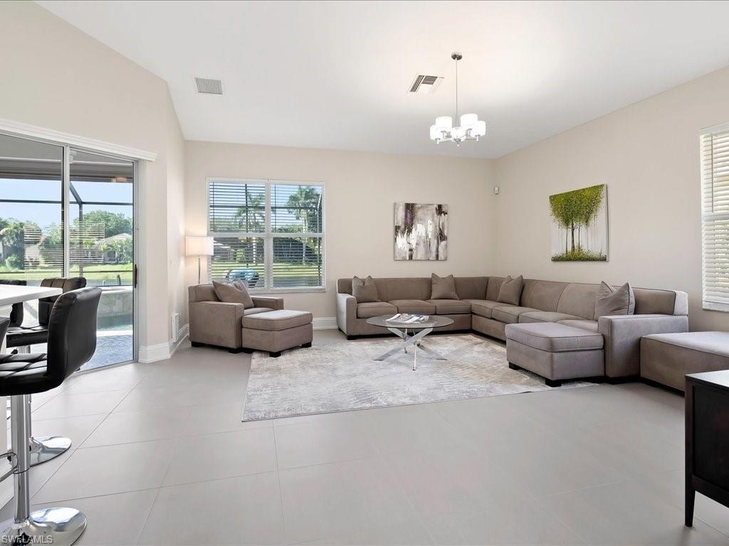 **REDUCED!!** Elegant Lakefront Retreat w/ NEW ROOF! Welcome to an exceptional opportunity to own a beautifully designed lakefront estate in Autumn Woods, one of Naples' most desirable and established gated communities in the heart of Naples, FL. This 4 Bedroom (or 3+Den), 2 Bathroom residence offers over 2,400 sf of under air living space, featuring an open and inviting layout, and breathtaking southern-facing lake views that capture the essence of Florida living. The open-concept floor plan with tall volume ceilings, flows effortlessly from the casual dining area, through the chef’s kitchen with center island, to the large and spacious family room, creating the perfect environment for both relaxed living and elegant entertaining. The kitchen is thoughtfully equipped with quartz countertops, stainless steel appliances, more than ample cabinetry, and a convenient breakfast bar, making it as functional as it is stylish. Just off the main living area, a den with closet (could be used as 4th bedroom if necessary) offers a quiet and flexible space for a home office, media room, or guest quarters. The master suite is a true private retreat, featuring two oversized walk-in closets and a luxurious en-suite bath complete with dual vanities, a soaking tub, and a separate walk-in shower. Two additional guest bedrooms are tucked away on the opposite side of the home, providing privacy and comfort for family and visitors alike. A full guest bathroom, separate laundry room, and spacious two-car side-entry garage complete the home's thoughtful layout. Step outside to the screened lanai from the family room or kitchen, and embrace the outdoor lifestyle Florida is known for, where your private pool with elevated spa awaits—offering the perfect spot to unwind while taking in the tranquil, sun-drenched lake views. The expansive brick paver deck offers multiple areas for lounging and dining, surrounded by lush tropical landscaping and commanding views of the glistening lake. Whether you’re enjoying a morning coffee by the pool or hosting evening cocktails at sunset, the setting is nothing short of idyllic. Electric hurricane shutters protect most of the doors/windows around the home, and manual shutters for the rest, for added protection and peace of mind as well. Autumn Woods is known for its mature landscaping, tranquil lakes, and ideal central location. Residents enjoy access to a recently renovated clubhouse, fitness center, community pool, tennis courts, playground, and scenic walking trails. Located just minutes from Naples' world-class beaches, Mercato, Waterside Shops, and Fifth Avenue, as well as top-rated public and private schools (there is even a private sidewalk leading from Autumn Woods right to Pine Ridge Middle School), this home offers a rare blend of luxury, convenience, and community. This is more than just a home—it’s a lifestyle. Don’t miss your chance to own this exceptional property in one of Naples’ most cherished neighborhoods.