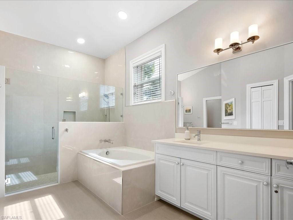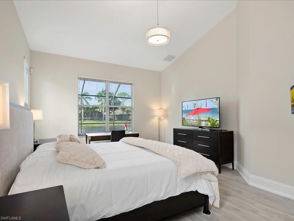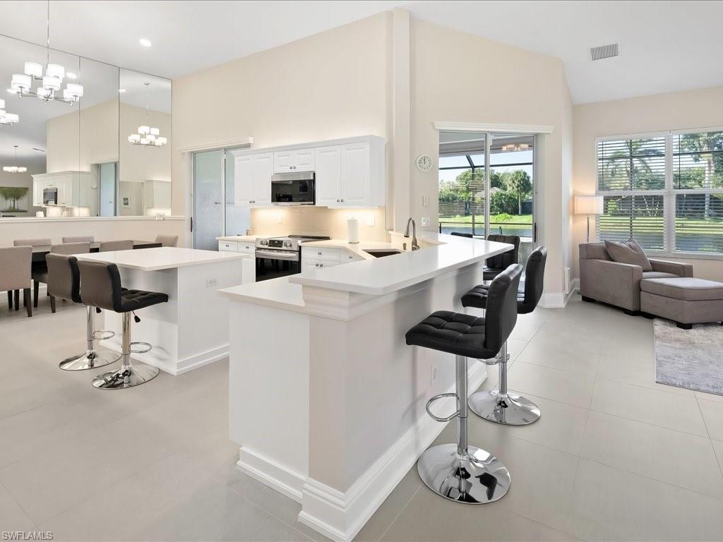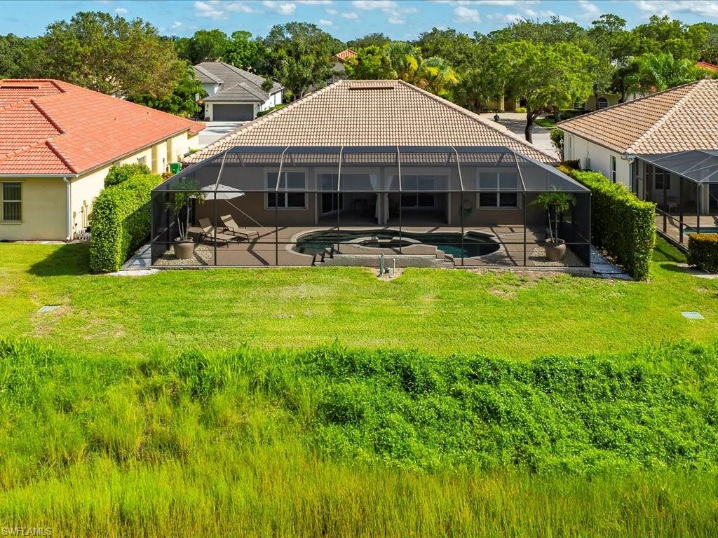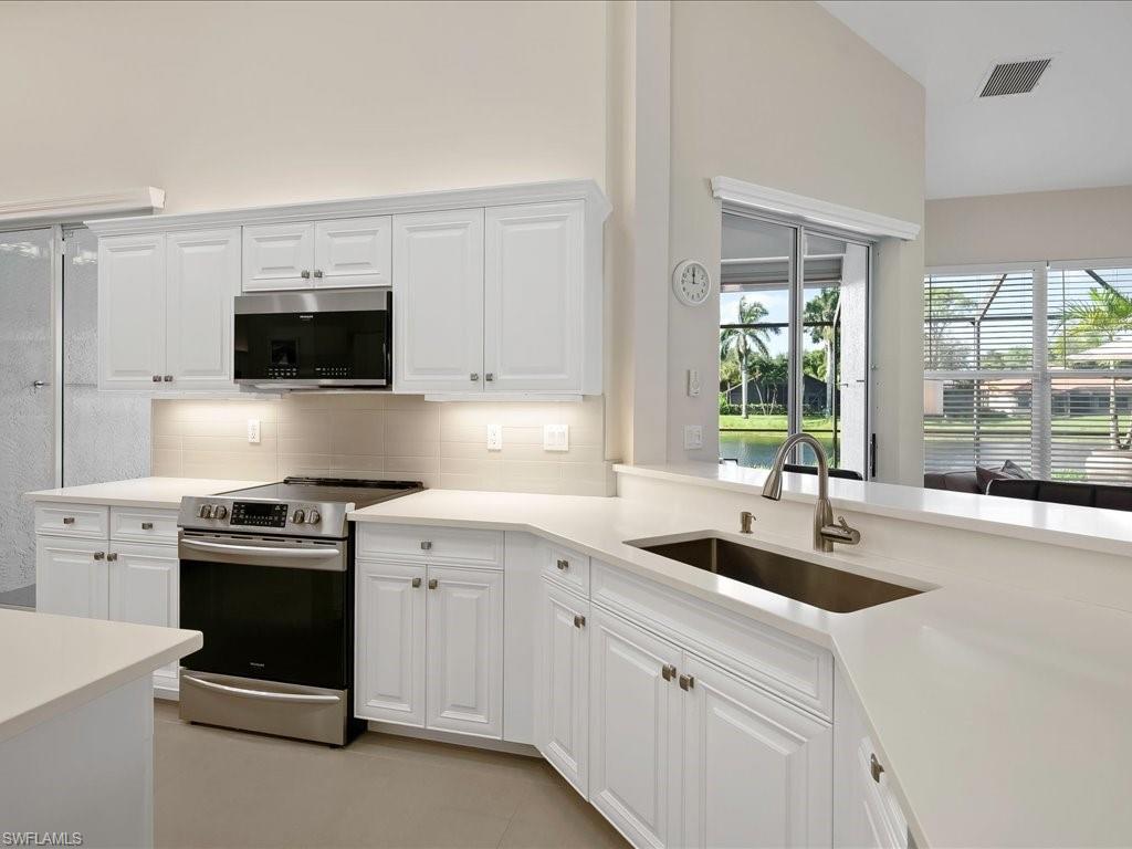 **REDUCED!!** Elegant Lakefront Retreat w/ NEW ROOF! Welcome to an exceptional opportunity to own a beautifully designed lakefront estate in Autumn Woods, one of Naples' most desirable and established gated communities in the heart of Naples, FL. This 4 Bedroom (or 3+Den), 2 Bathroom residence offers over 2,400 sf of under air living space, featuring an open and inviting layout, and breathtaking southern-facing lake views that capture the essence of Florida living. The open-concept floor plan with tall volume ceilings, flows effortlessly from the casual dining area, through the chef’s kitchen with center island, to the large and spacious family room, creating the perfect environment for both relaxed living and elegant entertaining. The kitchen is thoughtfully equipped with quartz countertops, stainless steel appliances, more than ample cabinetry, and a convenient breakfast bar, making it as functional as it is stylish. Just off the main living area, a den with closet (could be used as 4th bedroom if necessary) offers a quiet and flexible space for a home office, media room, or guest quarters. The master suite is a true private retreat, featuring two oversized walk-in closets and a luxurious en-suite bath complete with dual vanities, a soaking tub, and a separate walk-in shower. Two additional guest bedrooms are tucked away on the opposite side of the home, providing privacy and comfort for family and visitors alike. A full guest bathroom, separate laundry room, and spacious two-car side-entry garage complete the home's thoughtful layout. Step outside to the screened lanai from the family room or kitchen, and embrace the outdoor lifestyle Florida is known for, where your private pool with elevated spa awaits—offering the perfect spot to unwind while taking in the tranquil, sun-drenched lake views. The expansive brick paver deck offers multiple areas for lounging and dining, surrounded by lush tropical landscaping and commanding views of the glistening lake. Whether you’re enjoying a morning coffee by the pool or hosting evening cocktails at sunset, the setting is nothing short of idyllic. Electric hurricane shutters protect most of the doors/windows around the home, and manual shutters for the rest, for added protection and peace of mind as well. Autumn Woods is known for its mature landscaping, tranquil lakes, and ideal central location. Residents enjoy access to a recently renovated clubhouse, fitness center, community pool, tennis courts, playground, and scenic walking trails. Located just minutes from Naples' world-class beaches, Mercato, Waterside Shops, and Fifth Avenue, as well as top-rated public and private schools (there is even a private sidewalk leading from Autumn Woods right to Pine Ridge Middle School), this home offers a rare blend of luxury, convenience, and community. This is more than just a home—it’s a lifestyle. Don’t miss your chance to own this exceptional property in one of Naples’ most cherished neighborhoods.