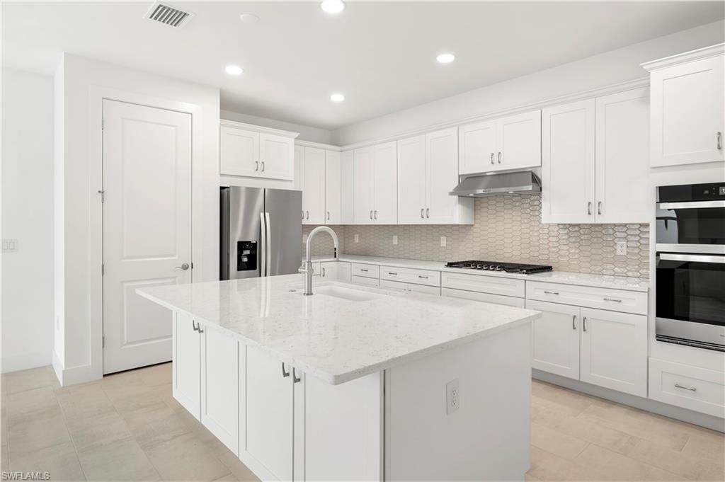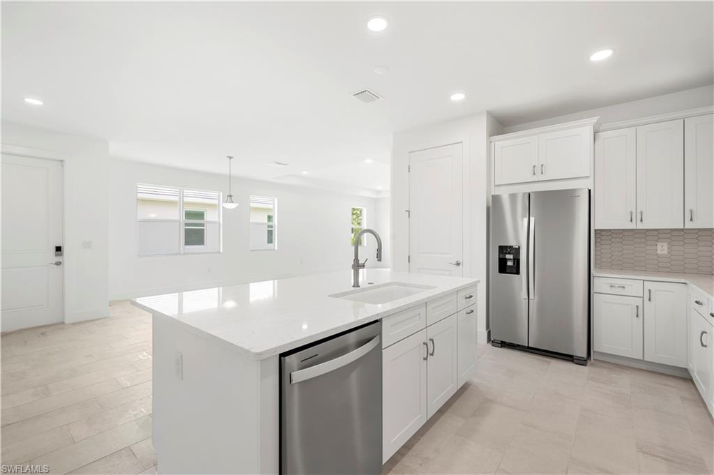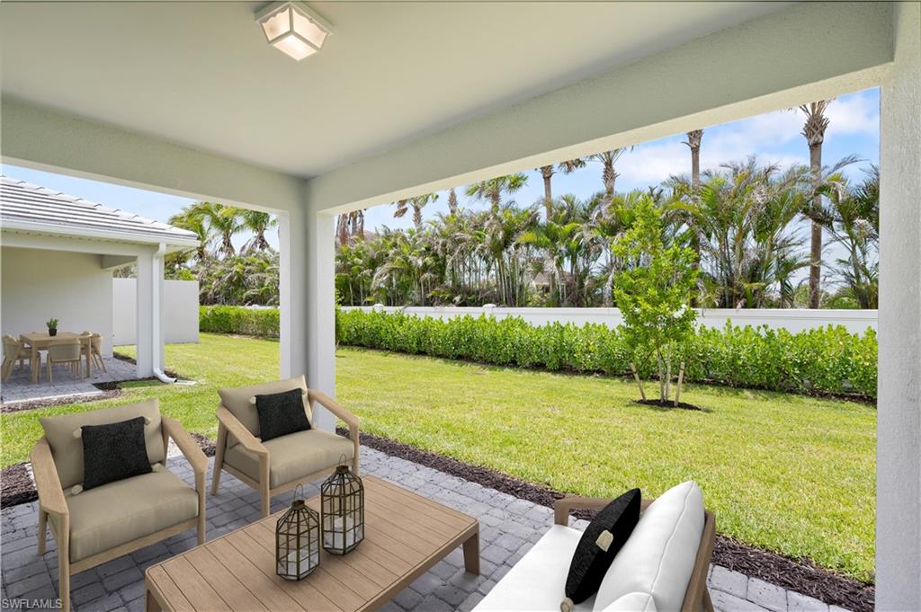 GORGEOUS MOVE-IN READY NEW CONSTRUCTION VILLA IN NAPLES, FL Welcome to the Khaya—a beautifully crafted new construction home where refined comfort meets timeless coastal elegance. Ideally positioned with southern rear exposure, this residence offers tranquil views of a professionally landscaped privacy wall, creating a peaceful outdoor oasis that’s perfect for both entertaining and quiet relaxation. At the heart of the home lies a designer kitchen that blends function and style. Boasting gleaming quartz countertops, wood cabinetry, and a full suite of stainless steel appliances—including a natural gas cooktop—this kitchen is the perfect blend of style and functionality. The luxurious primary suite serves as your private retreat, offering a large walk-in closet and a spa-inspired bathroom outfitted with dual sinks set in quartz countertops, elegant wood cabinetry, and an oversized walk-in shower designed for ultimate relaxation. Throughout the home, you'll find stylish and durable tile flooring creating a clean and sophisticated finish that’s easy to maintain. Additional highlights include hurricane-impact glass windows and doors that provide enhanced security and peace of mind. Seven Shores community amenity center offers a wide range of features designed for comfort, activity, and community enjoyment. Highlights include a resort-style swimming pool, a welcoming clubhouse for social events, professional-grade tennis and pickleball courts, open lawn spaces for relaxation or games, a putting green for golf enthusiasts, and a modern fitness room. A dedicated Lifestyle Director plans and hosts events, activities, and gatherings to bring residents together and enhance everyday living. Please see the MLS supplements for floor plan layout and interior design selections. Lot 22