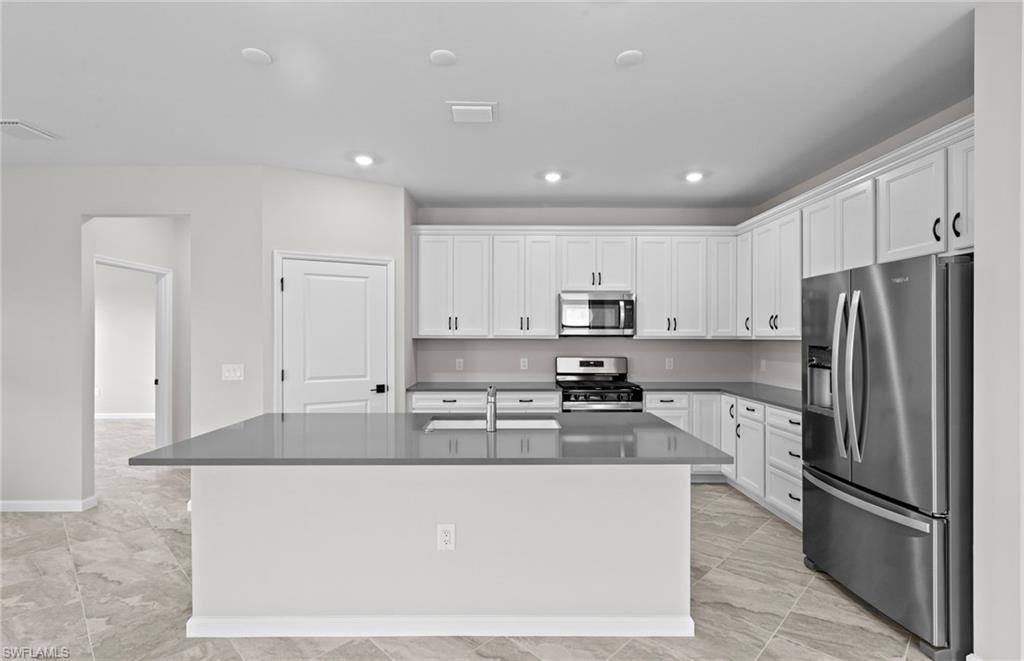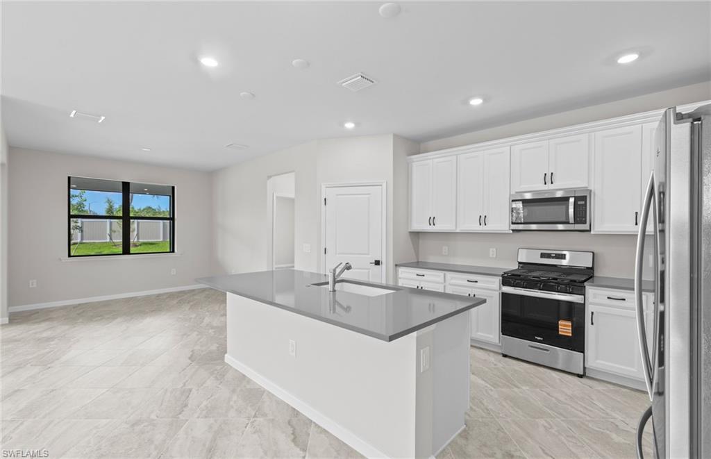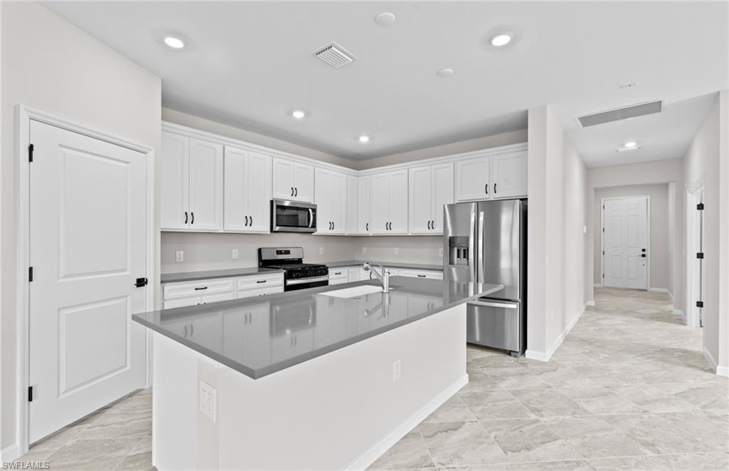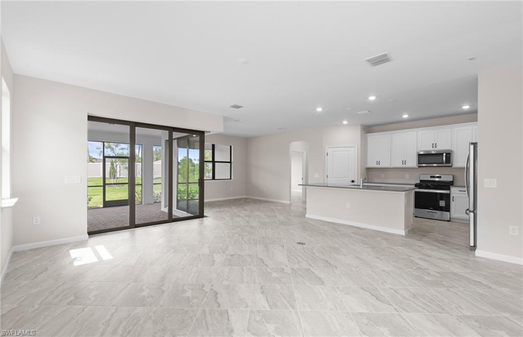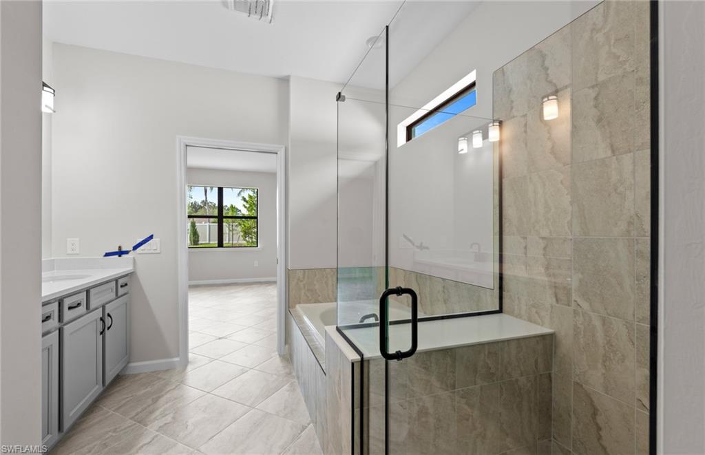 Come explore one of Pulte's most popular floorplans in one of the most desired communities, Bonita Del Sol, located west of 75 in the heart of Bonita Springs. Bonita Del Sol is a short drive to shopping, dining, travel, entertainment, and only 5 miles from award winning beaches in SWFL! This stunning Mystique is a 3 bedroom plus den home that offers a perfect blend of comfort and luxury, with expansive living spaces on a charming homesite. The Mystique boasts an open concept layout with zero corner sliding glass doors leading out to the extended lanai that is pre-plumbed for your future outdoor kitchen. The spacious kitchen is equipped with soft close dovetail cabinets, a large island, and plenty of storage, ideal for both everyday living and entertaining. This home has tile throughout and a 4 ft garage extension for additional storage. Don't wait! Now is your opportunity to join our amazing community!