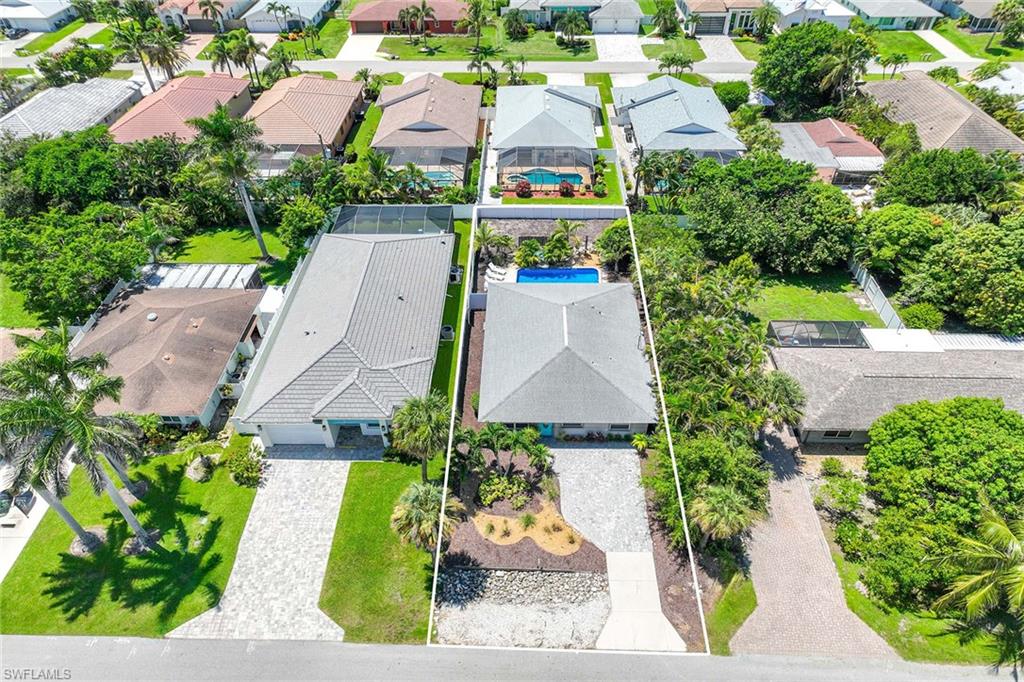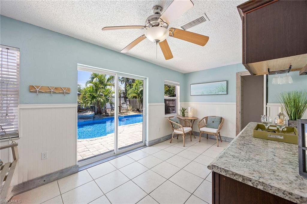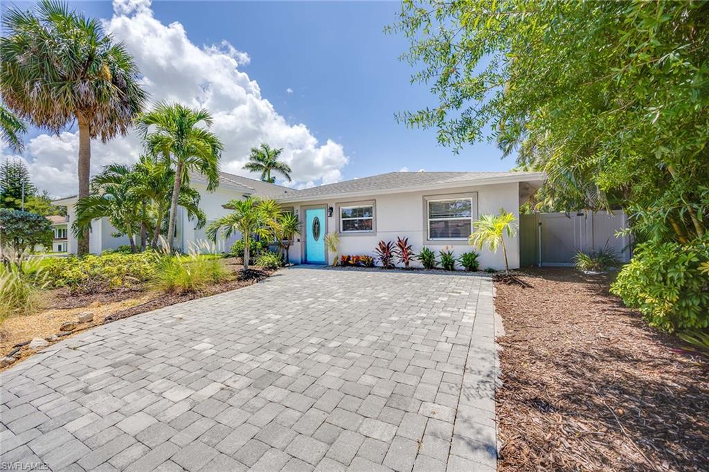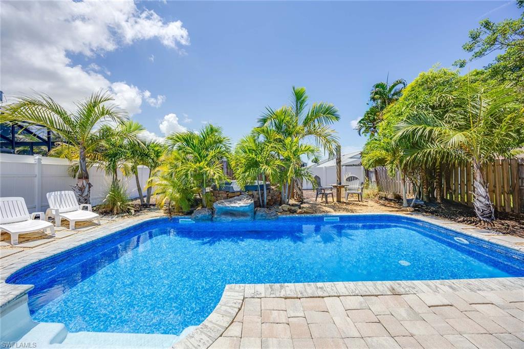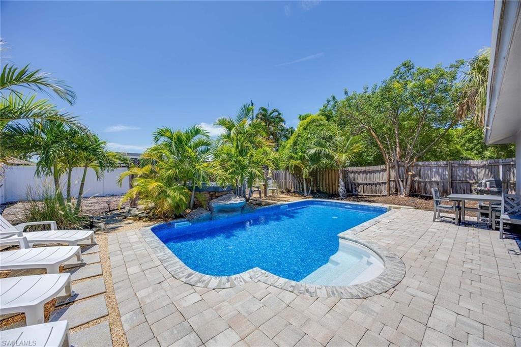 New A/C July 2025! Pool freshly updated! Nestled between Vanderbilt Beach, Mercato, and the Ritz Carlton Beach Resort lies the ultimate Naples beach house retreat. With no homeowners association or rental restrictions, this turnkey furnished home offers exceptional flexibility as a vacation rental, seasonal escape or full-time residence. The unique floor plan offers opportunity for lots of guest space or multi-generational living! Thoughtfully designed with a laid-back coastal aesthetic, the residence spans 1,820 square feet and includes three bedrooms, a den and two full baths. The second bath has been updated to include a walk-in shower with sparkling white penny tile. Interiors feature durable, easy-care surfaces with no carpet, allowing for carefree living and hosting. The great room centers around a modern fireplace wall and includes a workspace, comfortable seating and big-screen television. The open kitchen offers generous countertop space and stainless steel appliances, flowing effortlessly into a boho-inspired dining room adorned with a stone-top table and artful chandelier. The yard is fenced for privacy, with thoughtful, low maintenance landscaping. Spacious pool and pavered deck is south facing for lots of fun in the sun. Hot tub has waterfall that spills over rock formation into the pool. Designed to accommodate gatherings of eight or more, the home includes an enclosed air-conditioned lanai with bar area and cabinet storage—perfect for entertaining. Overlooking the pool, it's a cool place to gather and entertain.