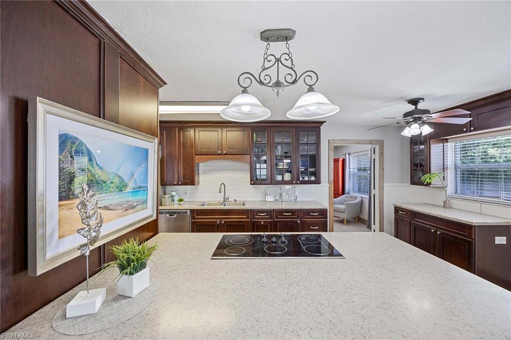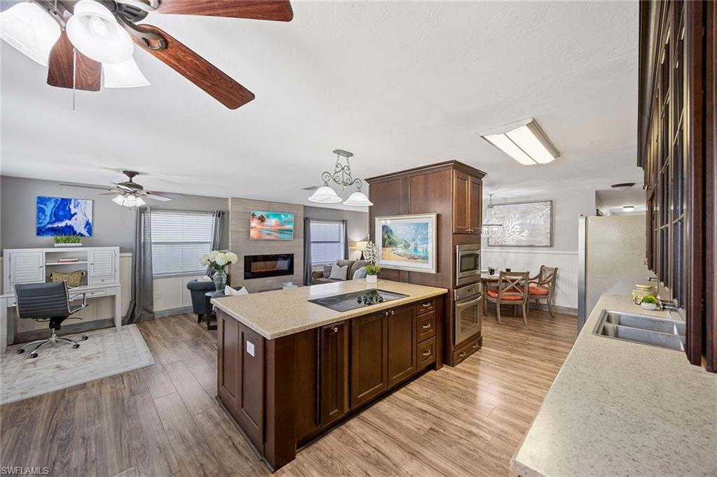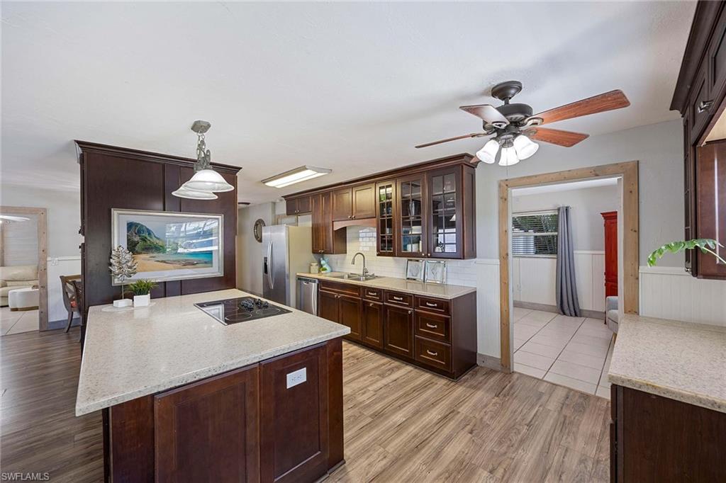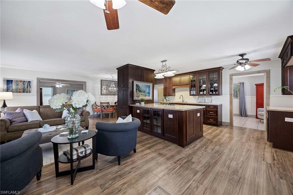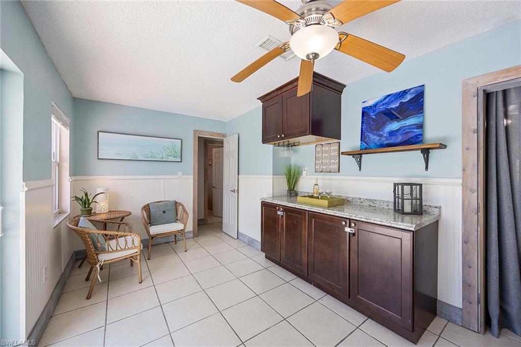 New A/C July 2025! Pool freshly updated! Nestled between Vanderbilt Beach, Mercato, and the Ritz Carlton Beach Resort lies the ultimate Naples beach house retreat. With no homeowners association or rental restrictions, this turnkey furnished home offers exceptional flexibility as a vacation rental, seasonal escape or full-time residence. The unique floor plan offers opportunity for lots of guest space or multi-generational living! Thoughtfully designed with a laid-back coastal aesthetic, the residence spans 1,820 square feet and includes three bedrooms, a den and two full baths. The second bath has been updated to include a walk-in shower with sparkling white penny tile. Interiors feature durable, easy-care surfaces with no carpet, allowing for carefree living and hosting. The great room centers around a modern fireplace wall and includes a workspace, comfortable seating and big-screen television. The open kitchen offers generous countertop space and stainless steel appliances, flowing effortlessly into a boho-inspired dining room adorned with a stone-top table and artful chandelier. The yard is fenced for privacy, with thoughtful, low maintenance landscaping. Spacious pool and pavered deck is south facing for lots of fun in the sun. Hot tub has waterfall that spills over rock formation into the pool. Designed to accommodate gatherings of eight or more, the home includes an enclosed air-conditioned lanai with bar area and cabinet storage—perfect for entertaining. Overlooking the pool, it's a cool place to gather and entertain.