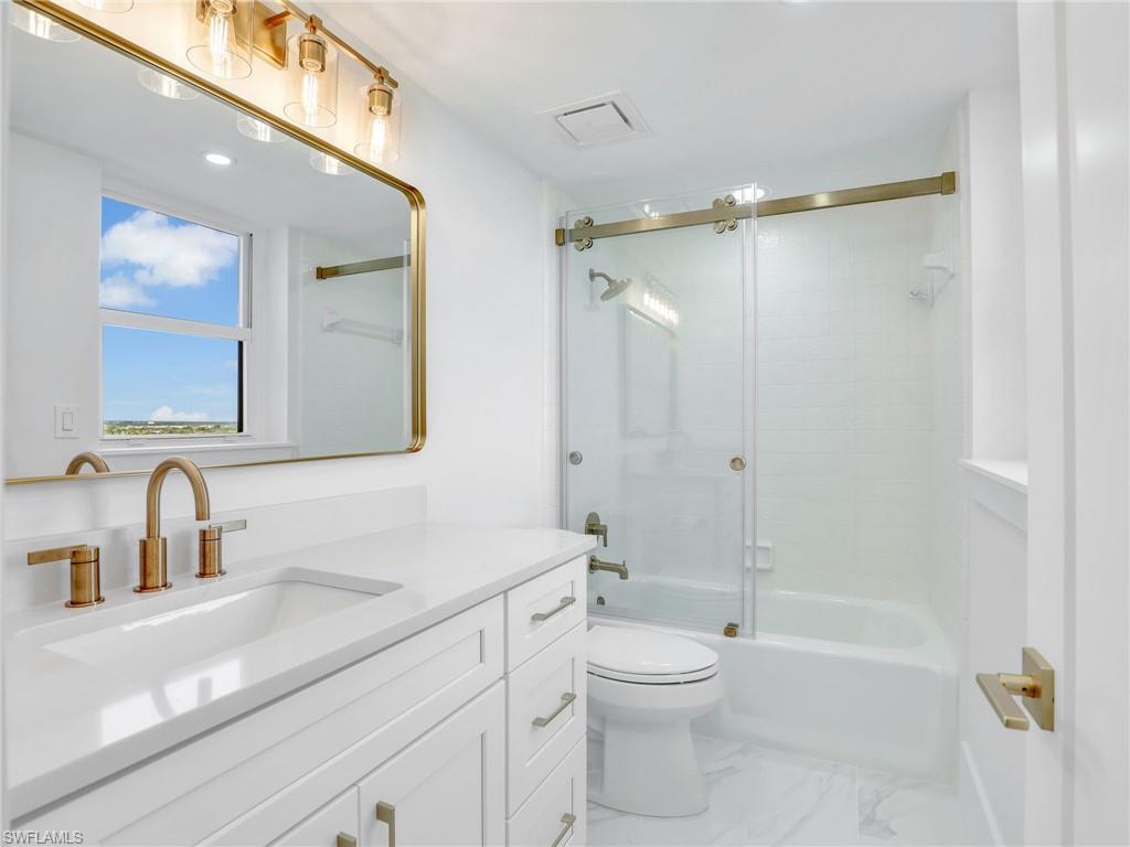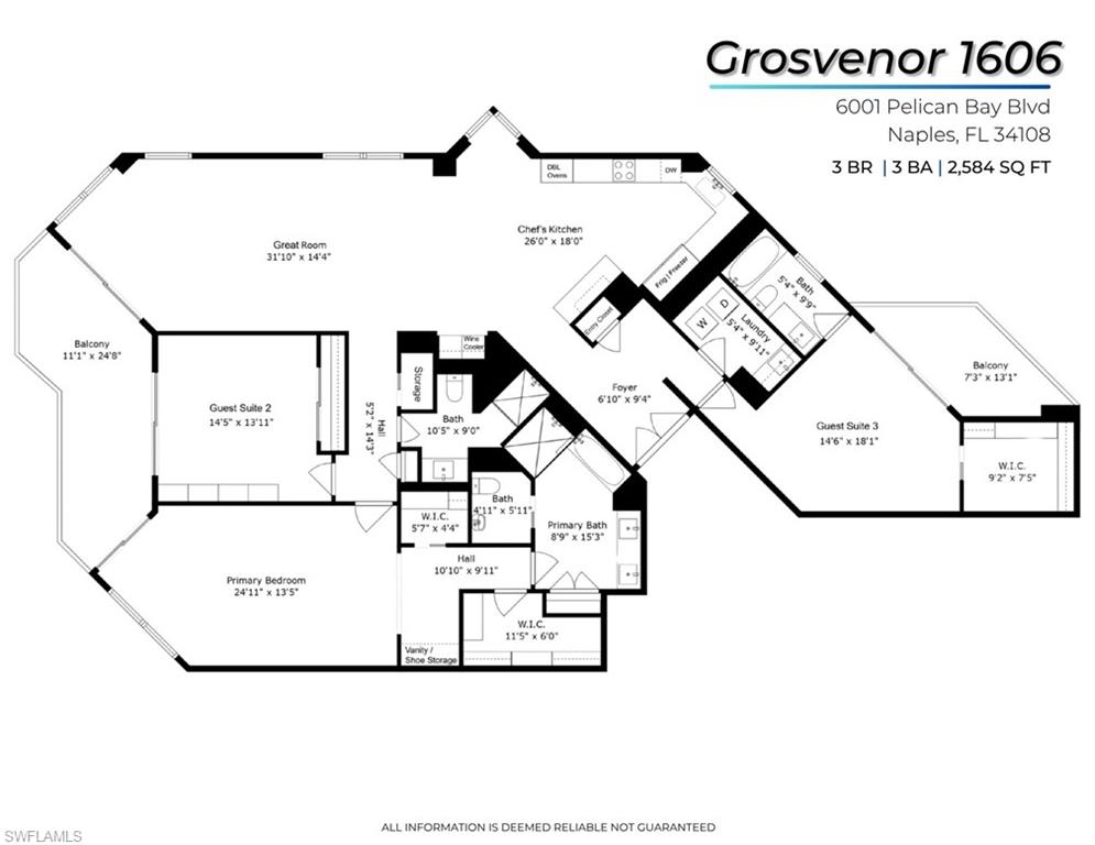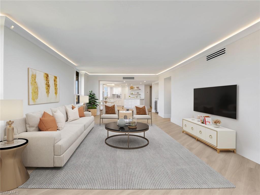 BEST VALUE IN PELICAN BAY! Just reduced $200K (12.5%) now at $541psf for a full 3 BR/3BA MOVE-IN-READY retreat with sunrises to sunset balconies in the Grosvenor in Pelican Bay! Featuring almost 2600sf and COMPLETELY reimagined in 2025 with luxury finishes for the discriminating Neapolitan whose been waiting for the perfect 3-bedroom, 3 FULL bath residence to enjoy a family retreat in Pelican Bay! Wake up to breathtaking sunrises over the city of Naples & Pelican Bay and wind down each evening with exquisite Gulf sunsets, all from the comfort of your own private retreat with 2 balconies. Grosvenor Residence 1606 captures the very best of Pelican Bay & Naples, designed with entertaining in mind, the open-concept layout seamlessly connects the great room, dining and chef’s kitchen—complete with soft-close cabinetry, quartz countertops, Thermador appliances & wine bar with integrated cooler. The primary suite is a peaceful retreat featuring sweeping Gulf views and a spa-like en-suite bath, while two private guest suites are thoughtfully tucked away, each with its own full bath and serene views of Pelican Bay & Gulf. Expansive windows fill this home with natural light and showcase uninterrupted water views throughout. Additional highlights include hurricane shutters, private storage (just outside your door), and dedicated under-building parking very near the building elevators. Greet your family & guests to the elegant new amenities! EBL Partners vision has created a warm yet modern ambiance for the Lobby, social and community kitchen, 3 elevators, new carpeted halls & freshly painted making Grosvenor a class by itself. Overflow family? No problem with 3 updated guest suites! Ideally located at the southern end of Pelican Bay with direct access to the berm and beach facilities by walking a short distance (less than a mile) to the South pavilion or taking a short tram ride along the picturesque mangrove preserve boardwalk, you’re just minutes from Waterside Shops, Venetian Village, Mercato and Artis–Naples. Private beach amenities include 2 beachfront dining pavilions, chair and umbrella service, music and dancing, sailboats and scenic Gulf-front boardwalks. Residents also enjoy access to a world-class lifestyle that includes private beach clubs, premier tennis and pickleball courts, a state-of-the-art fitness and wellness center, miles of nature trails, and over 80 acres of natural preserves. This is a rare opportunity to own one of Pelican Bay’s premier high-floor end units—move-in ready, rich in style, and perfectly positioned to enjoy the Gulf Coast’s most stunning skies, morning to night. Why wait? Stop renting and start planning your next vacation! Relax and enjoy your private family retreat!