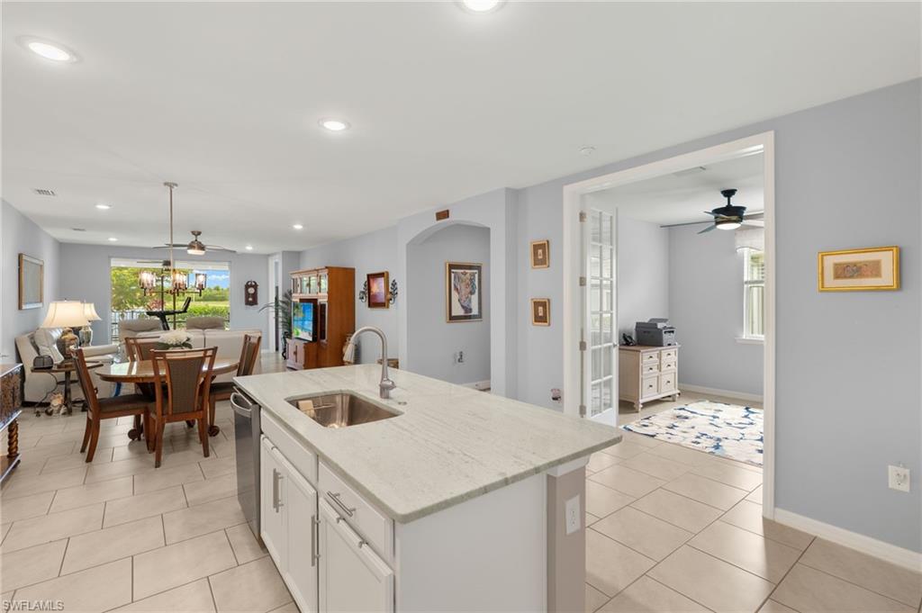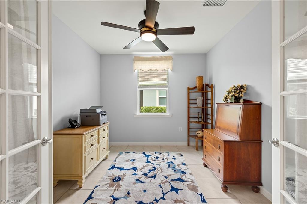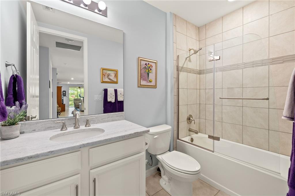 VIEWS, VIEWS, VIEWS! This 2 Bedroom + Den, 2 Bath villa offers RARE PRIVACY and sweeping LONG LAKE VIEWS that are truly one-of-a-kind. With no homes along the right side of your rear view, you'll enjoy unobstructed vistas of the lake and preserve. The fully fenced backyard features low-maintenance faux turf and vibrant landscaping, creating an ideal space for relaxing or entertaining. The home is equipped with electric shutters, hassle-free accordion shutters, and No-See-Um screens for year-round comfort and peace of mind. Inside, the kitchen showcases quartz countertops, white shaker cabinetry, and new Samsung appliances (fridge and microwave). The impact-rated glass front door opens to a cozy screened porch, perfect for enjoying Florida’s breezes while keeping bugs at bay. A retractable screen door to the garage offers added airflow during cooler months. Additional highlights include a laundry room with custom L-shaped built-in cabinetry and a utility sink. The primary suite features a large window with views of the garden/lake and two walk-in closets while the master bathroom offers dual sinks, a tiled shower with a framless glass door and a bidet. The den is enclosed with french doors and privacy sheers, making it ideal as a home office or extra guest space. The guest bathroom also includes an upgraded glass shower door. This villa blends comfort, functionality, and stunning views, all at an affordable price. Naples Reserve amenities include a modern clubhouse with a wide array of social activities, a resort-style pool, grilling and BBQ area, fitness center, bocce ball, tennis and pickleball courts, a children’s playground, basketball court, dog parks, scenic walking and biking paths with exercise stations, a man-made beach with volleyball, a lakeside fire pit, and a Tiki bar & restaurant currently undergoing expansion, estimated for completion by February 2026! Ideally located less than 20 minutes to Marco Island and Naples’ famed 5th Avenue, and under 10 minutes to Publix, Walmart, popular restaurants, shopping plazas, and more.