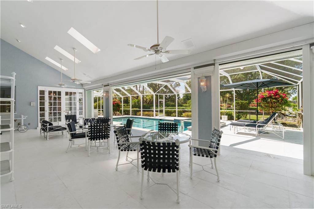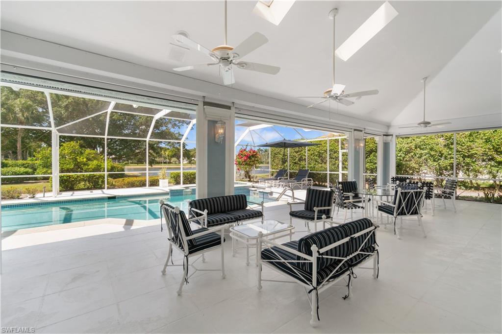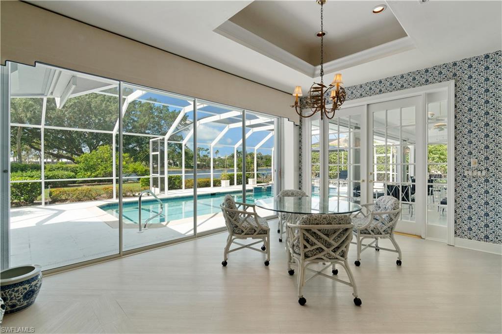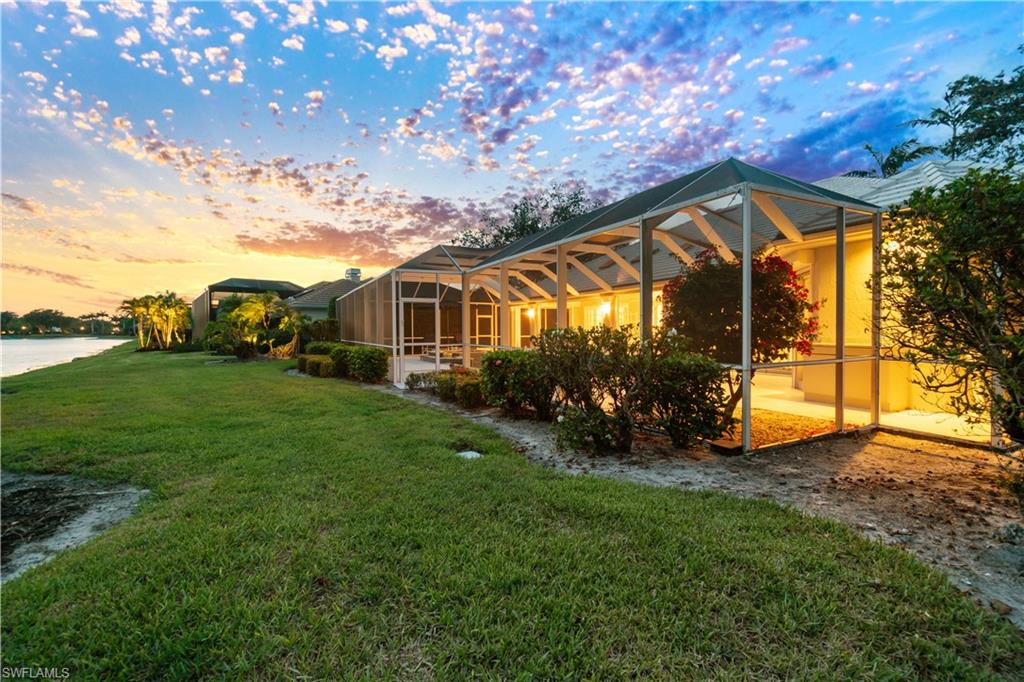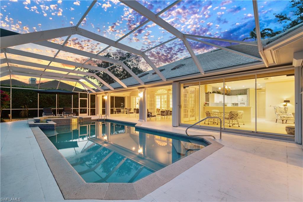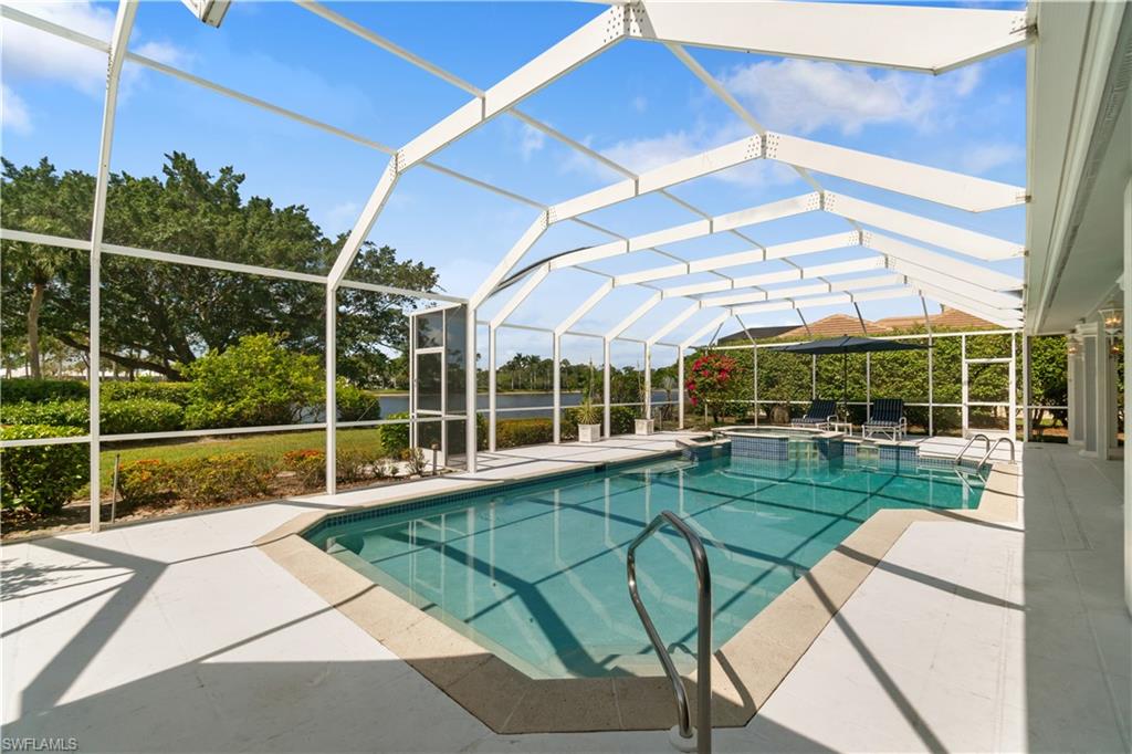 Exceptional estate situated on a rare corner lot with breathtaking lake views in the prestigious Audubon Golf & Country Club in North Naples. Offers highly sought-after SOUTHERN exposure for breathtaking sunsets and optimal sun over the pool. Originally built as one of Audubon’s model homes, this beautifully designed home offers 3,245 square feet under air with 4 spacious bedrooms, 4 full bathrooms, a 3-car garage, soaring high tray ceilings, and beautiful French doors, flooding the interior with natural light. Additional highlights include a 2014 roof, hurricane shutters, new hot water heater (2021), whole-house generator (2022), 500-gallon propane tank, and dual driveways for added convenience. The open-concept layout seamlessly blends indoor and outdoor living, with the lanai offering a serene retreat with a pool, spa, ample lounging space, and stunning lake views —perfect for relaxing or entertaining. Inside, you’ll find a spacious kitchen boasting white cabinetry, white countertops, and plenty of storage. The primary suite features private French doors to the lanai/pool deck, a large walk-in closet with custom built-ins, and an ensuite bathroom with dual vanities, a separate soaking tub, and spacious shower. Audubon’s prime location is just 5 minutes from Mercato and world-class beaches, and the community offers a gated/guarded entrance, an 18-hole championship golf course, tennis, pickleball, a Bayside boardwalk, and a newly renovated clubhouse with dining and a second beautiful poolside club and café.