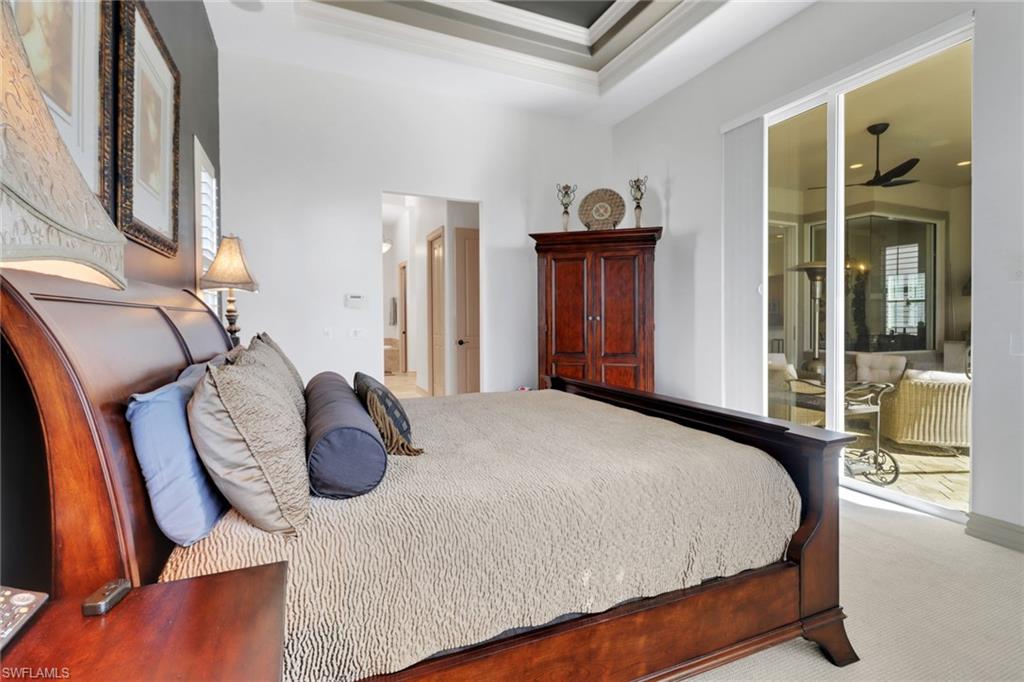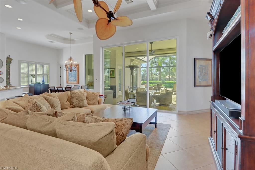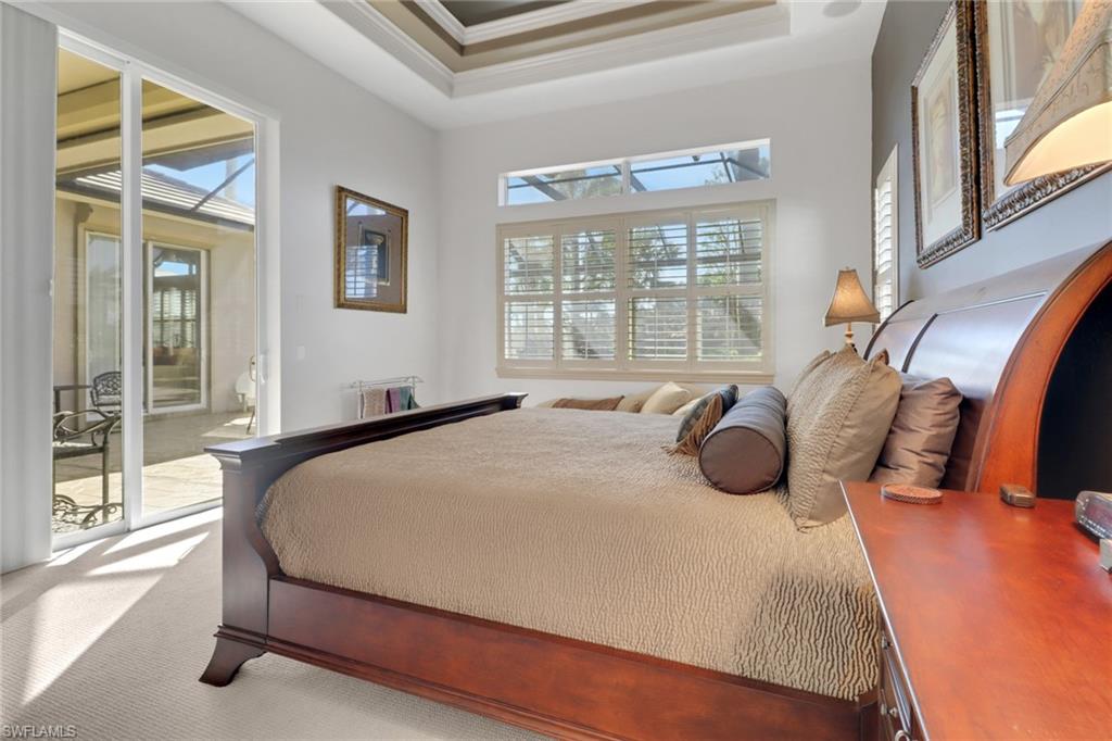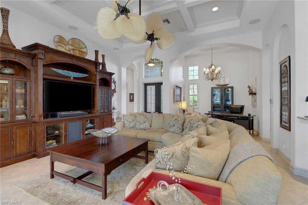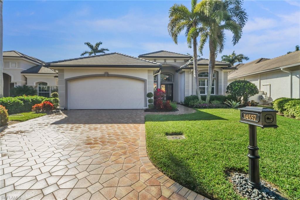 No Waiting - Immediate Golf Membership. A very rare opportunity to own a quality built Harbourside Custom Home in one of the most sought after subdivisions in all of Palmira (Bellezza). Welcome to 14557 Carino Ter. this spacious custom home ( 2465 sq.ft. 3br. + den and 3 full baths) with its Southern exposure and beautiful views of Egret #1 welcomes you with its newly refreshed landscaping and exterior painting. Once inside the Sorrento model you are greeted by a 16ft. tall foyer boasting an open design with 8ft. solid core doors, coffered and volume ceilings and custom mill work throughout. Also 10ft pocketing sliders create a seamless connection to the outdoor expanded lanai. Enhancements are many and include : newer - roof, lanai cage, a/c system, outdoor kitchen/grill, electric storm shutters, pool/spa heater, int./ext. painting, carpeting, kitchen appliances, window treatments, washer & dryer and much much more to many items to list. Realtors see attached upgrade list