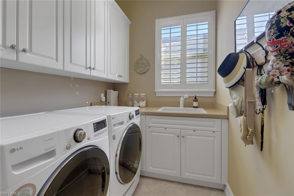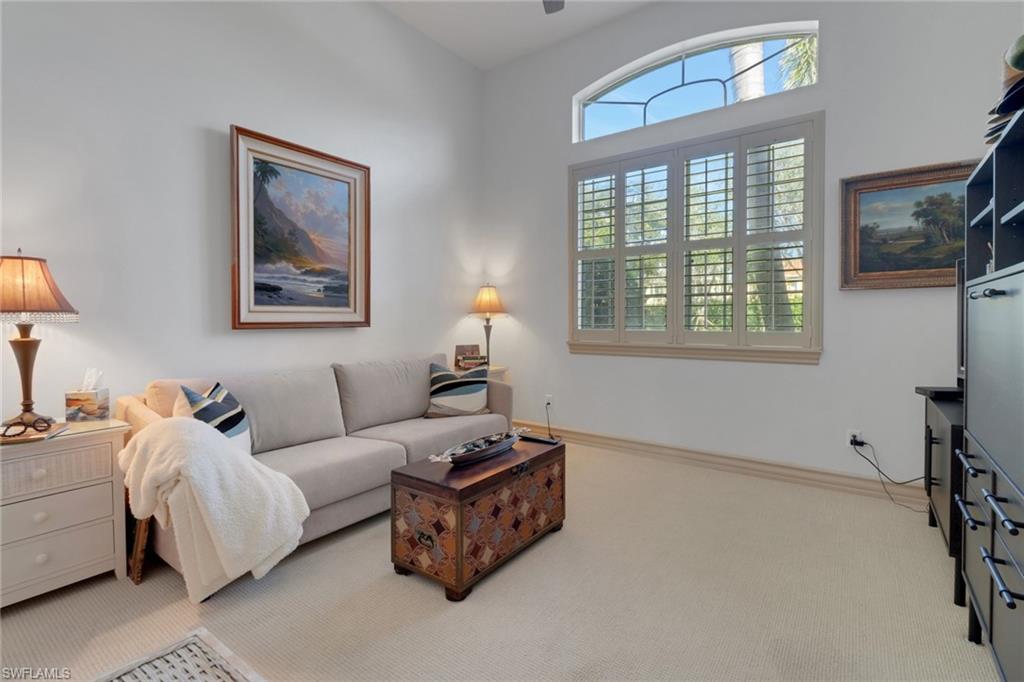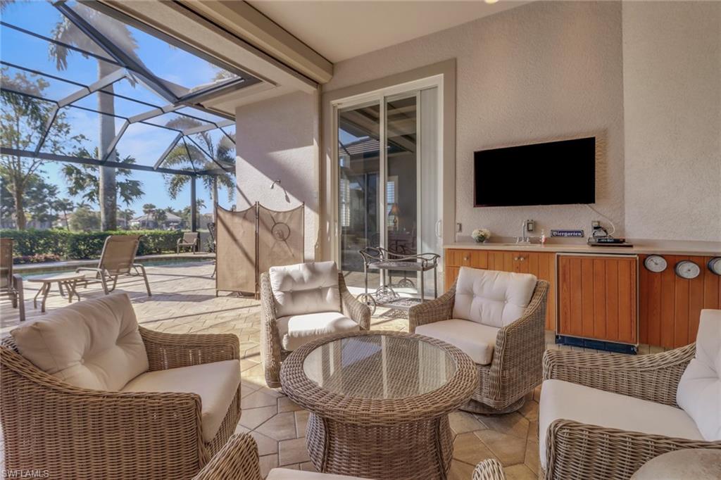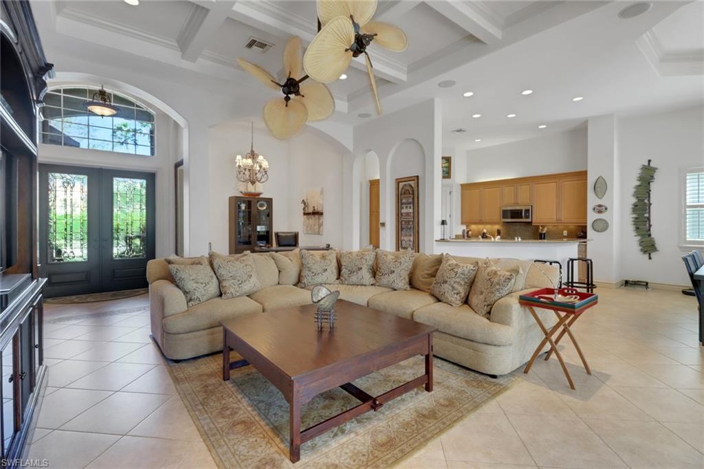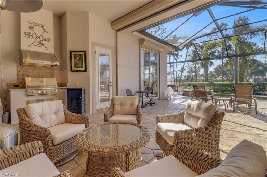 No Waiting - Immediate Golf Membership. A very rare opportunity to own a quality built Harbourside Custom Home in one of the most sought after subdivisions in all of Palmira (Bellezza). Welcome to 14557 Carino Ter. this spacious custom home ( 2465 sq.ft. 3br. + den and 3 full baths) with its Southern exposure and beautiful views of Egret #1 welcomes you with its newly refreshed landscaping and exterior painting. Once inside the Sorrento model you are greeted by a 16ft. tall foyer boasting an open design with 8ft. solid core doors, coffered and volume ceilings and custom mill work throughout. Also 10ft pocketing sliders create a seamless connection to the outdoor expanded lanai. Enhancements are many and include : newer - roof, lanai cage, a/c system, outdoor kitchen/grill, electric storm shutters, pool/spa heater, int./ext. painting, carpeting, kitchen appliances, window treatments, washer & dryer and much much more to many items to list. Realtors see attached upgrade list