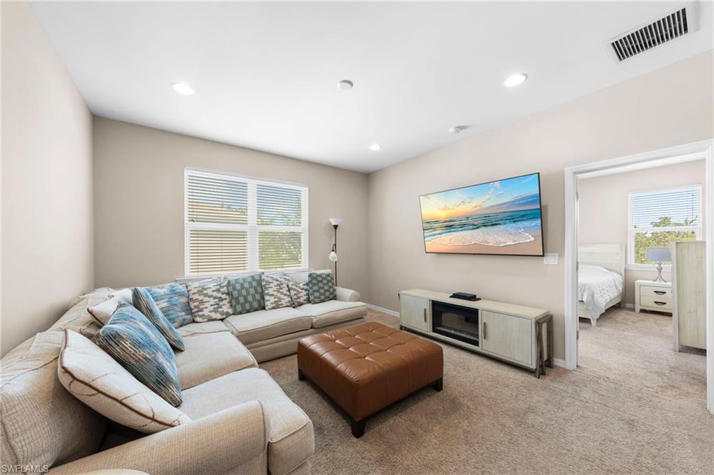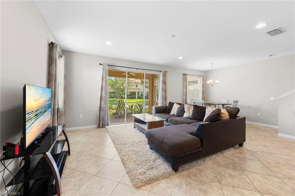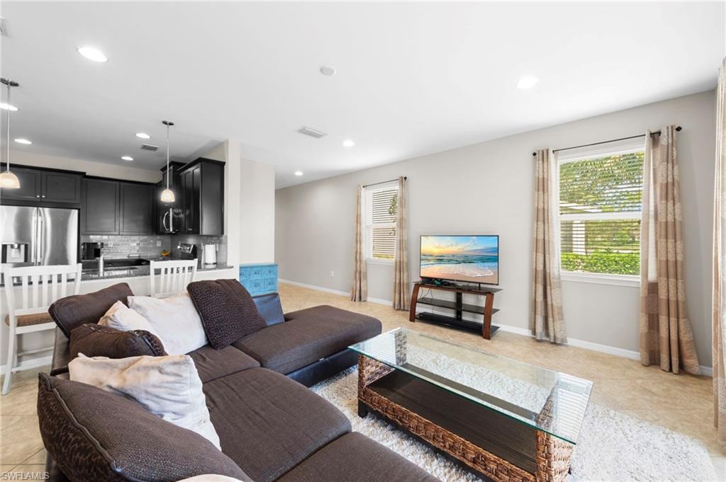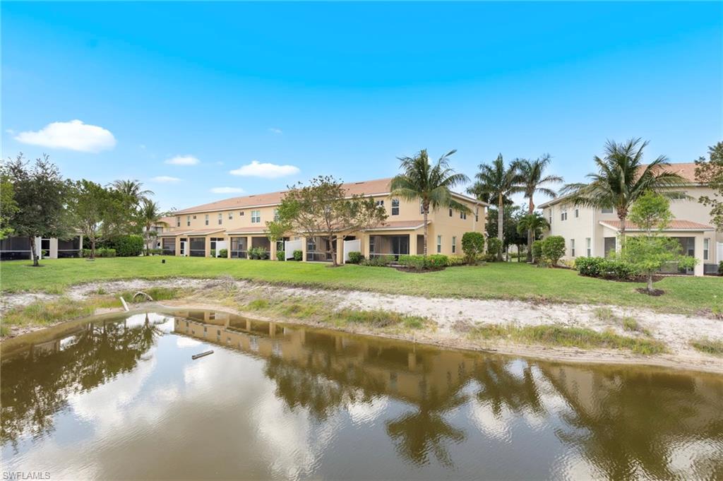 This large lot stunning waterfront end unit townhome is truly a gem in the community, boasting a highly sought-after floorplan. With three spacious bedrooms and 2.5 baths, it offers ample room for comfortable living. The upstairs loft area adds versatility, making it perfect for a home office or play area. The upgraded kitchen is a chef's dream, featuring espresso wood cabinets, exotic granite countertops, a custom glass backsplash, and a farmhouse sink. The all new premium stainless steel appliance package, which includes a stylish French door fridge, ensures both functionality and elegance. The main living area is adorned with diagonal tile that enhances the space, while large sliding doors open up to a screened lanai with breathtaking water views, ideal for entertaining or relaxing. Additional highlights include premium ceiling fans with direct current power, a massive pantry with generous understairs storage, and sophisticated lighting options with dimmers in most rooms. Nestled in the low-fee gated community of Cordera in Bonita Springs, this home is just minutes from wonderful shopping and dining options. The community also offers fantastic amenities such as a resort-style swimming pool, a fitness center, and a club room, making it a perfect place to call home. This property truly needs to be seen to be appreciated!