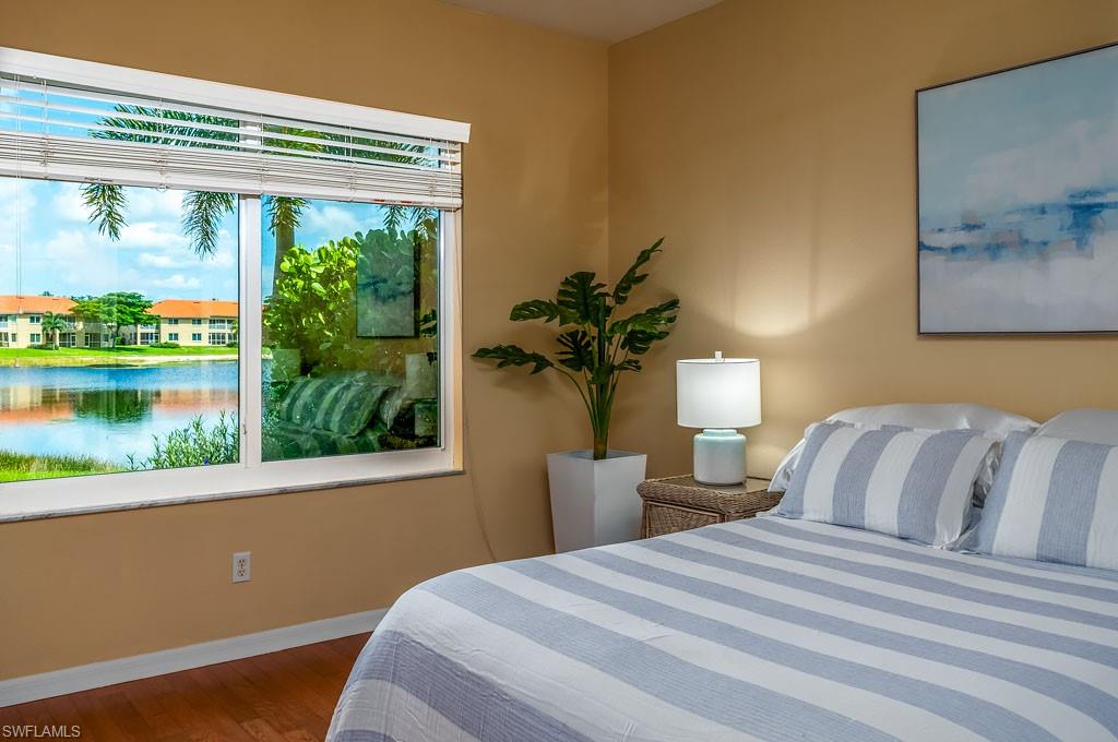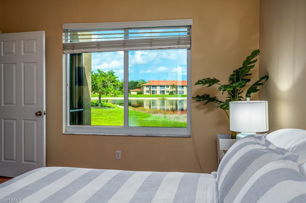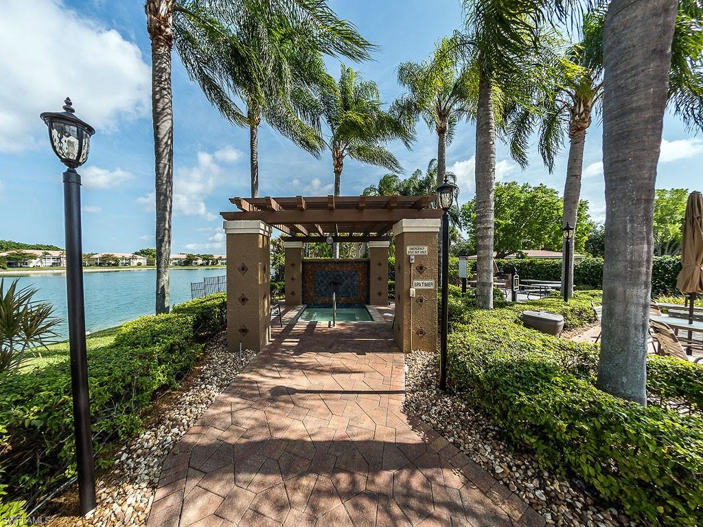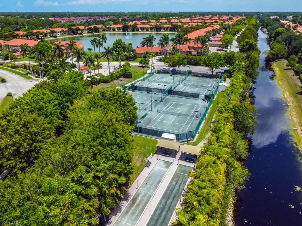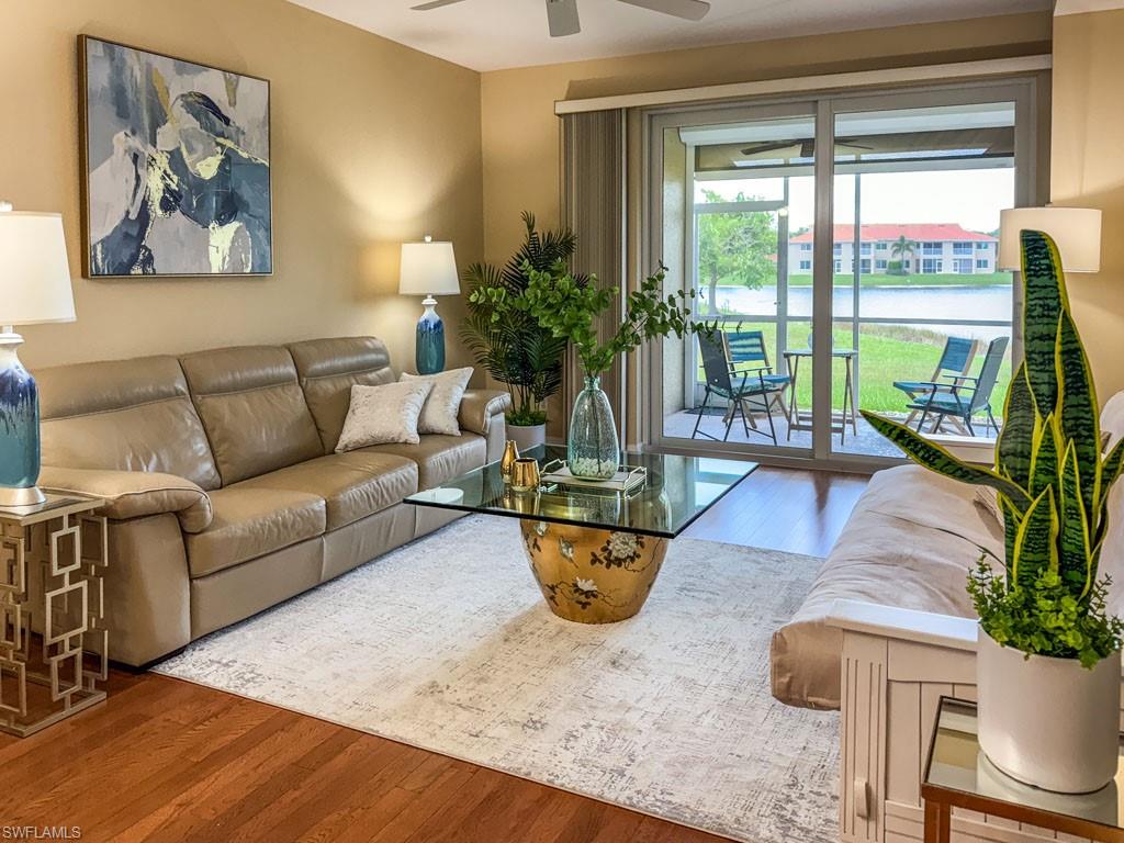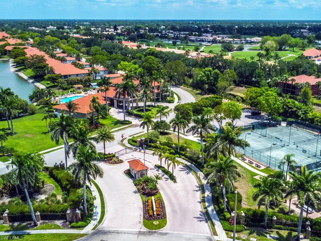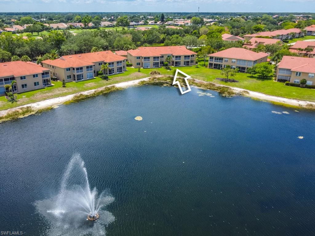 Fully furnished! Beautiful tropical view for sale! The condo comes with it. This is your chance to enjoy stunning Naples, Florida sunsets over tranquil waters of the lake with a fountain from the lanai of this beautiful, light, and bright 2-bedroom, 2-bathroom condo with a 1-car detached garage. No stairs, no carpets. Built in 2000, it features newer hurricane (impact resistant) windows and sliding doors, roof, as well as a newer air conditioner, kitchen appliances, sink, and faucet with a water filtration system. Additionally, Windsafe hurricane shutters are installed on the lanai. Huntington Lakes is a gated community offering a spacious clubhouse with a resort-style pool and spa/hot tub, a fitness center, billiards, Bocce Courts, and 4 tennis courts with Har-Tru surfaces, providing the 'true' nature of the bounce experienced on the court. The community also includes two smaller pools located closer to the center and back. Conveniently located in one of North Naples' most desired areas, Huntington Lakes is just minutes from Naples' sugar sand beaches (Delnor-Wiggins Pass Beach State Park being the closest), Seed To Table Market, shopping plazas, and restaurants. A short drive south leads to Mercato, Waterside Shops, Artis Center, Venetian Bay, Bayfront, or Olde Naples Downtown with its famous attractions. A short drive north brings to Coconut Point Mall, Miromar Outlets Mall, Hertz Arena, and Gulf Coast Town Center Mall. Located in one of the most popular school districts, the community boasts competitive HOA/Condo fees for the Naples area. Make this waterfront condo yours today!