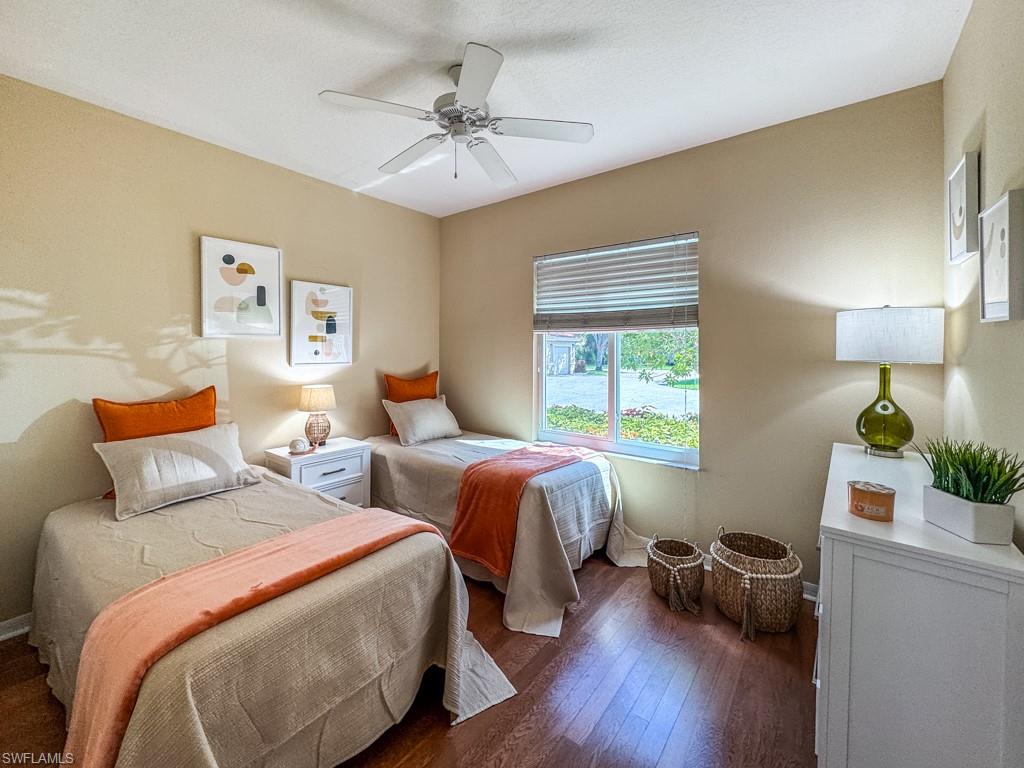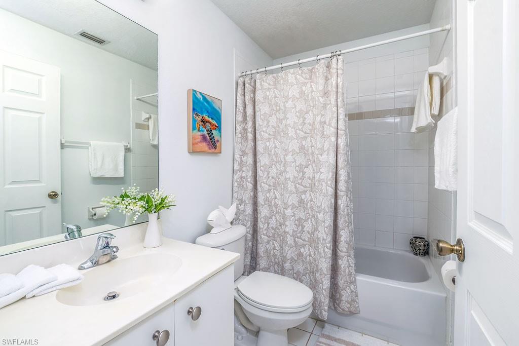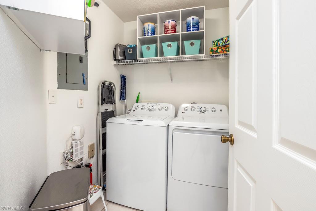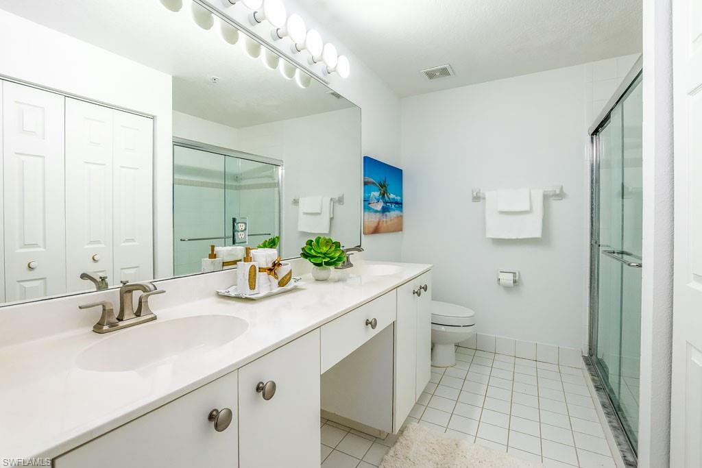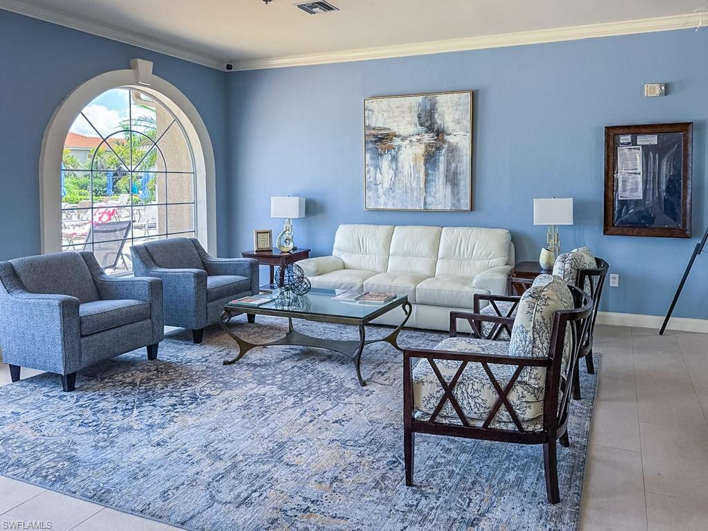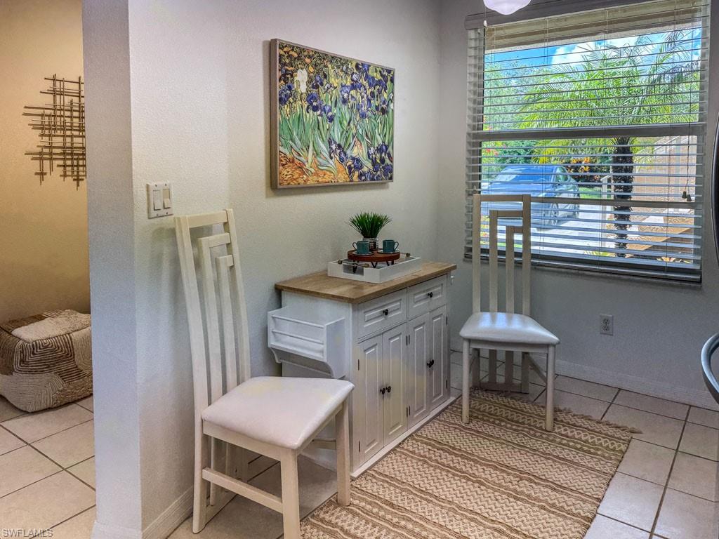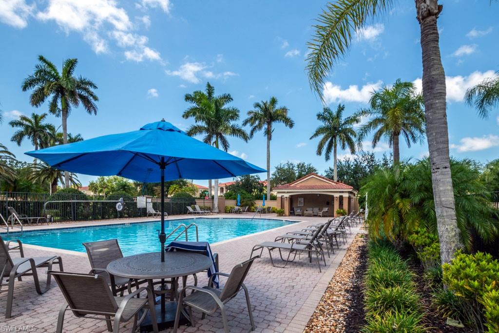 Fully furnished! Beautiful tropical view for sale! The condo comes with it. This is your chance to enjoy stunning Naples, Florida sunsets over tranquil waters of the lake with a fountain from the lanai of this beautiful, light, and bright 2-bedroom, 2-bathroom condo with a 1-car detached garage. No stairs, no carpets. Built in 2000, it features newer hurricane (impact resistant) windows and sliding doors, roof, as well as a newer air conditioner, kitchen appliances, sink, and faucet with a water filtration system. Additionally, Windsafe hurricane shutters are installed on the lanai. Huntington Lakes is a gated community offering a spacious clubhouse with a resort-style pool and spa/hot tub, a fitness center, billiards, Bocce Courts, and 4 tennis courts with Har-Tru surfaces, providing the 'true' nature of the bounce experienced on the court. The community also includes two smaller pools located closer to the center and back. Conveniently located in one of North Naples' most desired areas, Huntington Lakes is just minutes from Naples' sugar sand beaches (Delnor-Wiggins Pass Beach State Park being the closest), Seed To Table Market, shopping plazas, and restaurants. A short drive south leads to Mercato, Waterside Shops, Artis Center, Venetian Bay, Bayfront, or Olde Naples Downtown with its famous attractions. A short drive north brings to Coconut Point Mall, Miromar Outlets Mall, Hertz Arena, and Gulf Coast Town Center Mall. Located in one of the most popular school districts, the community boasts competitive HOA/Condo fees for the Naples area. Make this waterfront condo yours today!