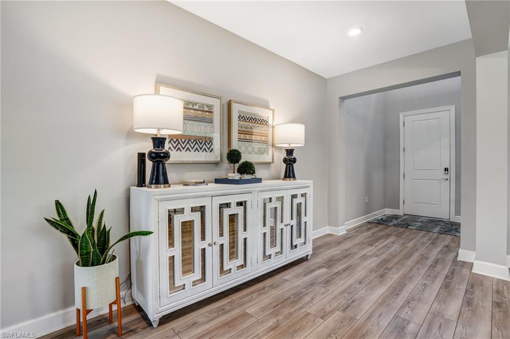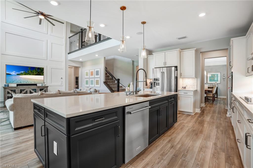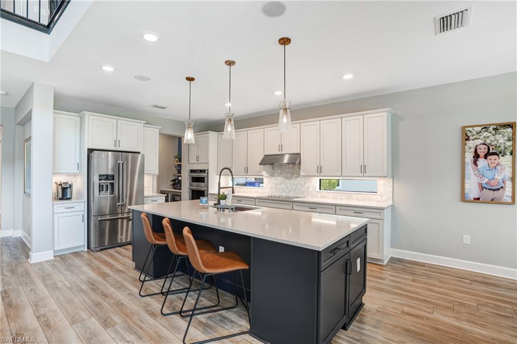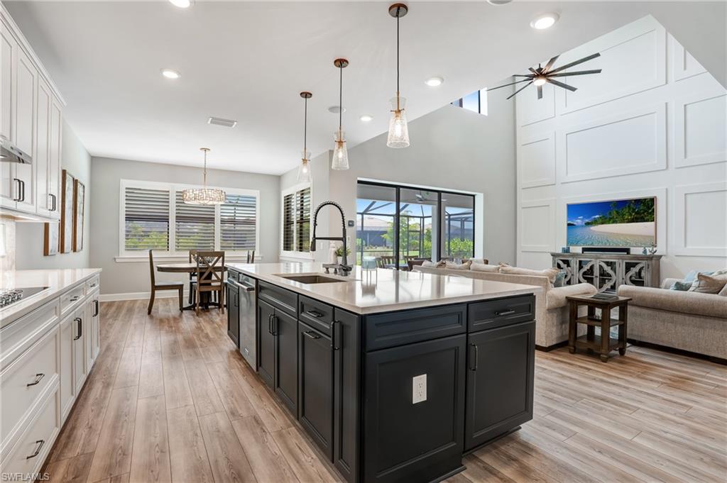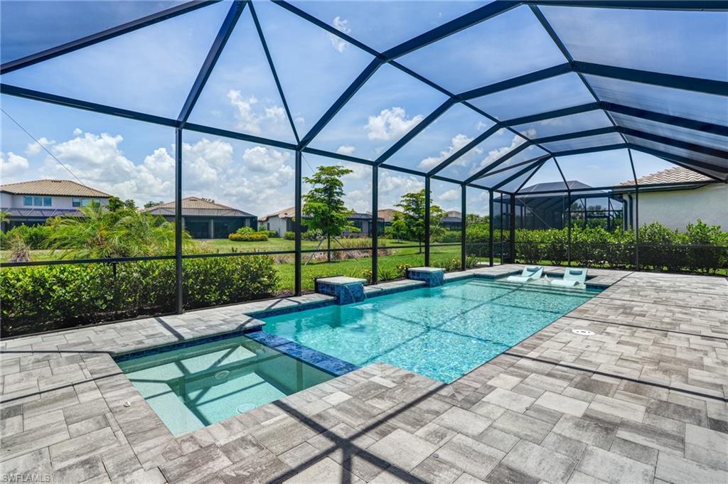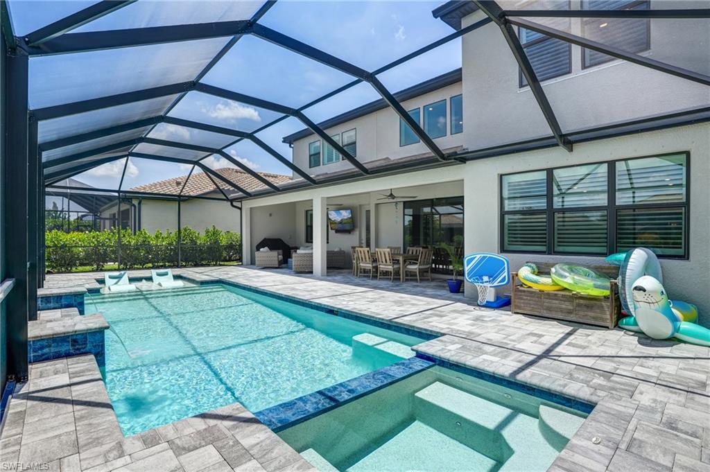 Live large, live beautifully, and live the SWFL lifestyle—welcome to this stunning, customized Heatherton home in the resort-style community of The Place at Corkscrew. Designed with elevated finishes and modern flexibility, this spacious floor plan offers room for everyone and everything, with 4 bedrooms, a game room, a den, and generous walk-in closets throughout. Inside, you’ll find upgraded trim work, designer lighting, plantation shutters, and thoughtful touches like an oversized drop zone and a showstopping 2-story accent wall in the great room. The open kitchen impresses with quartz countertops, built-in KitchenAid appliances, upgraded cabinetry, a walk-in pantry, and a massive island that anchors the space. Step outside and embrace the Florida lifestyle with a custom heated saltwater pool and spa featuring LED GlowBrite lighting, a sun shelf, and twin raised sheer waterfalls—all framed by a large covered lanai, perfect for golden-hour relaxation or entertaining. There's even a bathroom that doubles as a pool bath and rough-ins for your future outdoor kitchen. Set on a generously sized lot with 40-foot driveway setbacks and a 3-car garage with epoxy flooring and added storage, this home delivers both luxury and function. The Place at Corkscrew offers an unmatched lifestyle, featuring a full-service restaurant and bar, a resort pool with a 100-foot water slide and splash pad, a fitness center, café, sports courts, and a genuine sense of community connection. Ideally located in the heart of Estero, The Place at Corkscrew offers convenient access to everything Southwest Florida has to offer. You’re just minutes from I-75, top-rated schools, shopping and dining at Miromar Outlets and Coconut Point, and a short drive to Southwest Florida International Airport, white-sand Gulf beaches, and vibrant downtown Naples. Whether you're commuting, jet-setting, or enjoying a beach day, this location puts you close to it all.